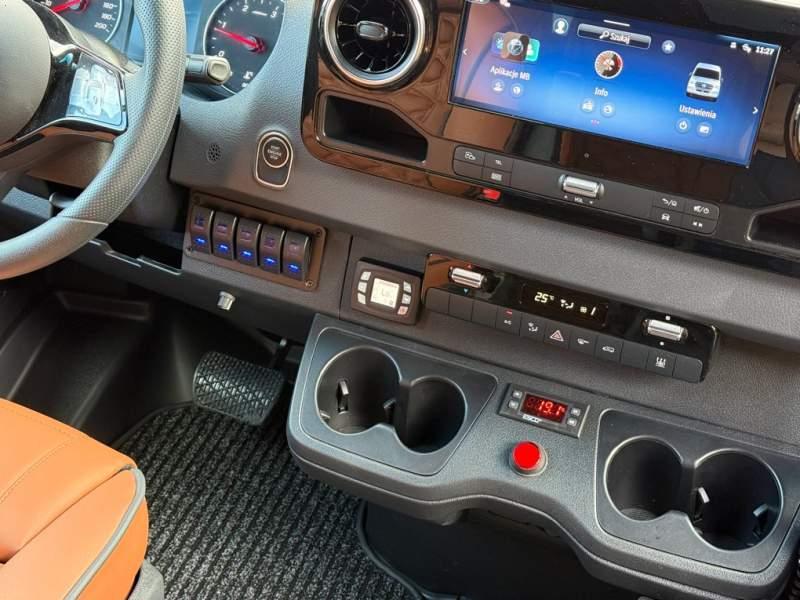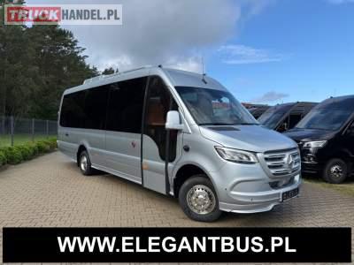 Fabrycznie nowy autobus Autobus dostępny od zaraz ! Nr. oferty: 187 Mercedes-Benz Elegantbus Sprinter 519 EURO VI E GSR II 22+1+1 miejsc siedzących z możliwością szybkiej zmiany na 19+1+1 miejsc siedzących i zwiększenia przestrzeni bagażowej ! Full Panorama Relingi dachowe Wersja XXXL o długości 7, 87 m Pojemność: 1950 cm3 Pakiet stylistyczny Moc: 190 KM Rok produkcji: 2025 Kolor: Srebrny Metalik PODSTAWOWE I DODATKOWE WYPOSAŻENIE BAZOWE – ABS, SRS, ESP – Wspomaganie kierownicy – Automatyczna 9 stopniowa skrzynia biegów – Centralny zamek, immobiliser – Reflektory przednie w technologii LED – Tylne lampy częściowo w technologii LED – Asystent utrzymania pasa ruchu – Tempo 100 km/h – Elektryczne szyby – Sensor świateł oraz deszczu – Tempomat – Kierownica wielofunkcyjna, trójramienna – Stabilizacja poziom II – Wzmocnione opony 205/75/R16C – Dogrzewacz elektryczny PTC – Klimatyzacja półautomatyczna TEMPTRONIC – Fotel kierowcy komfortowy z podłokietnikiem – Światła z funkcją świateł do jazdy dziennej – Lusterko wsteczne – Asystent pasa ruchu – Zamykany schowek na kokpicie – Akumulator AGM 12V 95 Ah – Lusterko wsteczne wewnętrzne – Zbiornik paliwa powiększony: 93 litry – Chlapacze przednie – Chlapacze tylnie FOTELE PRZEDZIAŁU PASAŻERSKIEGO – Komfortowe turystyczne fotele przedziału pasażerskiego (regulacja oparcia oraz przesuw boczny) w kolorze jasno brązowym – Fotele posiadają pasy bezpieczeństwa, podłokietniki, siateczki, stoliki, rączki, komfortowe zagłówki, – Fotele montowane na podestach – Fotel pilota na słupku B PRZESZKLENIE POJAZDU – Szyby podwójne, przyciemniane fabrycznie – Firanki przeciwsłoneczne na prowadnicach – Szyby drzwi elektrycznych podgrzewane SYSTEMY GRZEWCZE – Grzejniki konwektorowe wodne zainstalowane w przedziale pasażerskim po lewej i prawej stronie – Postojowe ogrzewanie wodne, oryginalne EBERSCHPRECHER 5 kW KLIMATYZACJA – Automatyczna Klimatyzacja dachowa WEBASTO 12, 5 kW OŚWIETLENIE – Oświetlenie indywidualne – Oświetlenie postojowe – Oświetlenie nocne – Podświetlane stopnie wejściowe – Podesty z podświetleniem LED – Lampy obrysowe dachowe LED MULTIMEDIA – System multimedialny MBUX 10, 5 cala – Oryginalna Kamera Cofania – Mikrofon – Nagłośnienie przestrzeni pasażerskiej PIONNER – Gniazda USB dla każdego rzędu siedzeń – Przetwornica 230v PRZECHOWYWANIE BAGAŻU I UBRAŃ – Turystyczne półki bagażowe – Lodówka o pojemności 40 litrów – Pogłębiony tylny bagażnik – Wieszaki ubraniowe ELEMENTY BEZPIECZEŃSTWA – Podłoga antypoślizgowa PCV, odporna na ścieranie, wodoodporna – Szyberdach wentylacyjny / wyjście awaryjne – Młotki bezpieczeństwa – Dodatkowa gaśnica 2 kg ELEMENTY FUNKCJONALNE – Elektryczne drzwi wejściowe sterowane z przycisku i pilota – Podwójny stopień wejściowy oświetlony LED – Przedłużenie pojazdu w tylnej części – Hak holowniczy LIFTING ZEWNĘTRZNY – Lakierowane zderzaki, listwy, klamki, lusterka i grill w kolorze pojazdu – Spojlery dolne w kolorze nadwozia Sprzedający: