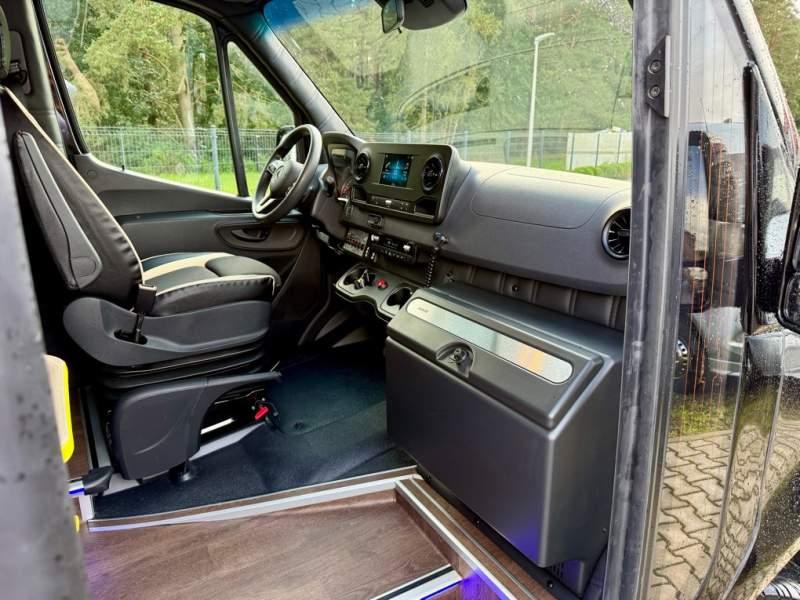 Fabrycznie nowy autobus Autobus dostępny od ręki ! Nr. oferty: 100 Mercedes-Benz Elegantbus Sprinter 519 EURO VI E 22+1+1 miejsc siedzących (Fotele zamontowane w szynach, możliwość zmiany na 19+1+1 miejsc i zwiększenie przestrzeni bagażowej) Wersja XXXL o długości 7, 87 m Pojemność: 1950 cm3 Pakiet stylistyczny Moc: 190 KM Rok produkcji: 2025 PODSTAWOWE I DODATKOWE WYPOSAŻENIE BAZOWE – ABS, SRS, ESP – Automatyczna 9 stopniowa skrzynia biegów – Reflektory przednie w technologii LED – Automatyczna zmiany świateł mijania - drogowe – Tylne lampy w technologii LED – Asystent utrzymania pasa ruchu – Tempo 100 km/h – Sensor świateł oraz deszczu – Tempomat – Kierownica wielofunkcyjna, trójramienna – Klimatyzacja dla kierowcy – Fotel kierowcy komfortowy z podłokietnikiem – Lusterko wsteczne – Asystent pasa ruchu FOTELE PRZEDZIAŁU PASAŻERSKIEGO – Komfortowe turystyczne fotele przedziału pasażerskiego (regulacja oparcia oraz przesuw boczny) – Fotele posiadają pasy bezpieczeństwa, podłokietniki, siateczki, stoliki, rączki, komfortowe zagłówki, – Fotele montowane na podestach – Fotel pilota na słupku B PRZESZKLENIE POJAZDU – Szyby podwójne, przyciemniane fabrycznie – Firanki przeciwsłoneczne na prowadnicach SYSTEMY GRZEWCZE – Konwektory grzewcze po lewej i prawej stronie – Ogrzewanie niezależne od pracy sinika mocy 5 kW z rozprowadzeniem KLIMATYZACJA – Automatyczna klimatyzacja dachowa o dużej wydajności 12, 5 KW OŚWIETLENIE – Oświetlenie indywidualne – Oświetlenie postojowe – Oświetlenie nocne – Podświetlane stopnie wejściowe – Podesty z podświetleniem LED – Lampy obrysowe dachowe MULTIMEDIA – System multimedialny MBUX 7, 5 ' – System Apple Car Play oraz Android Auto – Monitor podsufitowy 17 ' – Kamera Cofania – Mikrofon dynamiczny z potencjometrem – Nagłośnienie przestrzeni pasażerskiej PIONNER – Gniazda USB oraz USB C dla każdego rzędu siedzeń – Przetwornica 230v PRZECHOWYWANIE BAGAŻU I UBRAŃ – Turystyczne półki bagażowe – Pogłębiony tylny bagażnik – Wieszaki ubraniowe ELEMENTY BEZPIECZEŃSTWA – Podłoga antypoślizgowa PCV, odporna na ścieranie, wodoodporna – Szyberdach wentylacyjny / wyjście awaryjne – Młotki bezpieczeństwa – Dodatkowa gaśnica 2 kg ELEMENTY FUNKCJONALNE – Drzwi wejściowe elektryczne – Podwójny stopień wejściowy oświetlony LED – Przedłużenie pojazdu w tylnej części – Hak holowniczy z instalacją elektryczną – Lodówka 40 l LIFTING ZEWNĘTRZNY – Lakierowane zderzaki, listwy, klamki, lusterka i grill w kolorze pojazdu – Wszystkie dokładki lakierowane w kolor nadwozia Sprzedający: