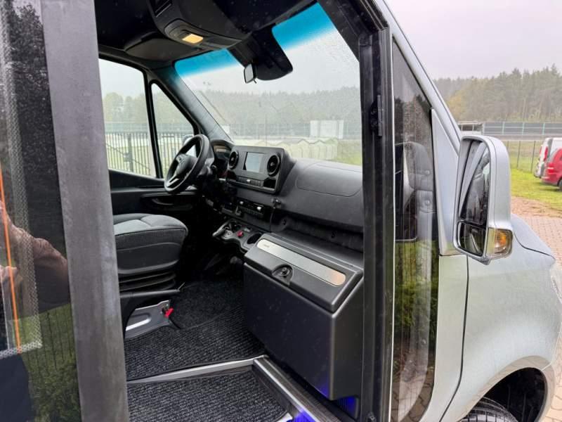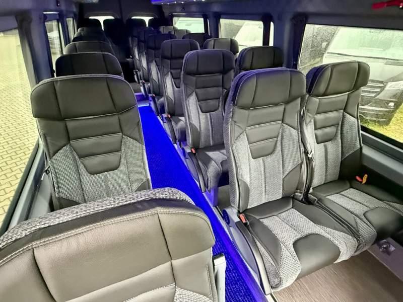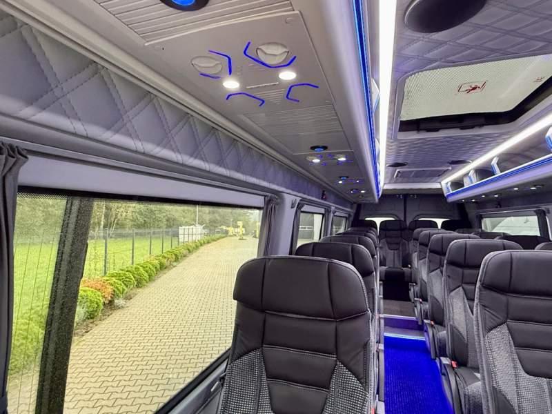 Fabrycznie nowy autobus Autobus dostępny od ręki ! Nr. oferty: 148 Mercedes-Benz Elegantbus Sprinter 519 EURO VI E 22+1+1 miejsc siedzących (Fotele zamontowane w szynach, możliwość zmiany na 19+1+1 miejsc i zwiększenie przestrzeni bagażowej) Wersja XXXL o długości 7, 87 m Pojemność: 1950 cm3 Pakiet stylistyczny Moc: 190 KM Rok produkcji: 2025 PODSTAWOWE I DODATKOWE WYPOSAŻENIE BAZOWE – ABS, SRS, ESP – Automatyczna 9 stopniowa skrzynia biegów – Reflektory przednie w technologii LED – Automatyczna zmiany świateł mijania - drogowe – Tylne lampy w technologii LED – Asystent utrzymania pasa ruchu – Tempo 100 km/h – Sensor świateł oraz deszczu – Tempomat – Kierownica wielofunkcyjna, trójramienna – Klimatyzacja dla kierowcy – Fotel kierowcy komfortowy z podłokietnikiem – Lusterko wsteczne – Asystent pasa ruchu FOTELE PRZEDZIAŁU PASAŻERSKIEGO – Komfortowe turystyczne fotele przedziału pasażerskiego (regulacja oparcia oraz przesuw boczny) – Fotele posiadają pasy bezpieczeństwa, podłokietniki, siateczki, stoliki, rączki, komfortowe zagłówki, – Fotele montowane na podestach – Fotel pilota na słupku B PRZESZKLENIE POJAZDU – Szyby podwójne, przyciemniane fabrycznie – Firanki przeciwsłoneczne na prowadnicach SYSTEMY GRZEWCZE – Konwektory grzewcze po lewej i prawej stronie – Ogrzewanie niezależne od pracy sinika mocy 5 kW z rozprowadzeniem KLIMATYZACJA – Automatyczna klimatyzacja dachowa o dużej wydajności 12, 5 KW OŚWIETLENIE – Oświetlenie indywidualne – Oświetlenie postojowe – Oświetlenie nocne – Podświetlane stopnie wejściowe – Podesty z podświetleniem LED – Lampy obrysowe dachowe MULTIMEDIA – System multimedialny MBUX 7, 5 ' – System Apple Car Play oraz Android Auto – Monitor podsufitowy 17 ' – Kamera Cofania – Mikrofon dynamiczny z potencjometrem – Nagłośnienie przestrzeni pasażerskiej PIONNER – Gniazda USB oraz USB C dla każdego rzędu siedzeń – Przetwornica 230v PRZECHOWYWANIE BAGAŻU I UBRAŃ – Turystyczne półki bagażowe – Pogłębiony tylny bagażnik – Wieszaki ubraniowe ELEMENTY BEZPIECZEŃSTWA – Podłoga antypoślizgowa PCV, odporna na ścieranie, wodoodporna – Szyberdach wentylacyjny / wyjście awaryjne – Młotki bezpieczeństwa – Dodatkowa gaśnica 2 kg ELEMENTY FUNKCJONALNE – Drzwi wejściowe elektryczne – Podwójny stopień wejściowy oświetlony LED – Przedłużenie pojazdu w tylnej części – Hak holowniczy z instalacją elektryczną – Lodówka 40 l LIFTING ZEWNĘTRZNY – Lakierowane zderzaki, listwy, klamki, lusterka i grill w kolorze pojazdu – Wszystkie dokładki lakierowane w kolor nadwozia Sprzedający: