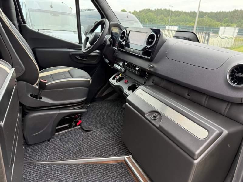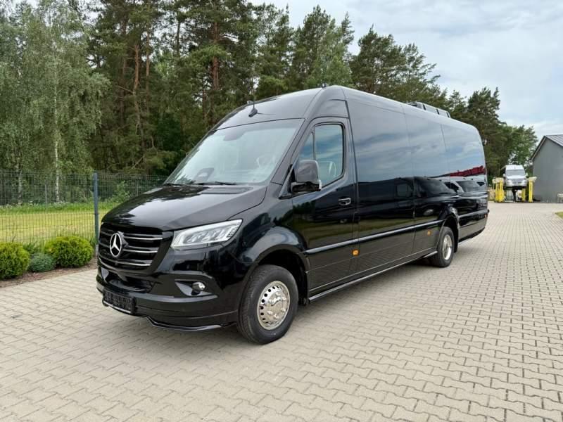 Fabrycznie nowy autobus Autobus dostępny od zaraz ! Nr. oferty: 644 Mercedes-Benz Elegantbus Sprinter 519 EURO VI E GSR II 22+1+1 miejsc siedzących z możliwością szybkiej zmiany na 19+1+1 miejsc siedzących i zwiększenia przestrzeni bagażowej ! Wersja XXXL o długości 7, 87 m Pojemność: 1950 cm3 Pakiet stylistyczny Moc: 190 KM Rok produkcji: 2025 Kolor: Czarny PODSTAWOWE I DODATKOWE WYPOSAŻENIE BAZOWE – ABS, SRS, ESP – Wspomaganie kierownicy – Automatyczna 9 stopniowa skrzynia biegów – Centralny zamek, immobiliser – Reflektory przednie w technologii LED – Tylne lampy częściowo w technologii LED – Asystent utrzymania pasa ruchu – Tempo 100 km/h – Elektryczne szyby – Sensor świateł oraz deszczu – Tempomat – Kierownica wielofunkcyjna, trójramienna – Stabilizacja poziom II – Wzmocnione opony 205/75/R16C – Dogrzewacz elektryczny PTC – Klimatyzacja półautomatyczna TEMPTRONIC – Fotel kierowcy komfortowy z podłokietnikiem – Światła z funkcją świateł do jazdy dziennej – Lusterko wsteczne – Asystent pasa ruchu – Zamykany schowek na kokpicie – Akumulator AGM 12V 95 Ah – Lusterko wsteczne wewnętrzne – Zbiornik paliwa powiększony: 93 litry – Chlapacze przednie – Chlapacze tylnie FOTELE PRZEDZIAŁU PASAŻERSKIEGO – Komfortowe turystyczne fotele przedziału pasażerskiego (regulacja oparcia oraz przesuw boczny) – Fotele posiadają pasy bezpieczeństwa, podłokietniki, siateczki, stoliki, rączki, komfortowe zagłówki, – Fotele montowane na podestach – Fotel pilota na słupku B PRZESZKLENIE POJAZDU – Szyby podwójne, przyciemniane fabrycznie – Firanki przeciwsłoneczne na prowadnicach – Szyby drzwi elektrycznych podgrzewane SYSTEMY GRZEWCZE – Grzejniki konwektorowe wodne zainstalowane w przedziale pasażerskim po lewej i prawej stronie – Postojowe ogrzewanie wodne, oryginalne EBERSCHPRECHER 5 kW KLIMATYZACJA – Automatyczna Klimatyzacja dachowa WEBASTO 12, 5 kW OŚWIETLENIE – Oświetlenie indywidualne – Oświetlenie postojowe – Oświetlenie nocne – Podświetlane stopnie wejściowe – Podesty z podświetleniem LED – Lampy obrysowe dachowe LED MULTIMEDIA – System multimedialny MBUX 10, 5 cala – Oryginalna Kamera Cofania – Mikrofon – Nagłośnienie przestrzeni pasażerskiej PIONNER – Gniazda USB dla każdego rzędu siedzeń – Przetwornica 230v PRZECHOWYWANIE BAGAŻU I UBRAŃ – Turystyczne półki bagażowe – Lodówka o pojemności 40 litrów – Pogłębiony tylny bagażnik – Wieszaki ubraniowe ELEMENTY BEZPIECZEŃSTWA – Podłoga antypoślizgowa PCV, odporna na ścieranie, wodoodporna – Szyberdach wentylacyjny / wyjście awaryjne – Młotki bezpieczeństwa – Dodatkowa gaśnica 2 kg ELEMENTY FUNKCJONALNE – Elektryczne drzwi wejściowe sterowane z przycisku i pilota – Podwójny stopień wejściowy oświetlony LED – Przedłużenie pojazdu w tylnej części – Hak holowniczy LIFTING ZEWNĘTRZNY – Lakierowane zderzaki, listwy, klamki, lusterka i grill w kolorze pojazdu – Spojlery dolne w kolorze nadwozia Sprzedający: