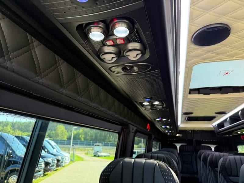 Fabrycznie nowy autobus Autobus dostępny od zaraz ! Nr. oferty: 187 Mercedes-Benz Elegantbus Sprinter 519 EURO VI E GSR II 22+1+1 miejsc siedzących z możliwością szybkiej zmiany na 19+1+1 miejsc siedzących i zwiększenia przestrzeni bagażowej ! Full Panorama Relingi dachowe Wersja XXXL o długości 7, 87 m Pojemność: 1950 cm3 Pakiet stylistyczny Moc: 190 KM Rok produkcji: 2025 Kolor: Srebrny Metalik PODSTAWOWE I DODATKOWE WYPOSAŻENIE BAZOWE – ABS, SRS, ESP – Wspomaganie kierownicy – Automatyczna 9 stopniowa skrzynia biegów – Centralny zamek, immobiliser – Reflektory przednie w technologii LED – Tylne lampy częściowo w technologii LED – Asystent utrzymania pasa ruchu – Tempo 100 km/h – Elektryczne szyby – Sensor świateł oraz deszczu – Tempomat – Kierownica wielofunkcyjna, trójramienna – Stabilizacja poziom II – Wzmocnione opony 205/75/R16C – Dogrzewacz elektryczny PTC – Klimatyzacja półautomatyczna TEMPTRONIC – Fotel kierowcy komfortowy z podłokietnikiem – Światła z funkcją świateł do jazdy dziennej – Lusterko wsteczne – Asystent pasa ruchu – Zamykany schowek na kokpicie – Akumulator AGM 12V 95 Ah – Lusterko wsteczne wewnętrzne – Zbiornik paliwa powiększony: 93 litry – Chlapacze przednie – Chlapacze tylnie FOTELE PRZEDZIAŁU PASAŻERSKIEGO – Komfortowe turystyczne fotele przedziału pasażerskiego (regulacja oparcia oraz przesuw boczny) w kolorze jasno brązowym – Fotele posiadają pasy bezpieczeństwa, podłokietniki, siateczki, stoliki, rączki, komfortowe zagłówki, – Fotele montowane na podestach – Fotel pilota na słupku B PRZESZKLENIE POJAZDU – Szyby podwójne, przyciemniane fabrycznie – Firanki przeciwsłoneczne na prowadnicach – Szyby drzwi elektrycznych podgrzewane SYSTEMY GRZEWCZE – Grzejniki konwektorowe wodne zainstalowane w przedziale pasażerskim po lewej i prawej stronie – Postojowe ogrzewanie wodne, oryginalne EBERSCHPRECHER 5 kW KLIMATYZACJA – Automatyczna Klimatyzacja dachowa WEBASTO 12, 5 kW OŚWIETLENIE – Oświetlenie indywidualne – Oświetlenie postojowe – Oświetlenie nocne – Podświetlane stopnie wejściowe – Podesty z podświetleniem LED – Lampy obrysowe dachowe LED MULTIMEDIA – System multimedialny MBUX 10, 5 cala – Oryginalna Kamera Cofania – Mikrofon – Nagłośnienie przestrzeni pasażerskiej PIONNER – Gniazda USB dla każdego rzędu siedzeń – Przetwornica 230v PRZECHOWYWANIE BAGAŻU I UBRAŃ – Turystyczne półki bagażowe – Lodówka o pojemności 40 litrów – Pogłębiony tylny bagażnik – Wieszaki ubraniowe ELEMENTY BEZPIECZEŃSTWA – Podłoga antypoślizgowa PCV, odporna na ścieranie, wodoodporna – Szyberdach wentylacyjny / wyjście awaryjne – Młotki bezpieczeństwa – Dodatkowa gaśnica 2 kg ELEMENTY FUNKCJONALNE – Elektryczne drzwi wejściowe sterowane z przycisku i pilota – Podwójny stopień wejściowy oświetlony LED – Przedłużenie pojazdu w tylnej części – Hak holowniczy LIFTING ZEWNĘTRZNY – Lakierowane zderzaki, listwy, klamki, lusterka i grill w kolorze pojazdu – Spojlery dolne w kolorze nadwozia Sprzedający: