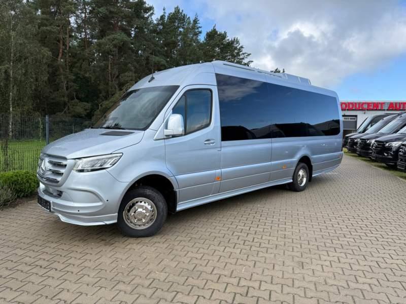 Fabrycznie nowy autobus Autobus dostępny od zaraz ! Nr. oferty: 187 Mercedes-Benz Elegantbus Sprinter 519 EURO VI E GSR II 22+1+1 miejsc siedzących z możliwością szybkiej zmiany na 19+1+1 miejsc siedzących i zwiększenia przestrzeni bagażowej ! Full Panorama Relingi dachowe Wersja XXXL o długości 7, 87 m Pojemność: 1950 cm3 Pakiet stylistyczny Moc: 190 KM Rok produkcji: 2025 Kolor: Srebrny Metalik PODSTAWOWE I DODATKOWE WYPOSAŻENIE BAZOWE – ABS, SRS, ESP – Wspomaganie kierownicy – Automatyczna 9 stopniowa skrzynia biegów – Centralny zamek, immobiliser – Reflektory przednie w technologii LED – Tylne lampy częściowo w technologii LED – Asystent utrzymania pasa ruchu – Tempo 100 km/h – Elektryczne szyby – Sensor świateł oraz deszczu – Tempomat – Kierownica wielofunkcyjna, trójramienna – Stabilizacja poziom II – Wzmocnione opony 205/75/R16C – Dogrzewacz elektryczny PTC – Klimatyzacja półautomatyczna TEMPTRONIC – Fotel kierowcy komfortowy z podłokietnikiem – Światła z funkcją świateł do jazdy dziennej – Lusterko wsteczne – Asystent pasa ruchu – Zamykany schowek na kokpicie – Akumulator AGM 12V 95 Ah – Lusterko wsteczne wewnętrzne – Zbiornik paliwa powiększony: 93 litry – Chlapacze przednie – Chlapacze tylnie FOTELE PRZEDZIAŁU PASAŻERSKIEGO – Komfortowe turystyczne fotele przedziału pasażerskiego (regulacja oparcia oraz przesuw boczny) w kolorze jasno brązowym – Fotele posiadają pasy bezpieczeństwa, podłokietniki, siateczki, stoliki, rączki, komfortowe zagłówki, – Fotele montowane na podestach – Fotel pilota na słupku B PRZESZKLENIE POJAZDU – Szyby podwójne, przyciemniane fabrycznie – Firanki przeciwsłoneczne na prowadnicach – Szyby drzwi elektrycznych podgrzewane SYSTEMY GRZEWCZE – Grzejniki konwektorowe wodne zainstalowane w przedziale pasażerskim po lewej i prawej stronie – Postojowe ogrzewanie wodne, oryginalne EBERSCHPRECHER 5 kW KLIMATYZACJA – Automatyczna Klimatyzacja dachowa WEBASTO 12, 5 kW OŚWIETLENIE – Oświetlenie indywidualne – Oświetlenie postojowe – Oświetlenie nocne – Podświetlane stopnie wejściowe – Podesty z podświetleniem LED – Lampy obrysowe dachowe LED MULTIMEDIA – System multimedialny MBUX 10, 5 cala – Oryginalna Kamera Cofania – Mikrofon – Nagłośnienie przestrzeni pasażerskiej PIONNER – Gniazda USB dla każdego rzędu siedzeń – Przetwornica 230v PRZECHOWYWANIE BAGAŻU I UBRAŃ – Turystyczne półki bagażowe – Lodówka o pojemności 40 litrów – Pogłębiony tylny bagażnik – Wieszaki ubraniowe ELEMENTY BEZPIECZEŃSTWA – Podłoga antypoślizgowa PCV, odporna na ścieranie, wodoodporna – Szyberdach wentylacyjny / wyjście awaryjne – Młotki bezpieczeństwa – Dodatkowa gaśnica 2 kg ELEMENTY FUNKCJONALNE – Elektryczne drzwi wejściowe sterowane z przycisku i pilota – Podwójny stopień wejściowy oświetlony LED – Przedłużenie pojazdu w tylnej części – Hak holowniczy LIFTING ZEWNĘTRZNY – Lakierowane zderzaki, listwy, klamki, lusterka i grill w kolorze pojazdu – Spojlery dolne w kolorze nadwozia Sprzedający: