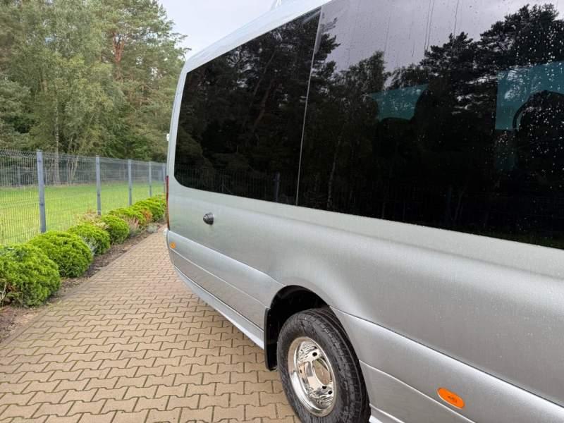 Fabrycznie nowy autobus Autobus dostępny od zaraz ! Nr. oferty: 187 Mercedes-Benz Elegantbus Sprinter 519 EURO VI E GSR II 22+1+1 miejsc siedzących z możliwością szybkiej zmiany na 19+1+1 miejsc siedzących i zwiększenia przestrzeni bagażowej ! Full Panorama Relingi dachowe Wersja XXXL o długości 7, 87 m Pojemność: 1950 cm3 Pakiet stylistyczny Moc: 190 KM Rok produkcji: 2025 Kolor: Srebrny Metalik PODSTAWOWE I DODATKOWE WYPOSAŻENIE BAZOWE – ABS, SRS, ESP – Wspomaganie kierownicy – Automatyczna 9 stopniowa skrzynia biegów – Centralny zamek, immobiliser – Reflektory przednie w technologii LED – Tylne lampy częściowo w technologii LED – Asystent utrzymania pasa ruchu – Tempo 100 km/h – Elektryczne szyby – Sensor świateł oraz deszczu – Tempomat – Kierownica wielofunkcyjna, trójramienna – Stabilizacja poziom II – Wzmocnione opony 205/75/R16C – Dogrzewacz elektryczny PTC – Klimatyzacja półautomatyczna TEMPTRONIC – Fotel kierowcy komfortowy z podłokietnikiem – Światła z funkcją świateł do jazdy dziennej – Lusterko wsteczne – Asystent pasa ruchu – Zamykany schowek na kokpicie – Akumulator AGM 12V 95 Ah – Lusterko wsteczne wewnętrzne – Zbiornik paliwa powiększony: 93 litry – Chlapacze przednie – Chlapacze tylnie FOTELE PRZEDZIAŁU PASAŻERSKIEGO – Komfortowe turystyczne fotele przedziału pasażerskiego (regulacja oparcia oraz przesuw boczny) w kolorze jasno brązowym – Fotele posiadają pasy bezpieczeństwa, podłokietniki, siateczki, stoliki, rączki, komfortowe zagłówki, – Fotele montowane na podestach – Fotel pilota na słupku B PRZESZKLENIE POJAZDU – Szyby podwójne, przyciemniane fabrycznie – Firanki przeciwsłoneczne na prowadnicach – Szyby drzwi elektrycznych podgrzewane SYSTEMY GRZEWCZE – Grzejniki konwektorowe wodne zainstalowane w przedziale pasażerskim po lewej i prawej stronie – Postojowe ogrzewanie wodne, oryginalne EBERSCHPRECHER 5 kW KLIMATYZACJA – Automatyczna Klimatyzacja dachowa WEBASTO 12, 5 kW OŚWIETLENIE – Oświetlenie indywidualne – Oświetlenie postojowe – Oświetlenie nocne – Podświetlane stopnie wejściowe – Podesty z podświetleniem LED – Lampy obrysowe dachowe LED MULTIMEDIA – System multimedialny MBUX 10, 5 cala – Oryginalna Kamera Cofania – Mikrofon – Nagłośnienie przestrzeni pasażerskiej PIONNER – Gniazda USB dla każdego rzędu siedzeń – Przetwornica 230v PRZECHOWYWANIE BAGAŻU I UBRAŃ – Turystyczne półki bagażowe – Lodówka o pojemności 40 litrów – Pogłębiony tylny bagażnik – Wieszaki ubraniowe ELEMENTY BEZPIECZEŃSTWA – Podłoga antypoślizgowa PCV, odporna na ścieranie, wodoodporna – Szyberdach wentylacyjny / wyjście awaryjne – Młotki bezpieczeństwa – Dodatkowa gaśnica 2 kg ELEMENTY FUNKCJONALNE – Elektryczne drzwi wejściowe sterowane z przycisku i pilota – Podwójny stopień wejściowy oświetlony LED – Przedłużenie pojazdu w tylnej części – Hak holowniczy LIFTING ZEWNĘTRZNY – Lakierowane zderzaki, listwy, klamki, lusterka i grill w kolorze pojazdu – Spojlery dolne w kolorze nadwozia Sprzedający: