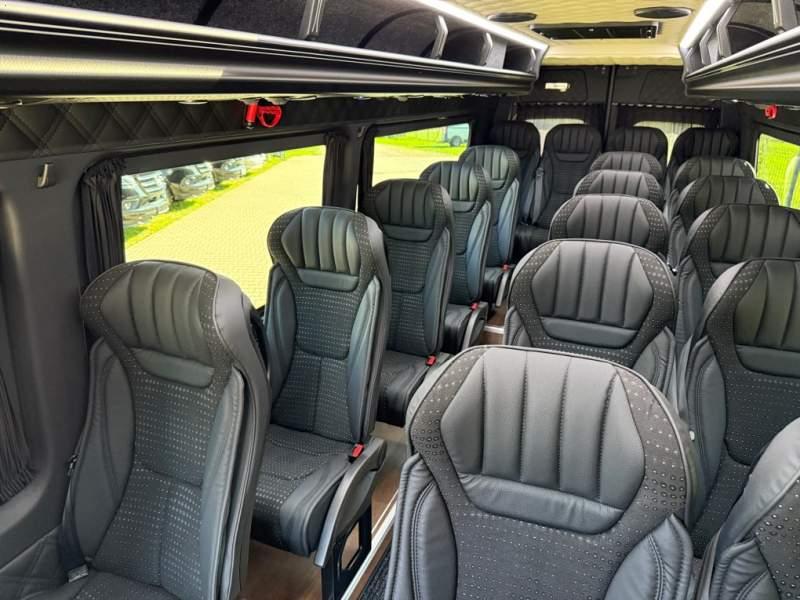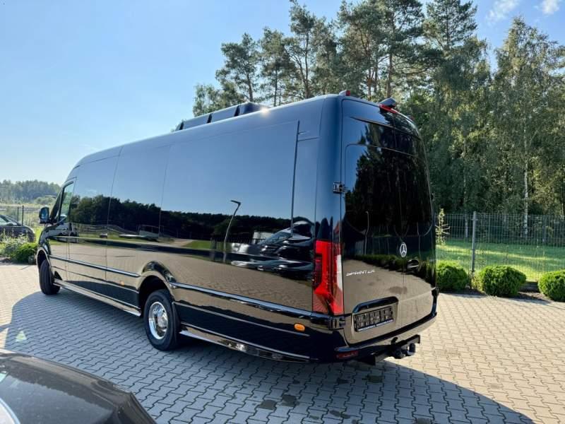 Fabrycznie nowy autobus Autobus dostępny od zaraz ! Nr. oferty: 187 Mercedes-Benz Elegantbus Sprinter 519 EURO VI E GSR II 22+1+1 miejsc siedzących z możliwością szybkiej zmiany na 19+1+1 miejsc siedzących i zwiększenia przestrzeni bagażowej ! Full Panorama Relingi dachowe Wersja XXXL o długości 7, 87 m Pojemność: 1950 cm3 Pakiet stylistyczny Moc: 190 KM Rok produkcji: 2025 Kolor: Srebrny Metalik PODSTAWOWE I DODATKOWE WYPOSAŻENIE BAZOWE – ABS, SRS, ESP – Wspomaganie kierownicy – Automatyczna 9 stopniowa skrzynia biegów – Centralny zamek, immobiliser – Reflektory przednie w technologii LED – Tylne lampy częściowo w technologii LED – Asystent utrzymania pasa ruchu – Tempo 100 km/h – Elektryczne szyby – Sensor świateł oraz deszczu – Tempomat – Kierownica wielofunkcyjna, trójramienna – Stabilizacja poziom II – Wzmocnione opony 205/75/R16C – Dogrzewacz elektryczny PTC – Klimatyzacja półautomatyczna TEMPTRONIC – Fotel kierowcy komfortowy z podłokietnikiem – Światła z funkcją świateł do jazdy dziennej – Lusterko wsteczne – Asystent pasa ruchu – Zamykany schowek na kokpicie – Akumulator AGM 12V 95 Ah – Lusterko wsteczne wewnętrzne – Zbiornik paliwa powiększony: 93 litry – Chlapacze przednie – Chlapacze tylnie FOTELE PRZEDZIAŁU PASAŻERSKIEGO – Komfortowe turystyczne fotele przedziału pasażerskiego (regulacja oparcia oraz przesuw boczny) w kolorze jasno brązowym – Fotele posiadają pasy bezpieczeństwa, podłokietniki, siateczki, stoliki, rączki, komfortowe zagłówki, – Fotele montowane na podestach – Fotel pilota na słupku B PRZESZKLENIE POJAZDU – Szyby podwójne, przyciemniane fabrycznie – Firanki przeciwsłoneczne na prowadnicach – Szyby drzwi elektrycznych podgrzewane SYSTEMY GRZEWCZE – Grzejniki konwektorowe wodne zainstalowane w przedziale pasażerskim po lewej i prawej stronie – Postojowe ogrzewanie wodne, oryginalne EBERSCHPRECHER 5 kW KLIMATYZACJA – Automatyczna Klimatyzacja dachowa WEBASTO 12, 5 kW OŚWIETLENIE – Oświetlenie indywidualne – Oświetlenie postojowe – Oświetlenie nocne – Podświetlane stopnie wejściowe – Podesty z podświetleniem LED – Lampy obrysowe dachowe LED MULTIMEDIA – System multimedialny MBUX 10, 5 cala – Oryginalna Kamera Cofania – Mikrofon – Nagłośnienie przestrzeni pasażerskiej PIONNER – Gniazda USB dla każdego rzędu siedzeń – Przetwornica 230v PRZECHOWYWANIE BAGAŻU I UBRAŃ – Turystyczne półki bagażowe – Lodówka o pojemności 40 litrów – Pogłębiony tylny bagażnik – Wieszaki ubraniowe ELEMENTY BEZPIECZEŃSTWA – Podłoga antypoślizgowa PCV, odporna na ścieranie, wodoodporna – Szyberdach wentylacyjny / wyjście awaryjne – Młotki bezpieczeństwa – Dodatkowa gaśnica 2 kg ELEMENTY FUNKCJONALNE – Elektryczne drzwi wejściowe sterowane z przycisku i pilota – Podwójny stopień wejściowy oświetlony LED – Przedłużenie pojazdu w tylnej części – Hak holowniczy LIFTING ZEWNĘTRZNY – Lakierowane zderzaki, listwy, klamki, lusterka i grill w kolorze pojazdu – Spojlery dolne w kolorze nadwozia Sprzedający: