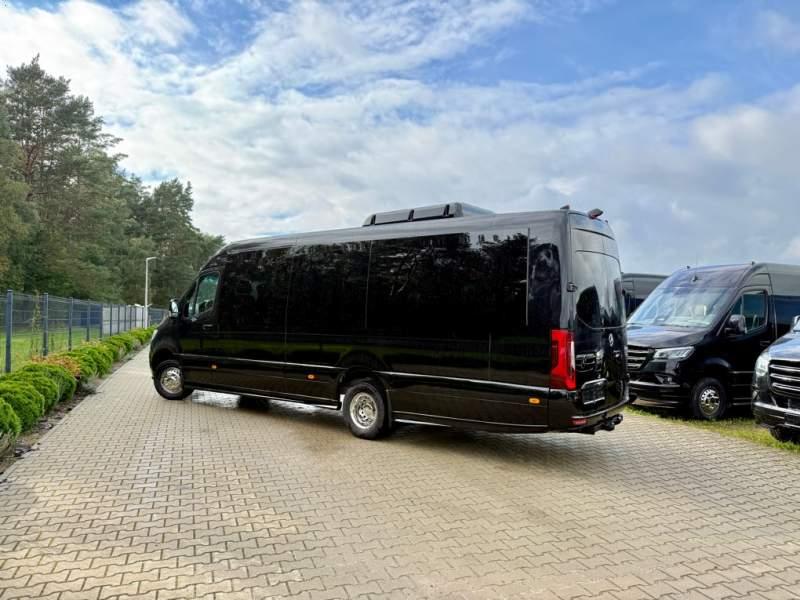 Fabrycznie nowy autobus Autobus dostępny od ręki ! Nr. oferty: 100 Mercedes-Benz Elegantbus Sprinter 519 EURO VI E 22+1+1 miejsc siedzących (Fotele zamontowane w szynach, możliwość zmiany na 19+1+1 miejsc i zwiększenie przestrzeni bagażowej) Wersja XXXL o długości 7, 87 m Pojemność: 1950 cm3 Pakiet stylistyczny Moc: 190 KM Rok produkcji: 2025 PODSTAWOWE I DODATKOWE WYPOSAŻENIE BAZOWE – ABS, SRS, ESP – Automatyczna 9 stopniowa skrzynia biegów – Reflektory przednie w technologii LED – Automatyczna zmiany świateł mijania - drogowe – Tylne lampy w technologii LED – Asystent utrzymania pasa ruchu – Tempo 100 km/h – Sensor świateł oraz deszczu – Tempomat – Kierownica wielofunkcyjna, trójramienna – Klimatyzacja dla kierowcy – Fotel kierowcy komfortowy z podłokietnikiem – Lusterko wsteczne – Asystent pasa ruchu FOTELE PRZEDZIAŁU PASAŻERSKIEGO – Komfortowe turystyczne fotele przedziału pasażerskiego (regulacja oparcia oraz przesuw boczny) – Fotele posiadają pasy bezpieczeństwa, podłokietniki, siateczki, stoliki, rączki, komfortowe zagłówki, – Fotele montowane na podestach – Fotel pilota na słupku B PRZESZKLENIE POJAZDU – Szyby podwójne, przyciemniane fabrycznie – Firanki przeciwsłoneczne na prowadnicach SYSTEMY GRZEWCZE – Konwektory grzewcze po lewej i prawej stronie – Ogrzewanie niezależne od pracy sinika mocy 5 kW z rozprowadzeniem KLIMATYZACJA – Automatyczna klimatyzacja dachowa o dużej wydajności 12, 5 KW OŚWIETLENIE – Oświetlenie indywidualne – Oświetlenie postojowe – Oświetlenie nocne – Podświetlane stopnie wejściowe – Podesty z podświetleniem LED – Lampy obrysowe dachowe MULTIMEDIA – System multimedialny MBUX 7, 5 ' – System Apple Car Play oraz Android Auto – Monitor podsufitowy 17 ' – Kamera Cofania – Mikrofon dynamiczny z potencjometrem – Nagłośnienie przestrzeni pasażerskiej PIONNER – Gniazda USB oraz USB C dla każdego rzędu siedzeń – Przetwornica 230v PRZECHOWYWANIE BAGAŻU I UBRAŃ – Turystyczne półki bagażowe – Pogłębiony tylny bagażnik – Wieszaki ubraniowe ELEMENTY BEZPIECZEŃSTWA – Podłoga antypoślizgowa PCV, odporna na ścieranie, wodoodporna – Szyberdach wentylacyjny / wyjście awaryjne – Młotki bezpieczeństwa – Dodatkowa gaśnica 2 kg ELEMENTY FUNKCJONALNE – Drzwi wejściowe elektryczne – Podwójny stopień wejściowy oświetlony LED – Przedłużenie pojazdu w tylnej części – Hak holowniczy z instalacją elektryczną – Lodówka 40 l LIFTING ZEWNĘTRZNY – Lakierowane zderzaki, listwy, klamki, lusterka i grill w kolorze pojazdu – Wszystkie dokładki lakierowane w kolor nadwozia Sprzedający: