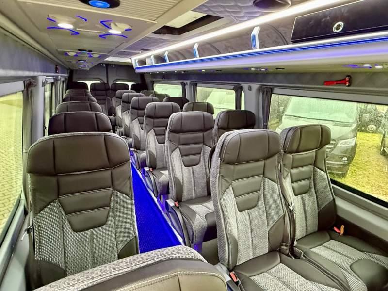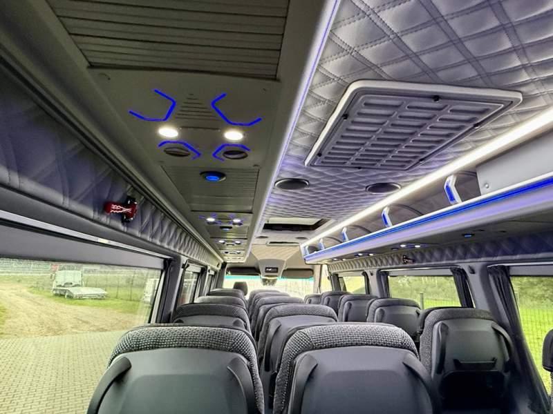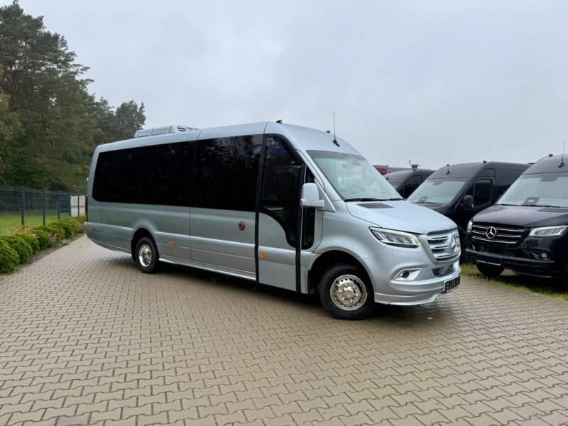 Fabrycznie nowy autobus Autobus dostępny od ręki ! Nr. oferty: 148 Mercedes-Benz Elegantbus Sprinter 519 EURO VI E 22+1+1 miejsc siedzących (Fotele zamontowane w szynach, możliwość zmiany na 19+1+1 miejsc i zwiększenie przestrzeni bagażowej) Wersja XXXL o długości 7, 87 m Pojemność: 1950 cm3 Pakiet stylistyczny Moc: 190 KM Rok produkcji: 2025 PODSTAWOWE I DODATKOWE WYPOSAŻENIE BAZOWE – ABS, SRS, ESP – Automatyczna 9 stopniowa skrzynia biegów – Reflektory przednie w technologii LED – Automatyczna zmiany świateł mijania - drogowe – Tylne lampy w technologii LED – Asystent utrzymania pasa ruchu – Tempo 100 km/h – Sensor świateł oraz deszczu – Tempomat – Kierownica wielofunkcyjna, trójramienna – Klimatyzacja dla kierowcy – Fotel kierowcy komfortowy z podłokietnikiem – Lusterko wsteczne – Asystent pasa ruchu FOTELE PRZEDZIAŁU PASAŻERSKIEGO – Komfortowe turystyczne fotele przedziału pasażerskiego (regulacja oparcia oraz przesuw boczny) – Fotele posiadają pasy bezpieczeństwa, podłokietniki, siateczki, stoliki, rączki, komfortowe zagłówki, – Fotele montowane na podestach – Fotel pilota na słupku B PRZESZKLENIE POJAZDU – Szyby podwójne, przyciemniane fabrycznie – Firanki przeciwsłoneczne na prowadnicach SYSTEMY GRZEWCZE – Konwektory grzewcze po lewej i prawej stronie – Ogrzewanie niezależne od pracy sinika mocy 5 kW z rozprowadzeniem KLIMATYZACJA – Automatyczna klimatyzacja dachowa o dużej wydajności 12, 5 KW OŚWIETLENIE – Oświetlenie indywidualne – Oświetlenie postojowe – Oświetlenie nocne – Podświetlane stopnie wejściowe – Podesty z podświetleniem LED – Lampy obrysowe dachowe MULTIMEDIA – System multimedialny MBUX 7, 5 ' – System Apple Car Play oraz Android Auto – Monitor podsufitowy 17 ' – Kamera Cofania – Mikrofon dynamiczny z potencjometrem – Nagłośnienie przestrzeni pasażerskiej PIONNER – Gniazda USB oraz USB C dla każdego rzędu siedzeń – Przetwornica 230v PRZECHOWYWANIE BAGAŻU I UBRAŃ – Turystyczne półki bagażowe – Pogłębiony tylny bagażnik – Wieszaki ubraniowe ELEMENTY BEZPIECZEŃSTWA – Podłoga antypoślizgowa PCV, odporna na ścieranie, wodoodporna – Szyberdach wentylacyjny / wyjście awaryjne – Młotki bezpieczeństwa – Dodatkowa gaśnica 2 kg ELEMENTY FUNKCJONALNE – Drzwi wejściowe elektryczne – Podwójny stopień wejściowy oświetlony LED – Przedłużenie pojazdu w tylnej części – Hak holowniczy z instalacją elektryczną – Lodówka 40 l LIFTING ZEWNĘTRZNY – Lakierowane zderzaki, listwy, klamki, lusterka i grill w kolorze pojazdu – Wszystkie dokładki lakierowane w kolor nadwozia Sprzedający: