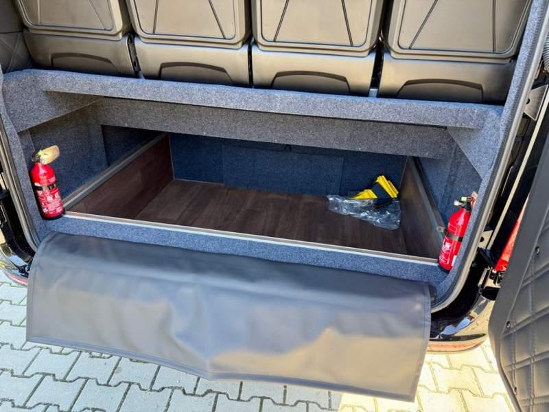 Fabrycznie nowy autobus Autobus dostępny od zaraz ! Nr. oferty: 187 Mercedes-Benz Elegantbus Sprinter 519 EURO VI E GSR II 22+1+1 miejsc siedzących z możliwością szybkiej zmiany na 19+1+1 miejsc siedzących i zwiększenia przestrzeni bagażowej ! Full Panorama Relingi dachowe Wersja XXXL o długości 7, 87 m Pojemność: 1950 cm3 Pakiet stylistyczny Moc: 190 KM Rok produkcji: 2025 Kolor: Srebrny Metalik PODSTAWOWE I DODATKOWE WYPOSAŻENIE BAZOWE – ABS, SRS, ESP – Wspomaganie kierownicy – Automatyczna 9 stopniowa skrzynia biegów – Centralny zamek, immobiliser – Reflektory przednie w technologii LED – Tylne lampy częściowo w technologii LED – Asystent utrzymania pasa ruchu – Tempo 100 km/h – Elektryczne szyby – Sensor świateł oraz deszczu – Tempomat – Kierownica wielofunkcyjna, trójramienna – Stabilizacja poziom II – Wzmocnione opony 205/75/R16C – Dogrzewacz elektryczny PTC – Klimatyzacja półautomatyczna TEMPTRONIC – Fotel kierowcy komfortowy z podłokietnikiem – Światła z funkcją świateł do jazdy dziennej – Lusterko wsteczne – Asystent pasa ruchu – Zamykany schowek na kokpicie – Akumulator AGM 12V 95 Ah – Lusterko wsteczne wewnętrzne – Zbiornik paliwa powiększony: 93 litry – Chlapacze przednie – Chlapacze tylnie FOTELE PRZEDZIAŁU PASAŻERSKIEGO – Komfortowe turystyczne fotele przedziału pasażerskiego (regulacja oparcia oraz przesuw boczny) w kolorze jasno brązowym – Fotele posiadają pasy bezpieczeństwa, podłokietniki, siateczki, stoliki, rączki, komfortowe zagłówki, – Fotele montowane na podestach – Fotel pilota na słupku B PRZESZKLENIE POJAZDU – Szyby podwójne, przyciemniane fabrycznie – Firanki przeciwsłoneczne na prowadnicach – Szyby drzwi elektrycznych podgrzewane SYSTEMY GRZEWCZE – Grzejniki konwektorowe wodne zainstalowane w przedziale pasażerskim po lewej i prawej stronie – Postojowe ogrzewanie wodne, oryginalne EBERSCHPRECHER 5 kW KLIMATYZACJA – Automatyczna Klimatyzacja dachowa WEBASTO 12, 5 kW OŚWIETLENIE – Oświetlenie indywidualne – Oświetlenie postojowe – Oświetlenie nocne – Podświetlane stopnie wejściowe – Podesty z podświetleniem LED – Lampy obrysowe dachowe LED MULTIMEDIA – System multimedialny MBUX 10, 5 cala – Oryginalna Kamera Cofania – Mikrofon – Nagłośnienie przestrzeni pasażerskiej PIONNER – Gniazda USB dla każdego rzędu siedzeń – Przetwornica 230v PRZECHOWYWANIE BAGAŻU I UBRAŃ – Turystyczne półki bagażowe – Lodówka o pojemności 40 litrów – Pogłębiony tylny bagażnik – Wieszaki ubraniowe ELEMENTY BEZPIECZEŃSTWA – Podłoga antypoślizgowa PCV, odporna na ścieranie, wodoodporna – Szyberdach wentylacyjny / wyjście awaryjne – Młotki bezpieczeństwa – Dodatkowa gaśnica 2 kg ELEMENTY FUNKCJONALNE – Elektryczne drzwi wejściowe sterowane z przycisku i pilota – Podwójny stopień wejściowy oświetlony LED – Przedłużenie pojazdu w tylnej części – Hak holowniczy LIFTING ZEWNĘTRZNY – Lakierowane zderzaki, listwy, klamki, lusterka i grill w kolorze pojazdu – Spojlery dolne w kolorze nadwozia Sprzedający: