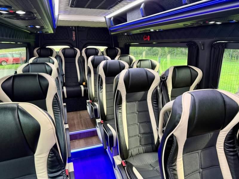 Fabrycznie nowy autobus Autobus dostępny od ręki ! Nr. oferty: 100 Mercedes-Benz Elegantbus Sprinter 519 EURO VI E 22+1+1 miejsc siedzących (Fotele zamontowane w szynach, możliwość zmiany na 19+1+1 miejsc i zwiększenie przestrzeni bagażowej) Wersja XXXL o długości 7, 87 m Pojemność: 1950 cm3 Pakiet stylistyczny Moc: 190 KM Rok produkcji: 2025 PODSTAWOWE I DODATKOWE WYPOSAŻENIE BAZOWE – ABS, SRS, ESP – Automatyczna 9 stopniowa skrzynia biegów – Reflektory przednie w technologii LED – Automatyczna zmiany świateł mijania - drogowe – Tylne lampy w technologii LED – Asystent utrzymania pasa ruchu – Tempo 100 km/h – Sensor świateł oraz deszczu – Tempomat – Kierownica wielofunkcyjna, trójramienna – Klimatyzacja dla kierowcy – Fotel kierowcy komfortowy z podłokietnikiem – Lusterko wsteczne – Asystent pasa ruchu FOTELE PRZEDZIAŁU PASAŻERSKIEGO – Komfortowe turystyczne fotele przedziału pasażerskiego (regulacja oparcia oraz przesuw boczny) – Fotele posiadają pasy bezpieczeństwa, podłokietniki, siateczki, stoliki, rączki, komfortowe zagłówki, – Fotele montowane na podestach – Fotel pilota na słupku B PRZESZKLENIE POJAZDU – Szyby podwójne, przyciemniane fabrycznie – Firanki przeciwsłoneczne na prowadnicach SYSTEMY GRZEWCZE – Konwektory grzewcze po lewej i prawej stronie – Ogrzewanie niezależne od pracy sinika mocy 5 kW z rozprowadzeniem KLIMATYZACJA – Automatyczna klimatyzacja dachowa o dużej wydajności 12, 5 KW OŚWIETLENIE – Oświetlenie indywidualne – Oświetlenie postojowe – Oświetlenie nocne – Podświetlane stopnie wejściowe – Podesty z podświetleniem LED – Lampy obrysowe dachowe MULTIMEDIA – System multimedialny MBUX 7, 5 ' – System Apple Car Play oraz Android Auto – Monitor podsufitowy 17 ' – Kamera Cofania – Mikrofon dynamiczny z potencjometrem – Nagłośnienie przestrzeni pasażerskiej PIONNER – Gniazda USB oraz USB C dla każdego rzędu siedzeń – Przetwornica 230v PRZECHOWYWANIE BAGAŻU I UBRAŃ – Turystyczne półki bagażowe – Pogłębiony tylny bagażnik – Wieszaki ubraniowe ELEMENTY BEZPIECZEŃSTWA – Podłoga antypoślizgowa PCV, odporna na ścieranie, wodoodporna – Szyberdach wentylacyjny / wyjście awaryjne – Młotki bezpieczeństwa – Dodatkowa gaśnica 2 kg ELEMENTY FUNKCJONALNE – Drzwi wejściowe elektryczne – Podwójny stopień wejściowy oświetlony LED – Przedłużenie pojazdu w tylnej części – Hak holowniczy z instalacją elektryczną – Lodówka 40 l LIFTING ZEWNĘTRZNY – Lakierowane zderzaki, listwy, klamki, lusterka i grill w kolorze pojazdu – Wszystkie dokładki lakierowane w kolor nadwozia Sprzedający: