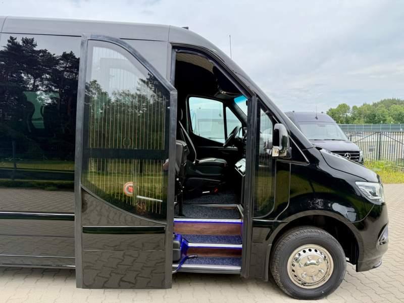 Fabrycznie nowy autobus Autobus dostępny od zaraz ! Nr. oferty: 644 Mercedes-Benz Elegantbus Sprinter 519 EURO VI E GSR II 22+1+1 miejsc siedzących z możliwością szybkiej zmiany na 19+1+1 miejsc siedzących i zwiększenia przestrzeni bagażowej ! Wersja XXXL o długości 7, 87 m Pojemność: 1950 cm3 Pakiet stylistyczny Moc: 190 KM Rok produkcji: 2025 Kolor: Czarny PODSTAWOWE I DODATKOWE WYPOSAŻENIE BAZOWE – ABS, SRS, ESP – Wspomaganie kierownicy – Automatyczna 9 stopniowa skrzynia biegów – Centralny zamek, immobiliser – Reflektory przednie w technologii LED – Tylne lampy częściowo w technologii LED – Asystent utrzymania pasa ruchu – Tempo 100 km/h – Elektryczne szyby – Sensor świateł oraz deszczu – Tempomat – Kierownica wielofunkcyjna, trójramienna – Stabilizacja poziom II – Wzmocnione opony 205/75/R16C – Dogrzewacz elektryczny PTC – Klimatyzacja półautomatyczna TEMPTRONIC – Fotel kierowcy komfortowy z podłokietnikiem – Światła z funkcją świateł do jazdy dziennej – Lusterko wsteczne – Asystent pasa ruchu – Zamykany schowek na kokpicie – Akumulator AGM 12V 95 Ah – Lusterko wsteczne wewnętrzne – Zbiornik paliwa powiększony: 93 litry – Chlapacze przednie – Chlapacze tylnie FOTELE PRZEDZIAŁU PASAŻERSKIEGO – Komfortowe turystyczne fotele przedziału pasażerskiego (regulacja oparcia oraz przesuw boczny) – Fotele posiadają pasy bezpieczeństwa, podłokietniki, siateczki, stoliki, rączki, komfortowe zagłówki, – Fotele montowane na podestach – Fotel pilota na słupku B PRZESZKLENIE POJAZDU – Szyby podwójne, przyciemniane fabrycznie – Firanki przeciwsłoneczne na prowadnicach – Szyby drzwi elektrycznych podgrzewane SYSTEMY GRZEWCZE – Grzejniki konwektorowe wodne zainstalowane w przedziale pasażerskim po lewej i prawej stronie – Postojowe ogrzewanie wodne, oryginalne EBERSCHPRECHER 5 kW KLIMATYZACJA – Automatyczna Klimatyzacja dachowa WEBASTO 12, 5 kW OŚWIETLENIE – Oświetlenie indywidualne – Oświetlenie postojowe – Oświetlenie nocne – Podświetlane stopnie wejściowe – Podesty z podświetleniem LED – Lampy obrysowe dachowe LED MULTIMEDIA – System multimedialny MBUX 10, 5 cala – Oryginalna Kamera Cofania – Mikrofon – Nagłośnienie przestrzeni pasażerskiej PIONNER – Gniazda USB dla każdego rzędu siedzeń – Przetwornica 230v PRZECHOWYWANIE BAGAŻU I UBRAŃ – Turystyczne półki bagażowe – Lodówka o pojemności 40 litrów – Pogłębiony tylny bagażnik – Wieszaki ubraniowe ELEMENTY BEZPIECZEŃSTWA – Podłoga antypoślizgowa PCV, odporna na ścieranie, wodoodporna – Szyberdach wentylacyjny / wyjście awaryjne – Młotki bezpieczeństwa – Dodatkowa gaśnica 2 kg ELEMENTY FUNKCJONALNE – Elektryczne drzwi wejściowe sterowane z przycisku i pilota – Podwójny stopień wejściowy oświetlony LED – Przedłużenie pojazdu w tylnej części – Hak holowniczy LIFTING ZEWNĘTRZNY – Lakierowane zderzaki, listwy, klamki, lusterka i grill w kolorze pojazdu – Spojlery dolne w kolorze nadwozia Sprzedający: