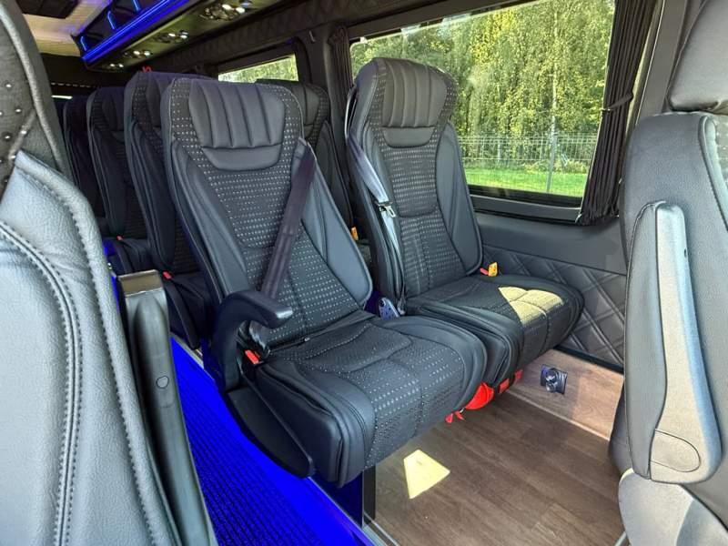 Fabrycznie nowy autobus Autobus dostępny od zaraz ! Nr. oferty: 187 Mercedes-Benz Elegantbus Sprinter 519 EURO VI E GSR II 22+1+1 miejsc siedzących z możliwością szybkiej zmiany na 19+1+1 miejsc siedzących i zwiększenia przestrzeni bagażowej ! Full Panorama Relingi dachowe Wersja XXXL o długości 7, 87 m Pojemność: 1950 cm3 Pakiet stylistyczny Moc: 190 KM Rok produkcji: 2025 Kolor: Srebrny Metalik PODSTAWOWE I DODATKOWE WYPOSAŻENIE BAZOWE – ABS, SRS, ESP – Wspomaganie kierownicy – Automatyczna 9 stopniowa skrzynia biegów – Centralny zamek, immobiliser – Reflektory przednie w technologii LED – Tylne lampy częściowo w technologii LED – Asystent utrzymania pasa ruchu – Tempo 100 km/h – Elektryczne szyby – Sensor świateł oraz deszczu – Tempomat – Kierownica wielofunkcyjna, trójramienna – Stabilizacja poziom II – Wzmocnione opony 205/75/R16C – Dogrzewacz elektryczny PTC – Klimatyzacja półautomatyczna TEMPTRONIC – Fotel kierowcy komfortowy z podłokietnikiem – Światła z funkcją świateł do jazdy dziennej – Lusterko wsteczne – Asystent pasa ruchu – Zamykany schowek na kokpicie – Akumulator AGM 12V 95 Ah – Lusterko wsteczne wewnętrzne – Zbiornik paliwa powiększony: 93 litry – Chlapacze przednie – Chlapacze tylnie FOTELE PRZEDZIAŁU PASAŻERSKIEGO – Komfortowe turystyczne fotele przedziału pasażerskiego (regulacja oparcia oraz przesuw boczny) w kolorze jasno brązowym – Fotele posiadają pasy bezpieczeństwa, podłokietniki, siateczki, stoliki, rączki, komfortowe zagłówki, – Fotele montowane na podestach – Fotel pilota na słupku B PRZESZKLENIE POJAZDU – Szyby podwójne, przyciemniane fabrycznie – Firanki przeciwsłoneczne na prowadnicach – Szyby drzwi elektrycznych podgrzewane SYSTEMY GRZEWCZE – Grzejniki konwektorowe wodne zainstalowane w przedziale pasażerskim po lewej i prawej stronie – Postojowe ogrzewanie wodne, oryginalne EBERSCHPRECHER 5 kW KLIMATYZACJA – Automatyczna Klimatyzacja dachowa WEBASTO 12, 5 kW OŚWIETLENIE – Oświetlenie indywidualne – Oświetlenie postojowe – Oświetlenie nocne – Podświetlane stopnie wejściowe – Podesty z podświetleniem LED – Lampy obrysowe dachowe LED MULTIMEDIA – System multimedialny MBUX 10, 5 cala – Oryginalna Kamera Cofania – Mikrofon – Nagłośnienie przestrzeni pasażerskiej PIONNER – Gniazda USB dla każdego rzędu siedzeń – Przetwornica 230v PRZECHOWYWANIE BAGAŻU I UBRAŃ – Turystyczne półki bagażowe – Lodówka o pojemności 40 litrów – Pogłębiony tylny bagażnik – Wieszaki ubraniowe ELEMENTY BEZPIECZEŃSTWA – Podłoga antypoślizgowa PCV, odporna na ścieranie, wodoodporna – Szyberdach wentylacyjny / wyjście awaryjne – Młotki bezpieczeństwa – Dodatkowa gaśnica 2 kg ELEMENTY FUNKCJONALNE – Elektryczne drzwi wejściowe sterowane z przycisku i pilota – Podwójny stopień wejściowy oświetlony LED – Przedłużenie pojazdu w tylnej części – Hak holowniczy LIFTING ZEWNĘTRZNY – Lakierowane zderzaki, listwy, klamki, lusterka i grill w kolorze pojazdu – Spojlery dolne w kolorze nadwozia Sprzedający: