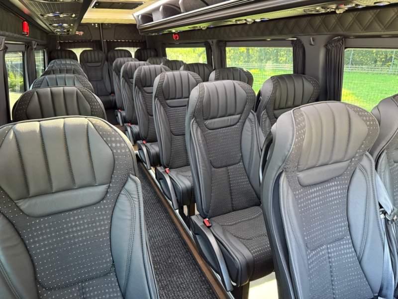 Fabrycznie nowy autobus Autobus dostępny od zaraz ! Nr. oferty: 187 Mercedes-Benz Elegantbus Sprinter 519 EURO VI E GSR II 22+1+1 miejsc siedzących z możliwością szybkiej zmiany na 19+1+1 miejsc siedzących i zwiększenia przestrzeni bagażowej ! Full Panorama Relingi dachowe Wersja XXXL o długości 7, 87 m Pojemność: 1950 cm3 Pakiet stylistyczny Moc: 190 KM Rok produkcji: 2025 Kolor: Srebrny Metalik PODSTAWOWE I DODATKOWE WYPOSAŻENIE BAZOWE – ABS, SRS, ESP – Wspomaganie kierownicy – Automatyczna 9 stopniowa skrzynia biegów – Centralny zamek, immobiliser – Reflektory przednie w technologii LED – Tylne lampy częściowo w technologii LED – Asystent utrzymania pasa ruchu – Tempo 100 km/h – Elektryczne szyby – Sensor świateł oraz deszczu – Tempomat – Kierownica wielofunkcyjna, trójramienna – Stabilizacja poziom II – Wzmocnione opony 205/75/R16C – Dogrzewacz elektryczny PTC – Klimatyzacja półautomatyczna TEMPTRONIC – Fotel kierowcy komfortowy z podłokietnikiem – Światła z funkcją świateł do jazdy dziennej – Lusterko wsteczne – Asystent pasa ruchu – Zamykany schowek na kokpicie – Akumulator AGM 12V 95 Ah – Lusterko wsteczne wewnętrzne – Zbiornik paliwa powiększony: 93 litry – Chlapacze przednie – Chlapacze tylnie FOTELE PRZEDZIAŁU PASAŻERSKIEGO – Komfortowe turystyczne fotele przedziału pasażerskiego (regulacja oparcia oraz przesuw boczny) w kolorze jasno brązowym – Fotele posiadają pasy bezpieczeństwa, podłokietniki, siateczki, stoliki, rączki, komfortowe zagłówki, – Fotele montowane na podestach – Fotel pilota na słupku B PRZESZKLENIE POJAZDU – Szyby podwójne, przyciemniane fabrycznie – Firanki przeciwsłoneczne na prowadnicach – Szyby drzwi elektrycznych podgrzewane SYSTEMY GRZEWCZE – Grzejniki konwektorowe wodne zainstalowane w przedziale pasażerskim po lewej i prawej stronie – Postojowe ogrzewanie wodne, oryginalne EBERSCHPRECHER 5 kW KLIMATYZACJA – Automatyczna Klimatyzacja dachowa WEBASTO 12, 5 kW OŚWIETLENIE – Oświetlenie indywidualne – Oświetlenie postojowe – Oświetlenie nocne – Podświetlane stopnie wejściowe – Podesty z podświetleniem LED – Lampy obrysowe dachowe LED MULTIMEDIA – System multimedialny MBUX 10, 5 cala – Oryginalna Kamera Cofania – Mikrofon – Nagłośnienie przestrzeni pasażerskiej PIONNER – Gniazda USB dla każdego rzędu siedzeń – Przetwornica 230v PRZECHOWYWANIE BAGAŻU I UBRAŃ – Turystyczne półki bagażowe – Lodówka o pojemności 40 litrów – Pogłębiony tylny bagażnik – Wieszaki ubraniowe ELEMENTY BEZPIECZEŃSTWA – Podłoga antypoślizgowa PCV, odporna na ścieranie, wodoodporna – Szyberdach wentylacyjny / wyjście awaryjne – Młotki bezpieczeństwa – Dodatkowa gaśnica 2 kg ELEMENTY FUNKCJONALNE – Elektryczne drzwi wejściowe sterowane z przycisku i pilota – Podwójny stopień wejściowy oświetlony LED – Przedłużenie pojazdu w tylnej części – Hak holowniczy LIFTING ZEWNĘTRZNY – Lakierowane zderzaki, listwy, klamki, lusterka i grill w kolorze pojazdu – Spojlery dolne w kolorze nadwozia Sprzedający: