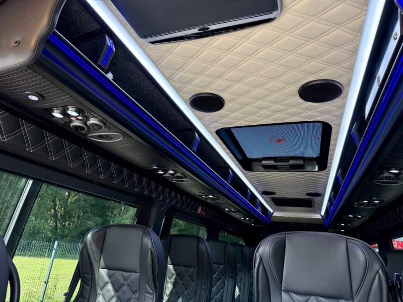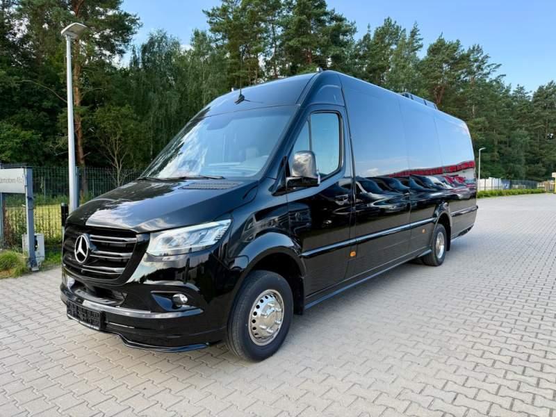Fabrycznie nowy autobus Autobus dostępny od zaraz ! Nr. Oferty: 731 Mercedes-Benz Elegantbus Sprinter 519 EURO VI E GSR II 22+1+1 miejsc siedzących z możliwością szybkiej zmiany na 19+1+1 miejsc siedzących i zwiększenia przestrzeni bagażowej ! Wersja XXXL o długości 7, 87 m Pojemność: 1950 cm3 Pakiet stylistyczny Moc: 190 KM Rok produkcji: 2025 Kolor: Czarny PODSTAWOWE I DODATKOWE WYPOSAŻENIE BAZOWE – ABS, SRS, ESP – Wspomaganie kierownicy – Automatyczna 9 stopniowa skrzynia biegów – Centralny zamek, immobiliser – Reflektory przednie w technologii LED – Tylne lampy częściowo w technologii LED – Asystent utrzymania pasa ruchu – Tempo 100 km/h – Elektryczne szyby – Sensor świateł oraz deszczu – Tempomat – Kierownica wielofunkcyjna, trójramienna – Stabilizacja poziom II – Wzmocnione opony 205/75/R16C – Dogrzewacz elektryczny PTC – Klimatyzacja półautomatyczna TEMPTRONIC – Fotel kierowcy komfortowy z podłokietnikiem – Światła z funkcją świateł do jazdy dziennej – Lusterko wsteczne – Asystent pasa ruchu – Zamykany schowek na kokpicie – Akumulator AGM 12V 95 Ah – Lusterko wsteczne wewnętrzne – Zbiornik paliwa powiększony: 93 litry – Chlapacze przednie – Chlapacze tylnie FOTELE PRZEDZIAŁU PASAŻERSKIEGO – Komfortowe turystyczne fotele przedziału pasażerskiego (regulacja oparcia oraz przesuw boczny) – Fotele posiadają pasy bezpieczeństwa, podłokietniki, siateczki, stoliki, rączki, komfortowe zagłówki, – Fotele montowane na podestach – Fotel pilota na słupku B PRZESZKLENIE POJAZDU – Szyby podwójne, przyciemniane fabrycznie – Firanki przeciwsłoneczne na prowadnicach – Szyby drzwi elektrycznych podgrzewane SYSTEMY GRZEWCZE – Grzejniki konwektorowe wodne zainstalowane w przedziale pasażerskim po lewej i prawej stronie – Postojowe ogrzewanie wodne, oryginalne EBERSCHPRECHER 5 kW KLIMATYZACJA – Automatyczna Klimatyzacja dachowa WEBASTO 12, 5 kW OŚWIETLENIE – Oświetlenie indywidualne – Oświetlenie postojowe – Oświetlenie nocne – Podświetlane stopnie wejściowe – Podesty z podświetleniem LED – Lampy obrysowe dachowe LED MULTIMEDIA – System multimedialny MBUX 10, 5 cala – Oryginalna Kamera Cofania – Mikrofon – Nagłośnienie przestrzeni pasażerskiej PIONNER – Gniazda USB dla każdego rzędu siedzeń – Przetwornica 230v PRZECHOWYWANIE BAGAŻU I UBRAŃ – Turystyczne półki bagażowe – Lodówka o pojemności 40 litrów – Pogłębiony tylny bagażnik – Wieszaki ubraniowe ELEMENTY BEZPIECZEŃSTWA – Podłoga antypoślizgowa PCV, odporna na ścieranie, wodoodporna – Szyberdach wentylacyjny / wyjście awaryjne – Młotki bezpieczeństwa – Dodatkowa gaśnica 2 kg ELEMENTY FUNKCJONALNE – Elektryczne drzwi wejściowe sterowane z przycisku i pilota – Podwójny stopień wejściowy oświetlony LED – Przedłużenie pojazdu w tylnej części – Hak holowniczy LIFTING ZEWNĘTRZNY – Lakierowane zderzaki, listwy, klamki, lusterka i grill w kolorze pojazdu – Spojlery dolne w kolorze nadwozia Sprzedający:
