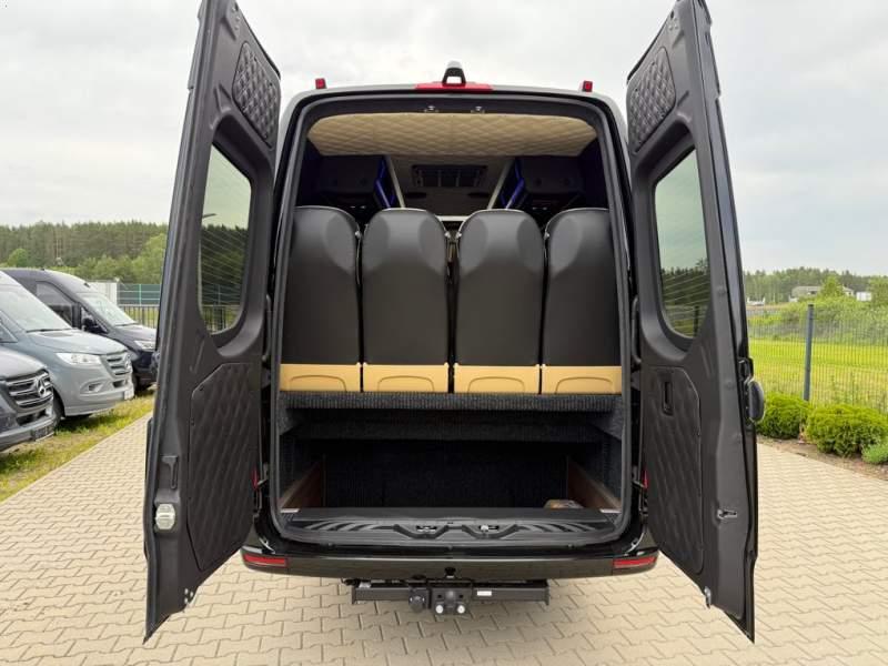 Fabrycznie nowy autobus Autobus dostępny od zaraz ! Nr. oferty: 644 Mercedes-Benz Elegantbus Sprinter 519 EURO VI E GSR II 22+1+1 miejsc siedzących z możliwością szybkiej zmiany na 19+1+1 miejsc siedzących i zwiększenia przestrzeni bagażowej ! Wersja XXXL o długości 7, 87 m Pojemność: 1950 cm3 Pakiet stylistyczny Moc: 190 KM Rok produkcji: 2025 Kolor: Czarny PODSTAWOWE I DODATKOWE WYPOSAŻENIE BAZOWE – ABS, SRS, ESP – Wspomaganie kierownicy – Automatyczna 9 stopniowa skrzynia biegów – Centralny zamek, immobiliser – Reflektory przednie w technologii LED – Tylne lampy częściowo w technologii LED – Asystent utrzymania pasa ruchu – Tempo 100 km/h – Elektryczne szyby – Sensor świateł oraz deszczu – Tempomat – Kierownica wielofunkcyjna, trójramienna – Stabilizacja poziom II – Wzmocnione opony 205/75/R16C – Dogrzewacz elektryczny PTC – Klimatyzacja półautomatyczna TEMPTRONIC – Fotel kierowcy komfortowy z podłokietnikiem – Światła z funkcją świateł do jazdy dziennej – Lusterko wsteczne – Asystent pasa ruchu – Zamykany schowek na kokpicie – Akumulator AGM 12V 95 Ah – Lusterko wsteczne wewnętrzne – Zbiornik paliwa powiększony: 93 litry – Chlapacze przednie – Chlapacze tylnie FOTELE PRZEDZIAŁU PASAŻERSKIEGO – Komfortowe turystyczne fotele przedziału pasażerskiego (regulacja oparcia oraz przesuw boczny) – Fotele posiadają pasy bezpieczeństwa, podłokietniki, siateczki, stoliki, rączki, komfortowe zagłówki, – Fotele montowane na podestach – Fotel pilota na słupku B PRZESZKLENIE POJAZDU – Szyby podwójne, przyciemniane fabrycznie – Firanki przeciwsłoneczne na prowadnicach – Szyby drzwi elektrycznych podgrzewane SYSTEMY GRZEWCZE – Grzejniki konwektorowe wodne zainstalowane w przedziale pasażerskim po lewej i prawej stronie – Postojowe ogrzewanie wodne, oryginalne EBERSCHPRECHER 5 kW KLIMATYZACJA – Automatyczna Klimatyzacja dachowa WEBASTO 12, 5 kW OŚWIETLENIE – Oświetlenie indywidualne – Oświetlenie postojowe – Oświetlenie nocne – Podświetlane stopnie wejściowe – Podesty z podświetleniem LED – Lampy obrysowe dachowe LED MULTIMEDIA – System multimedialny MBUX 10, 5 cala – Oryginalna Kamera Cofania – Mikrofon – Nagłośnienie przestrzeni pasażerskiej PIONNER – Gniazda USB dla każdego rzędu siedzeń – Przetwornica 230v PRZECHOWYWANIE BAGAŻU I UBRAŃ – Turystyczne półki bagażowe – Lodówka o pojemności 40 litrów – Pogłębiony tylny bagażnik – Wieszaki ubraniowe ELEMENTY BEZPIECZEŃSTWA – Podłoga antypoślizgowa PCV, odporna na ścieranie, wodoodporna – Szyberdach wentylacyjny / wyjście awaryjne – Młotki bezpieczeństwa – Dodatkowa gaśnica 2 kg ELEMENTY FUNKCJONALNE – Elektryczne drzwi wejściowe sterowane z przycisku i pilota – Podwójny stopień wejściowy oświetlony LED – Przedłużenie pojazdu w tylnej części – Hak holowniczy LIFTING ZEWNĘTRZNY – Lakierowane zderzaki, listwy, klamki, lusterka i grill w kolorze pojazdu – Spojlery dolne w kolorze nadwozia Sprzedający: