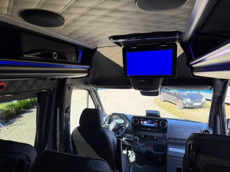 Fabrycznie nowy autobus Autobus dostępny od zaraz ! Nr. oferty: 187 Mercedes-Benz Elegantbus Sprinter 519 EURO VI E GSR II 22+1+1 miejsc siedzących z możliwością szybkiej zmiany na 19+1+1 miejsc siedzących i zwiększenia przestrzeni bagażowej ! Full Panorama Relingi dachowe Wersja XXXL o długości 7, 87 m Pojemność: 1950 cm3 Pakiet stylistyczny Moc: 190 KM Rok produkcji: 2025 Kolor: Srebrny Metalik PODSTAWOWE I DODATKOWE WYPOSAŻENIE BAZOWE – ABS, SRS, ESP – Wspomaganie kierownicy – Automatyczna 9 stopniowa skrzynia biegów – Centralny zamek, immobiliser – Reflektory przednie w technologii LED – Tylne lampy częściowo w technologii LED – Asystent utrzymania pasa ruchu – Tempo 100 km/h – Elektryczne szyby – Sensor świateł oraz deszczu – Tempomat – Kierownica wielofunkcyjna, trójramienna – Stabilizacja poziom II – Wzmocnione opony 205/75/R16C – Dogrzewacz elektryczny PTC – Klimatyzacja półautomatyczna TEMPTRONIC – Fotel kierowcy komfortowy z podłokietnikiem – Światła z funkcją świateł do jazdy dziennej – Lusterko wsteczne – Asystent pasa ruchu – Zamykany schowek na kokpicie – Akumulator AGM 12V 95 Ah – Lusterko wsteczne wewnętrzne – Zbiornik paliwa powiększony: 93 litry – Chlapacze przednie – Chlapacze tylnie FOTELE PRZEDZIAŁU PASAŻERSKIEGO – Komfortowe turystyczne fotele przedziału pasażerskiego (regulacja oparcia oraz przesuw boczny) w kolorze jasno brązowym – Fotele posiadają pasy bezpieczeństwa, podłokietniki, siateczki, stoliki, rączki, komfortowe zagłówki, – Fotele montowane na podestach – Fotel pilota na słupku B PRZESZKLENIE POJAZDU – Szyby podwójne, przyciemniane fabrycznie – Firanki przeciwsłoneczne na prowadnicach – Szyby drzwi elektrycznych podgrzewane SYSTEMY GRZEWCZE – Grzejniki konwektorowe wodne zainstalowane w przedziale pasażerskim po lewej i prawej stronie – Postojowe ogrzewanie wodne, oryginalne EBERSCHPRECHER 5 kW KLIMATYZACJA – Automatyczna Klimatyzacja dachowa WEBASTO 12, 5 kW OŚWIETLENIE – Oświetlenie indywidualne – Oświetlenie postojowe – Oświetlenie nocne – Podświetlane stopnie wejściowe – Podesty z podświetleniem LED – Lampy obrysowe dachowe LED MULTIMEDIA – System multimedialny MBUX 10, 5 cala – Oryginalna Kamera Cofania – Mikrofon – Nagłośnienie przestrzeni pasażerskiej PIONNER – Gniazda USB dla każdego rzędu siedzeń – Przetwornica 230v PRZECHOWYWANIE BAGAŻU I UBRAŃ – Turystyczne półki bagażowe – Lodówka o pojemności 40 litrów – Pogłębiony tylny bagażnik – Wieszaki ubraniowe ELEMENTY BEZPIECZEŃSTWA – Podłoga antypoślizgowa PCV, odporna na ścieranie, wodoodporna – Szyberdach wentylacyjny / wyjście awaryjne – Młotki bezpieczeństwa – Dodatkowa gaśnica 2 kg ELEMENTY FUNKCJONALNE – Elektryczne drzwi wejściowe sterowane z przycisku i pilota – Podwójny stopień wejściowy oświetlony LED – Przedłużenie pojazdu w tylnej części – Hak holowniczy LIFTING ZEWNĘTRZNY – Lakierowane zderzaki, listwy, klamki, lusterka i grill w kolorze pojazdu – Spojlery dolne w kolorze nadwozia Sprzedający: