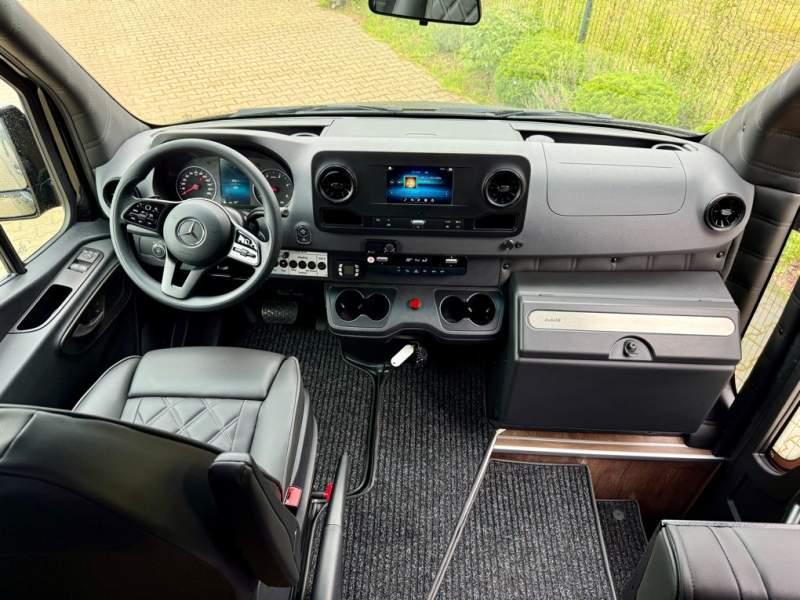 Fabrycznie nowy autobus Autobus dostępny od ręki ! Nr. oferty: 642 Mercedes-Benz Elegantbus Sprinter 519 EURO VI E 22+1+1 miejsc siedzących (Fotele zamontowane w szynach, możliwość zmiany na 19+1+1 miejsc i zwiększenie przestrzeni bagażowej) Wersja XXXL o długości 7, 87 m Pojemność: 1950 cm3 Pakiet stylistyczny Moc: 190 KM Rok produkcji: 2025 PODSTAWOWE I DODATKOWE WYPOSAŻENIE BAZOWE – ABS, SRS, ESP – Automatyczna 9 stopniowa skrzynia biegów – Reflektory przednie w technologii LED – Automatyczna zmiany świateł mijania - drogowe – Tylne lampy w technologii LED – Asystent utrzymania pasa ruchu – Tempo 100 km/h – Sensor świateł oraz deszczu – Tempomat – Kierownica wielofunkcyjna, trójramienna – Klimatyzacja dla kierowcy – Fotel kierowcy komfortowy z podłokietnikiem – Lusterko wsteczne – Asystent pasa ruchu FOTELE PRZEDZIAŁU PASAŻERSKIEGO – Komfortowe turystyczne fotele przedziału pasażerskiego (regulacja oparcia oraz przesuw boczny) – Fotele posiadają pasy bezpieczeństwa, podłokietniki, siateczki, stoliki, rączki, komfortowe zagłówki, – Fotele montowane na podestach – Fotel pilota na słupku B PRZESZKLENIE POJAZDU – Szyby podwójne, przyciemniane fabrycznie – Firanki przeciwsłoneczne na prowadnicach SYSTEMY GRZEWCZE – Konwektory grzewcze po lewej i prawej stronie – Ogrzewanie niezależne od pracy sinika mocy 5 kW z rozprowadzeniem KLIMATYZACJA – Automatyczna klimatyzacja dachowa o dużej wydajności 12, 5 KW OŚWIETLENIE – Oświetlenie indywidualne – Oświetlenie postojowe – Oświetlenie nocne – Podświetlane stopnie wejściowe – Podesty z podświetleniem LED – Lampy obrysowe dachowe MULTIMEDIA – System multimedialny MBUX 7, 5 ' – System Apple Car Play oraz Android Auto – Monitor podsufitowy 17 ' – Kamera Cofania – Mikrofon dynamiczny z potencjometrem – Nagłośnienie przestrzeni pasażerskiej PIONNER – Gniazda USB oraz USB C dla każdego rzędu siedzeń – Przetwornica 230v PRZECHOWYWANIE BAGAŻU I UBRAŃ – Turystyczne półki bagażowe – Pogłębiony tylny bagażnik – Wieszaki ubraniowe ELEMENTY BEZPIECZEŃSTWA – Podłoga antypoślizgowa PCV, odporna na ścieranie, wodoodporna – Szyberdach wentylacyjny / wyjście awaryjne – Młotki bezpieczeństwa – Dodatkowa gaśnica 2 kg ELEMENTY FUNKCJONALNE – Drzwi wejściowe elektryczne – Podwójny stopień wejściowy oświetlony LED – Przedłużenie pojazdu w tylnej części – Hak holowniczy z instalacją elektryczną – Lodówka 40 l LIFTING ZEWNĘTRZNY – Lakierowane zderzaki, listwy, klamki, lusterka i grill w kolorze pojazdu – Wszystkie dokładki lakierowane w kolor nadwozia Sprzedający: