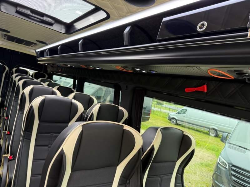 Fabrycznie nowy autobus Autobus dostępny od zaraz ! Nr. oferty: 644 Mercedes-Benz Elegantbus Sprinter 519 EURO VI E GSR II 22+1+1 miejsc siedzących z możliwością szybkiej zmiany na 19+1+1 miejsc siedzących i zwiększenia przestrzeni bagażowej ! Wersja XXXL o długości 7, 87 m Pojemność: 1950 cm3 Pakiet stylistyczny Moc: 190 KM Rok produkcji: 2025 Kolor: Czarny PODSTAWOWE I DODATKOWE WYPOSAŻENIE BAZOWE – ABS, SRS, ESP – Wspomaganie kierownicy – Automatyczna 9 stopniowa skrzynia biegów – Centralny zamek, immobiliser – Reflektory przednie w technologii LED – Tylne lampy częściowo w technologii LED – Asystent utrzymania pasa ruchu – Tempo 100 km/h – Elektryczne szyby – Sensor świateł oraz deszczu – Tempomat – Kierownica wielofunkcyjna, trójramienna – Stabilizacja poziom II – Wzmocnione opony 205/75/R16C – Dogrzewacz elektryczny PTC – Klimatyzacja półautomatyczna TEMPTRONIC – Fotel kierowcy komfortowy z podłokietnikiem – Światła z funkcją świateł do jazdy dziennej – Lusterko wsteczne – Asystent pasa ruchu – Zamykany schowek na kokpicie – Akumulator AGM 12V 95 Ah – Lusterko wsteczne wewnętrzne – Zbiornik paliwa powiększony: 93 litry – Chlapacze przednie – Chlapacze tylnie FOTELE PRZEDZIAŁU PASAŻERSKIEGO – Komfortowe turystyczne fotele przedziału pasażerskiego (regulacja oparcia oraz przesuw boczny) – Fotele posiadają pasy bezpieczeństwa, podłokietniki, siateczki, stoliki, rączki, komfortowe zagłówki, – Fotele montowane na podestach – Fotel pilota na słupku B PRZESZKLENIE POJAZDU – Szyby podwójne, przyciemniane fabrycznie – Firanki przeciwsłoneczne na prowadnicach – Szyby drzwi elektrycznych podgrzewane SYSTEMY GRZEWCZE – Grzejniki konwektorowe wodne zainstalowane w przedziale pasażerskim po lewej i prawej stronie – Postojowe ogrzewanie wodne, oryginalne EBERSCHPRECHER 5 kW KLIMATYZACJA – Automatyczna Klimatyzacja dachowa WEBASTO 12, 5 kW OŚWIETLENIE – Oświetlenie indywidualne – Oświetlenie postojowe – Oświetlenie nocne – Podświetlane stopnie wejściowe – Podesty z podświetleniem LED – Lampy obrysowe dachowe LED MULTIMEDIA – System multimedialny MBUX 10, 5 cala – Oryginalna Kamera Cofania – Mikrofon – Nagłośnienie przestrzeni pasażerskiej PIONNER – Gniazda USB dla każdego rzędu siedzeń – Przetwornica 230v PRZECHOWYWANIE BAGAŻU I UBRAŃ – Turystyczne półki bagażowe – Lodówka o pojemności 40 litrów – Pogłębiony tylny bagażnik – Wieszaki ubraniowe ELEMENTY BEZPIECZEŃSTWA – Podłoga antypoślizgowa PCV, odporna na ścieranie, wodoodporna – Szyberdach wentylacyjny / wyjście awaryjne – Młotki bezpieczeństwa – Dodatkowa gaśnica 2 kg ELEMENTY FUNKCJONALNE – Elektryczne drzwi wejściowe sterowane z przycisku i pilota – Podwójny stopień wejściowy oświetlony LED – Przedłużenie pojazdu w tylnej części – Hak holowniczy LIFTING ZEWNĘTRZNY – Lakierowane zderzaki, listwy, klamki, lusterka i grill w kolorze pojazdu – Spojlery dolne w kolorze nadwozia Sprzedający: