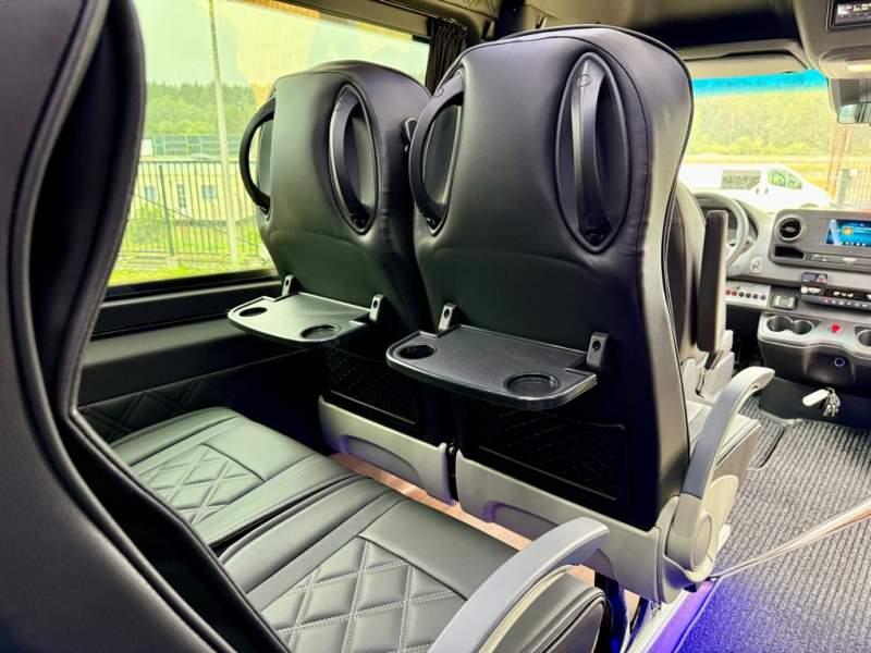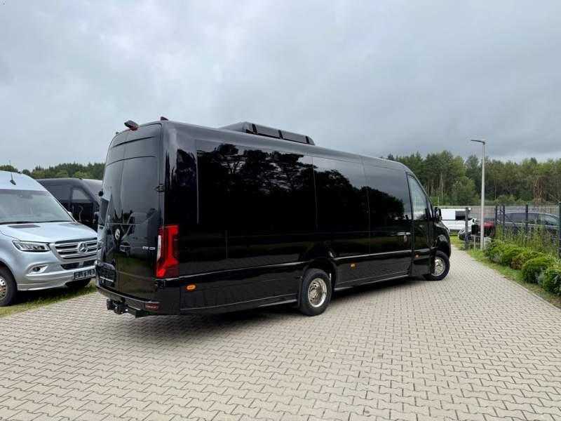 Fabrycznie nowy autobus Autobus dostępny od ręki ! Nr. oferty: 642 Mercedes-Benz Elegantbus Sprinter 519 EURO VI E 22+1+1 miejsc siedzących (Fotele zamontowane w szynach, możliwość zmiany na 19+1+1 miejsc i zwiększenie przestrzeni bagażowej) Wersja XXXL o długości 7, 87 m Pojemność: 1950 cm3 Pakiet stylistyczny Moc: 190 KM Rok produkcji: 2025 PODSTAWOWE I DODATKOWE WYPOSAŻENIE BAZOWE – ABS, SRS, ESP – Automatyczna 9 stopniowa skrzynia biegów – Reflektory przednie w technologii LED – Automatyczna zmiany świateł mijania - drogowe – Tylne lampy w technologii LED – Asystent utrzymania pasa ruchu – Tempo 100 km/h – Sensor świateł oraz deszczu – Tempomat – Kierownica wielofunkcyjna, trójramienna – Klimatyzacja dla kierowcy – Fotel kierowcy komfortowy z podłokietnikiem – Lusterko wsteczne – Asystent pasa ruchu FOTELE PRZEDZIAŁU PASAŻERSKIEGO – Komfortowe turystyczne fotele przedziału pasażerskiego (regulacja oparcia oraz przesuw boczny) – Fotele posiadają pasy bezpieczeństwa, podłokietniki, siateczki, stoliki, rączki, komfortowe zagłówki, – Fotele montowane na podestach – Fotel pilota na słupku B PRZESZKLENIE POJAZDU – Szyby podwójne, przyciemniane fabrycznie – Firanki przeciwsłoneczne na prowadnicach SYSTEMY GRZEWCZE – Konwektory grzewcze po lewej i prawej stronie – Ogrzewanie niezależne od pracy sinika mocy 5 kW z rozprowadzeniem KLIMATYZACJA – Automatyczna klimatyzacja dachowa o dużej wydajności 12, 5 KW OŚWIETLENIE – Oświetlenie indywidualne – Oświetlenie postojowe – Oświetlenie nocne – Podświetlane stopnie wejściowe – Podesty z podświetleniem LED – Lampy obrysowe dachowe MULTIMEDIA – System multimedialny MBUX 7, 5 ' – System Apple Car Play oraz Android Auto – Monitor podsufitowy 17 ' – Kamera Cofania – Mikrofon dynamiczny z potencjometrem – Nagłośnienie przestrzeni pasażerskiej PIONNER – Gniazda USB oraz USB C dla każdego rzędu siedzeń – Przetwornica 230v PRZECHOWYWANIE BAGAŻU I UBRAŃ – Turystyczne półki bagażowe – Pogłębiony tylny bagażnik – Wieszaki ubraniowe ELEMENTY BEZPIECZEŃSTWA – Podłoga antypoślizgowa PCV, odporna na ścieranie, wodoodporna – Szyberdach wentylacyjny / wyjście awaryjne – Młotki bezpieczeństwa – Dodatkowa gaśnica 2 kg ELEMENTY FUNKCJONALNE – Drzwi wejściowe elektryczne – Podwójny stopień wejściowy oświetlony LED – Przedłużenie pojazdu w tylnej części – Hak holowniczy z instalacją elektryczną – Lodówka 40 l LIFTING ZEWNĘTRZNY – Lakierowane zderzaki, listwy, klamki, lusterka i grill w kolorze pojazdu – Wszystkie dokładki lakierowane w kolor nadwozia Sprzedający:
