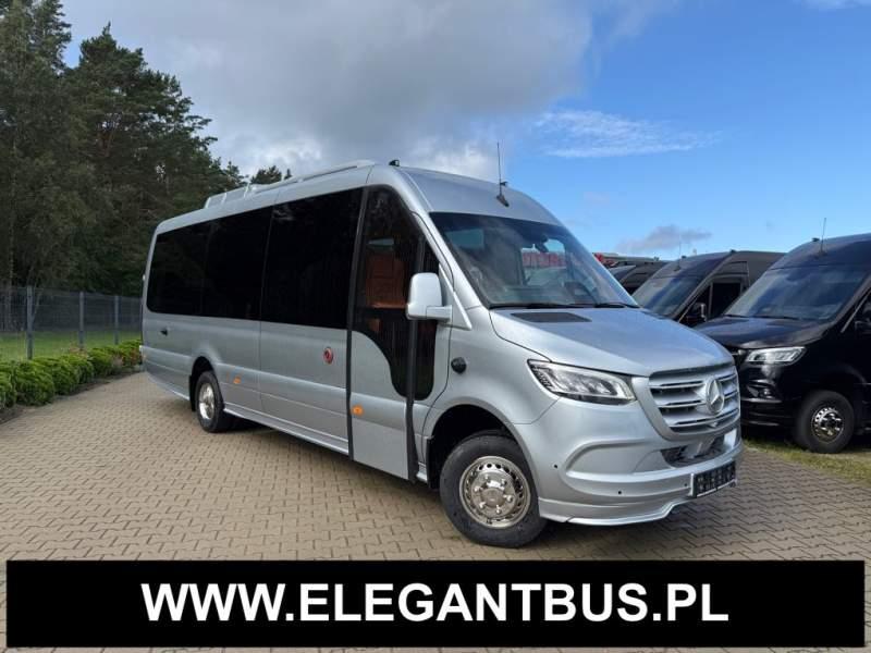 Fabrycznie nowy autobus Autobus dostępny od zaraz ! Nr. oferty: 187 Mercedes-Benz Elegantbus Sprinter 519 EURO VI E GSR II 22+1+1 miejsc siedzących z możliwością szybkiej zmiany na 19+1+1 miejsc siedzących i zwiększenia przestrzeni bagażowej ! Full Panorama Relingi dachowe Wersja XXXL o długości 7, 87 m Pojemność: 1950 cm3 Pakiet stylistyczny Moc: 190 KM Rok produkcji: 2025 Kolor: Srebrny Metalik PODSTAWOWE I DODATKOWE WYPOSAŻENIE BAZOWE – ABS, SRS, ESP – Wspomaganie kierownicy – Automatyczna 9 stopniowa skrzynia biegów – Centralny zamek, immobiliser – Reflektory przednie w technologii LED – Tylne lampy częściowo w technologii LED – Asystent utrzymania pasa ruchu – Tempo 100 km/h – Elektryczne szyby – Sensor świateł oraz deszczu – Tempomat – Kierownica wielofunkcyjna, trójramienna – Stabilizacja poziom II – Wzmocnione opony 205/75/R16C – Dogrzewacz elektryczny PTC – Klimatyzacja półautomatyczna TEMPTRONIC – Fotel kierowcy komfortowy z podłokietnikiem – Światła z funkcją świateł do jazdy dziennej – Lusterko wsteczne – Asystent pasa ruchu – Zamykany schowek na kokpicie – Akumulator AGM 12V 95 Ah – Lusterko wsteczne wewnętrzne – Zbiornik paliwa powiększony: 93 litry – Chlapacze przednie – Chlapacze tylnie FOTELE PRZEDZIAŁU PASAŻERSKIEGO – Komfortowe turystyczne fotele przedziału pasażerskiego (regulacja oparcia oraz przesuw boczny) w kolorze jasno brązowym – Fotele posiadają pasy bezpieczeństwa, podłokietniki, siateczki, stoliki, rączki, komfortowe zagłówki, – Fotele montowane na podestach – Fotel pilota na słupku B PRZESZKLENIE POJAZDU – Szyby podwójne, przyciemniane fabrycznie – Firanki przeciwsłoneczne na prowadnicach – Szyby drzwi elektrycznych podgrzewane SYSTEMY GRZEWCZE – Grzejniki konwektorowe wodne zainstalowane w przedziale pasażerskim po lewej i prawej stronie – Postojowe ogrzewanie wodne, oryginalne EBERSCHPRECHER 5 kW KLIMATYZACJA – Automatyczna Klimatyzacja dachowa WEBASTO 12, 5 kW OŚWIETLENIE – Oświetlenie indywidualne – Oświetlenie postojowe – Oświetlenie nocne – Podświetlane stopnie wejściowe – Podesty z podświetleniem LED – Lampy obrysowe dachowe LED MULTIMEDIA – System multimedialny MBUX 10, 5 cala – Oryginalna Kamera Cofania – Mikrofon – Nagłośnienie przestrzeni pasażerskiej PIONNER – Gniazda USB dla każdego rzędu siedzeń – Przetwornica 230v PRZECHOWYWANIE BAGAŻU I UBRAŃ – Turystyczne półki bagażowe – Lodówka o pojemności 40 litrów – Pogłębiony tylny bagażnik – Wieszaki ubraniowe ELEMENTY BEZPIECZEŃSTWA – Podłoga antypoślizgowa PCV, odporna na ścieranie, wodoodporna – Szyberdach wentylacyjny / wyjście awaryjne – Młotki bezpieczeństwa – Dodatkowa gaśnica 2 kg ELEMENTY FUNKCJONALNE – Elektryczne drzwi wejściowe sterowane z przycisku i pilota – Podwójny stopień wejściowy oświetlony LED – Przedłużenie pojazdu w tylnej części – Hak holowniczy LIFTING ZEWNĘTRZNY – Lakierowane zderzaki, listwy, klamki, lusterka i grill w kolorze pojazdu – Spojlery dolne w kolorze nadwozia Sprzedający: