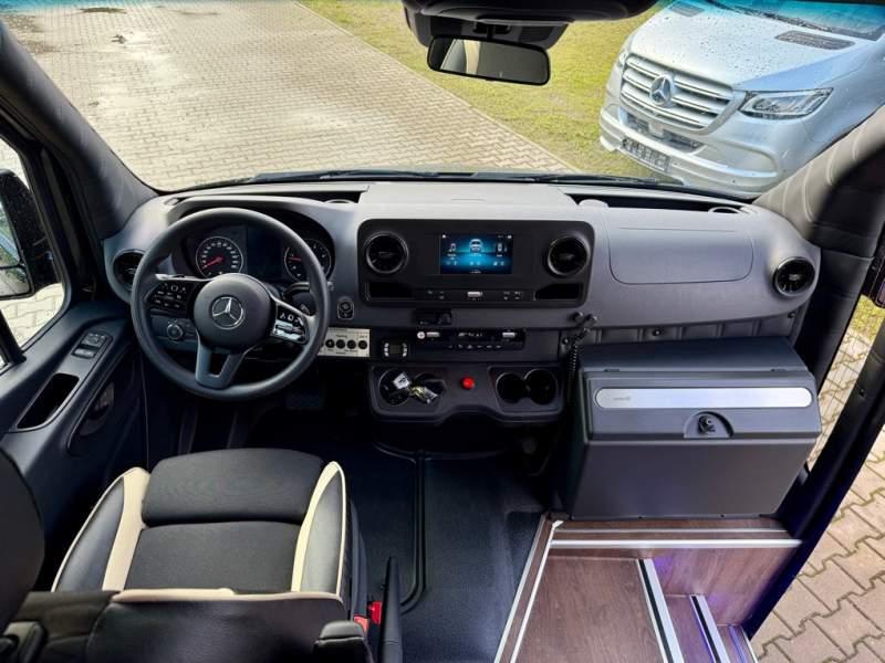 Fabrycznie nowy autobus Autobus dostępny od ręki ! Nr. oferty: 100 Mercedes-Benz Elegantbus Sprinter 519 EURO VI E 22+1+1 miejsc siedzących (Fotele zamontowane w szynach, możliwość zmiany na 19+1+1 miejsc i zwiększenie przestrzeni bagażowej) Wersja XXXL o długości 7, 87 m Pojemność: 1950 cm3 Pakiet stylistyczny Moc: 190 KM Rok produkcji: 2025 PODSTAWOWE I DODATKOWE WYPOSAŻENIE BAZOWE – ABS, SRS, ESP – Automatyczna 9 stopniowa skrzynia biegów – Reflektory przednie w technologii LED – Automatyczna zmiany świateł mijania - drogowe – Tylne lampy w technologii LED – Asystent utrzymania pasa ruchu – Tempo 100 km/h – Sensor świateł oraz deszczu – Tempomat – Kierownica wielofunkcyjna, trójramienna – Klimatyzacja dla kierowcy – Fotel kierowcy komfortowy z podłokietnikiem – Lusterko wsteczne – Asystent pasa ruchu FOTELE PRZEDZIAŁU PASAŻERSKIEGO – Komfortowe turystyczne fotele przedziału pasażerskiego (regulacja oparcia oraz przesuw boczny) – Fotele posiadają pasy bezpieczeństwa, podłokietniki, siateczki, stoliki, rączki, komfortowe zagłówki, – Fotele montowane na podestach – Fotel pilota na słupku B PRZESZKLENIE POJAZDU – Szyby podwójne, przyciemniane fabrycznie – Firanki przeciwsłoneczne na prowadnicach SYSTEMY GRZEWCZE – Konwektory grzewcze po lewej i prawej stronie – Ogrzewanie niezależne od pracy sinika mocy 5 kW z rozprowadzeniem KLIMATYZACJA – Automatyczna klimatyzacja dachowa o dużej wydajności 12, 5 KW OŚWIETLENIE – Oświetlenie indywidualne – Oświetlenie postojowe – Oświetlenie nocne – Podświetlane stopnie wejściowe – Podesty z podświetleniem LED – Lampy obrysowe dachowe MULTIMEDIA – System multimedialny MBUX 7, 5 ' – System Apple Car Play oraz Android Auto – Monitor podsufitowy 17 ' – Kamera Cofania – Mikrofon dynamiczny z potencjometrem – Nagłośnienie przestrzeni pasażerskiej PIONNER – Gniazda USB oraz USB C dla każdego rzędu siedzeń – Przetwornica 230v PRZECHOWYWANIE BAGAŻU I UBRAŃ – Turystyczne półki bagażowe – Pogłębiony tylny bagażnik – Wieszaki ubraniowe ELEMENTY BEZPIECZEŃSTWA – Podłoga antypoślizgowa PCV, odporna na ścieranie, wodoodporna – Szyberdach wentylacyjny / wyjście awaryjne – Młotki bezpieczeństwa – Dodatkowa gaśnica 2 kg ELEMENTY FUNKCJONALNE – Drzwi wejściowe elektryczne – Podwójny stopień wejściowy oświetlony LED – Przedłużenie pojazdu w tylnej części – Hak holowniczy z instalacją elektryczną – Lodówka 40 l LIFTING ZEWNĘTRZNY – Lakierowane zderzaki, listwy, klamki, lusterka i grill w kolorze pojazdu – Wszystkie dokładki lakierowane w kolor nadwozia Sprzedający: