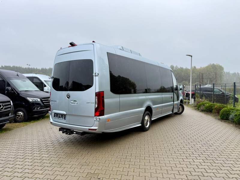 Fabrycznie nowy autobus Autobus dostępny od ręki ! Nr. oferty: 148 Mercedes-Benz Elegantbus Sprinter 519 EURO VI E 22+1+1 miejsc siedzących (Fotele zamontowane w szynach, możliwość zmiany na 19+1+1 miejsc i zwiększenie przestrzeni bagażowej) Wersja XXXL o długości 7, 87 m Pojemność: 1950 cm3 Pakiet stylistyczny Moc: 190 KM Rok produkcji: 2025 PODSTAWOWE I DODATKOWE WYPOSAŻENIE BAZOWE – ABS, SRS, ESP – Automatyczna 9 stopniowa skrzynia biegów – Reflektory przednie w technologii LED – Automatyczna zmiany świateł mijania - drogowe – Tylne lampy w technologii LED – Asystent utrzymania pasa ruchu – Tempo 100 km/h – Sensor świateł oraz deszczu – Tempomat – Kierownica wielofunkcyjna, trójramienna – Klimatyzacja dla kierowcy – Fotel kierowcy komfortowy z podłokietnikiem – Lusterko wsteczne – Asystent pasa ruchu FOTELE PRZEDZIAŁU PASAŻERSKIEGO – Komfortowe turystyczne fotele przedziału pasażerskiego (regulacja oparcia oraz przesuw boczny) – Fotele posiadają pasy bezpieczeństwa, podłokietniki, siateczki, stoliki, rączki, komfortowe zagłówki, – Fotele montowane na podestach – Fotel pilota na słupku B PRZESZKLENIE POJAZDU – Szyby podwójne, przyciemniane fabrycznie – Firanki przeciwsłoneczne na prowadnicach SYSTEMY GRZEWCZE – Konwektory grzewcze po lewej i prawej stronie – Ogrzewanie niezależne od pracy sinika mocy 5 kW z rozprowadzeniem KLIMATYZACJA – Automatyczna klimatyzacja dachowa o dużej wydajności 12, 5 KW OŚWIETLENIE – Oświetlenie indywidualne – Oświetlenie postojowe – Oświetlenie nocne – Podświetlane stopnie wejściowe – Podesty z podświetleniem LED – Lampy obrysowe dachowe MULTIMEDIA – System multimedialny MBUX 7, 5 ' – System Apple Car Play oraz Android Auto – Monitor podsufitowy 17 ' – Kamera Cofania – Mikrofon dynamiczny z potencjometrem – Nagłośnienie przestrzeni pasażerskiej PIONNER – Gniazda USB oraz USB C dla każdego rzędu siedzeń – Przetwornica 230v PRZECHOWYWANIE BAGAŻU I UBRAŃ – Turystyczne półki bagażowe – Pogłębiony tylny bagażnik – Wieszaki ubraniowe ELEMENTY BEZPIECZEŃSTWA – Podłoga antypoślizgowa PCV, odporna na ścieranie, wodoodporna – Szyberdach wentylacyjny / wyjście awaryjne – Młotki bezpieczeństwa – Dodatkowa gaśnica 2 kg ELEMENTY FUNKCJONALNE – Drzwi wejściowe elektryczne – Podwójny stopień wejściowy oświetlony LED – Przedłużenie pojazdu w tylnej części – Hak holowniczy z instalacją elektryczną – Lodówka 40 l LIFTING ZEWNĘTRZNY – Lakierowane zderzaki, listwy, klamki, lusterka i grill w kolorze pojazdu – Wszystkie dokładki lakierowane w kolor nadwozia Sprzedający: