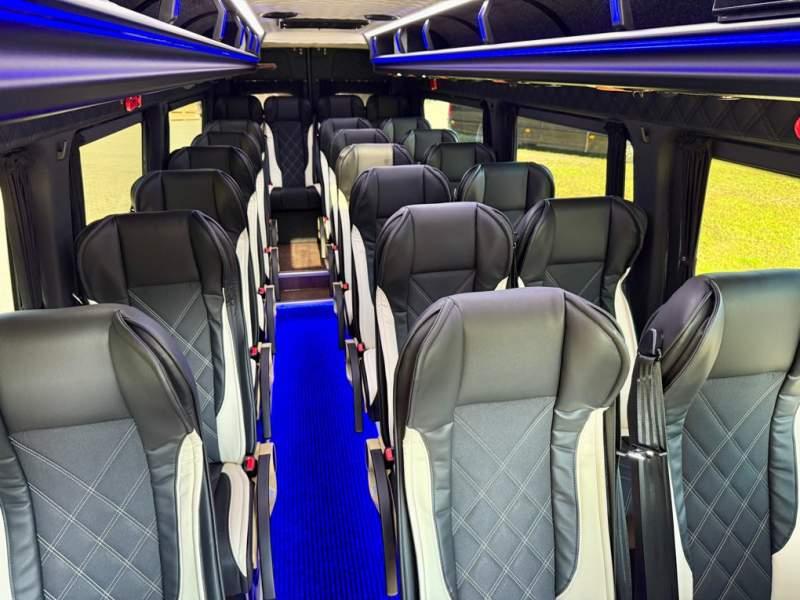 Fabrycznie nowy autobus Autobus dostępny od zaraz ! Nr. Oferty: 730 Mercedes-Benz Elegantbus Sprinter 519 EURO VI E GSR II 22+1+1 miejsc siedzących z możliwością szybkiej zmiany na 19+1+1 miejsc siedzących i zwiększenia przestrzeni bagażowej ! Wersja XXXL o długości 7, 87 m Pojemność: 1950 cm3 Pakiet stylistyczny Moc: 190 KM Rok produkcji: 2025 Kolor: Czarny PODSTAWOWE I DODATKOWE WYPOSAŻENIE BAZOWE – ABS, SRS, ESP – Wspomaganie kierownicy – Automatyczna 9 stopniowa skrzynia biegów – Centralny zamek, immobiliser – Reflektory przednie w technologii LED – Tylne lampy częściowo w technologii LED – Asystent utrzymania pasa ruchu – Tempo 100 km/h – Elektryczne szyby – Sensor świateł oraz deszczu – Tempomat – Kierownica wielofunkcyjna, trójramienna – Stabilizacja poziom II – Wzmocnione opony 205/75/R16C – Dogrzewacz elektryczny PTC – Klimatyzacja półautomatyczna TEMPTRONIC – Fotel kierowcy komfortowy z podłokietnikiem – Światła z funkcją świateł do jazdy dziennej – Lusterko wsteczne – Asystent pasa ruchu – Zamykany schowek na kokpicie – Akumulator AGM 12V 95 Ah – Lusterko wsteczne wewnętrzne – Zbiornik paliwa powiększony: 93 litry – Chlapacze przednie – Chlapacze tylnie FOTELE PRZEDZIAŁU PASAŻERSKIEGO – Komfortowe turystyczne fotele przedziału pasażerskiego (regulacja oparcia oraz przesuw boczny) – Fotele posiadają pasy bezpieczeństwa, podłokietniki, siateczki, stoliki, rączki, komfortowe zagłówki, – Fotele montowane na podestach – Fotel pilota na słupku B PRZESZKLENIE POJAZDU – Szyby podwójne, przyciemniane fabrycznie – Firanki przeciwsłoneczne na prowadnicach – Szyby drzwi elektrycznych podgrzewane SYSTEMY GRZEWCZE – Grzejniki konwektorowe wodne zainstalowane w przedziale pasażerskim po lewej i prawej stronie – Postojowe ogrzewanie wodne, oryginalne EBERSCHPRECHER 5 kW KLIMATYZACJA – Automatyczna Klimatyzacja dachowa WEBASTO 12, 5 kW OŚWIETLENIE – Oświetlenie indywidualne – Oświetlenie postojowe – Oświetlenie nocne – Podświetlane stopnie wejściowe – Podesty z podświetleniem LED – Lampy obrysowe dachowe LED MULTIMEDIA – System multimedialny MBUX 10, 5 cala – Oryginalna Kamera Cofania – Mikrofon – Nagłośnienie przestrzeni pasażerskiej PIONNER – Gniazda USB dla każdego rzędu siedzeń – Przetwornica 230v PRZECHOWYWANIE BAGAŻU I UBRAŃ – Turystyczne półki bagażowe – Lodówka o pojemności 40 litrów – Pogłębiony tylny bagażnik – Wieszaki ubraniowe ELEMENTY BEZPIECZEŃSTWA – Podłoga antypoślizgowa PCV, odporna na ścieranie, wodoodporna – Szyberdach wentylacyjny / wyjście awaryjne – Młotki bezpieczeństwa – Dodatkowa gaśnica 2 kg ELEMENTY FUNKCJONALNE – Elektryczne drzwi wejściowe sterowane z przycisku i pilota – Podwójny stopień wejściowy oświetlony LED – Przedłużenie pojazdu w tylnej części – Hak holowniczy LIFTING ZEWNĘTRZNY – Lakierowane zderzaki, listwy, klamki, lusterka i grill w kolorze pojazdu – Spojlery dolne w kolorze nadwozia Sprzedający: