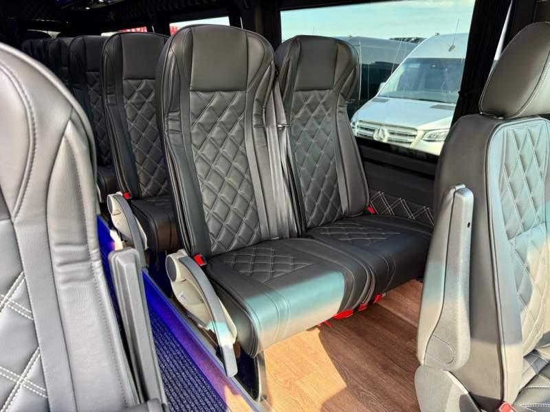 Fabrycznie nowy autobus Autobus dostępny od zaraz ! Nr. Oferty: 731 Mercedes-Benz Elegantbus Sprinter 519 EURO VI E GSR II 22+1+1 miejsc siedzących z możliwością szybkiej zmiany na 19+1+1 miejsc siedzących i zwiększenia przestrzeni bagażowej ! Wersja XXXL o długości 7, 87 m Pojemność: 1950 cm3 Pakiet stylistyczny Moc: 190 KM Rok produkcji: 2025 Kolor: Czarny PODSTAWOWE I DODATKOWE WYPOSAŻENIE BAZOWE – ABS, SRS, ESP – Wspomaganie kierownicy – Automatyczna 9 stopniowa skrzynia biegów – Centralny zamek, immobiliser – Reflektory przednie w technologii LED – Tylne lampy częściowo w technologii LED – Asystent utrzymania pasa ruchu – Tempo 100 km/h – Elektryczne szyby – Sensor świateł oraz deszczu – Tempomat – Kierownica wielofunkcyjna, trójramienna – Stabilizacja poziom II – Wzmocnione opony 205/75/R16C – Dogrzewacz elektryczny PTC – Klimatyzacja półautomatyczna TEMPTRONIC – Fotel kierowcy komfortowy z podłokietnikiem – Światła z funkcją świateł do jazdy dziennej – Lusterko wsteczne – Asystent pasa ruchu – Zamykany schowek na kokpicie – Akumulator AGM 12V 95 Ah – Lusterko wsteczne wewnętrzne – Zbiornik paliwa powiększony: 93 litry – Chlapacze przednie – Chlapacze tylnie FOTELE PRZEDZIAŁU PASAŻERSKIEGO – Komfortowe turystyczne fotele przedziału pasażerskiego (regulacja oparcia oraz przesuw boczny) – Fotele posiadają pasy bezpieczeństwa, podłokietniki, siateczki, stoliki, rączki, komfortowe zagłówki, – Fotele montowane na podestach – Fotel pilota na słupku B PRZESZKLENIE POJAZDU – Szyby podwójne, przyciemniane fabrycznie – Firanki przeciwsłoneczne na prowadnicach – Szyby drzwi elektrycznych podgrzewane SYSTEMY GRZEWCZE – Grzejniki konwektorowe wodne zainstalowane w przedziale pasażerskim po lewej i prawej stronie – Postojowe ogrzewanie wodne, oryginalne EBERSCHPRECHER 5 kW KLIMATYZACJA – Automatyczna Klimatyzacja dachowa WEBASTO 12, 5 kW OŚWIETLENIE – Oświetlenie indywidualne – Oświetlenie postojowe – Oświetlenie nocne – Podświetlane stopnie wejściowe – Podesty z podświetleniem LED – Lampy obrysowe dachowe LED MULTIMEDIA – System multimedialny MBUX 10, 5 cala – Oryginalna Kamera Cofania – Mikrofon – Nagłośnienie przestrzeni pasażerskiej PIONNER – Gniazda USB dla każdego rzędu siedzeń – Przetwornica 230v PRZECHOWYWANIE BAGAŻU I UBRAŃ – Turystyczne półki bagażowe – Lodówka o pojemności 40 litrów – Pogłębiony tylny bagażnik – Wieszaki ubraniowe ELEMENTY BEZPIECZEŃSTWA – Podłoga antypoślizgowa PCV, odporna na ścieranie, wodoodporna – Szyberdach wentylacyjny / wyjście awaryjne – Młotki bezpieczeństwa – Dodatkowa gaśnica 2 kg ELEMENTY FUNKCJONALNE – Elektryczne drzwi wejściowe sterowane z przycisku i pilota – Podwójny stopień wejściowy oświetlony LED – Przedłużenie pojazdu w tylnej części – Hak holowniczy LIFTING ZEWNĘTRZNY – Lakierowane zderzaki, listwy, klamki, lusterka i grill w kolorze pojazdu – Spojlery dolne w kolorze nadwozia Sprzedający:
