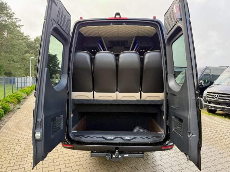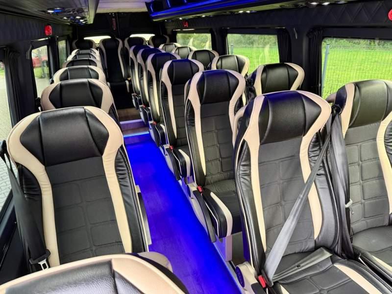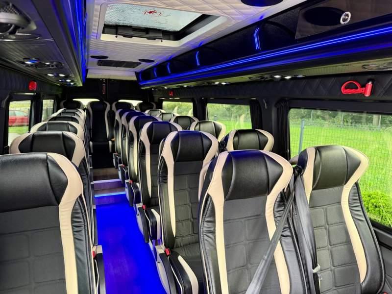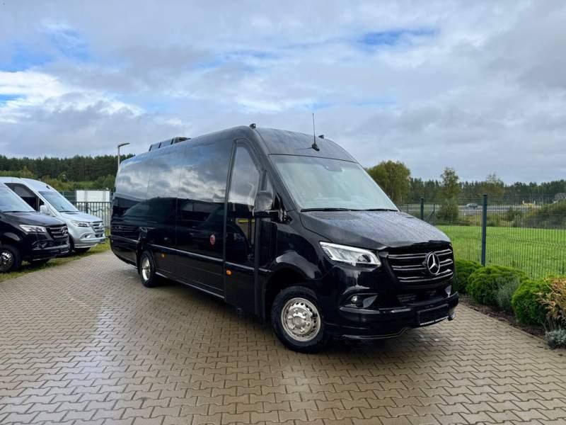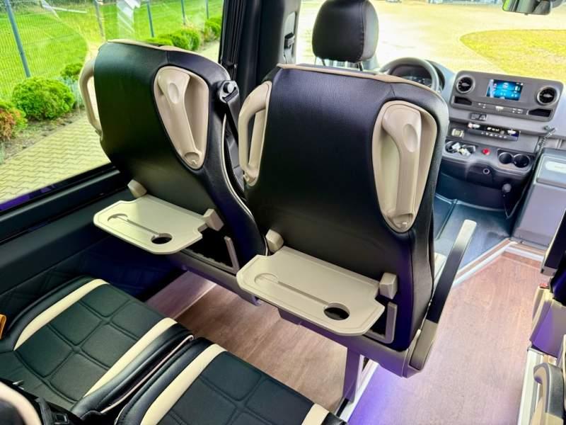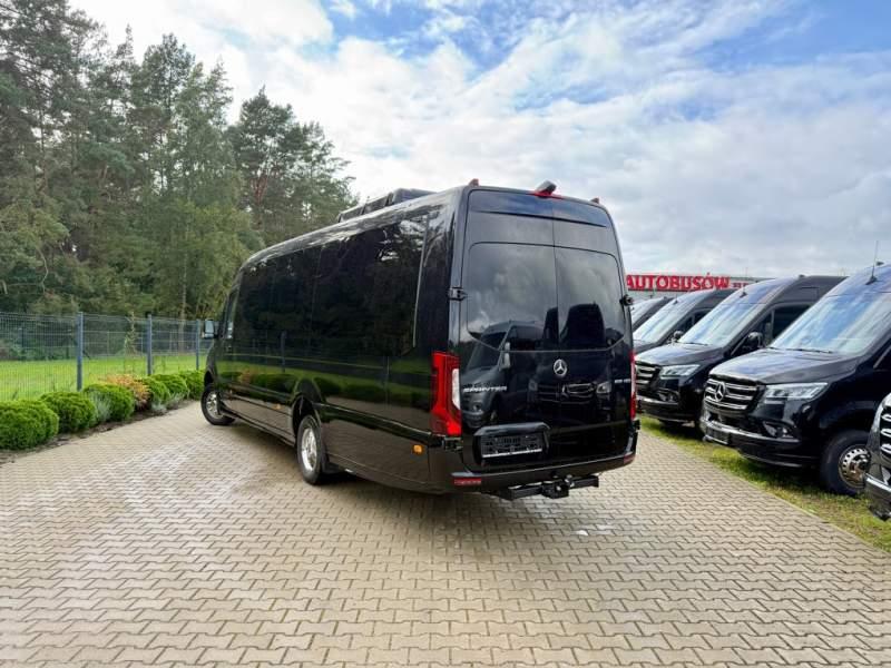 Fabrycznie nowy autobus Autobus dostępny od ręki ! Nr. oferty: 100 Mercedes-Benz Elegantbus Sprinter 519 EURO VI E 22+1+1 miejsc siedzących (Fotele zamontowane w szynach, możliwość zmiany na 19+1+1 miejsc i zwiększenie przestrzeni bagażowej) Wersja XXXL o długości 7, 87 m Pojemność: 1950 cm3 Pakiet stylistyczny Moc: 190 KM Rok produkcji: 2025 PODSTAWOWE I DODATKOWE WYPOSAŻENIE BAZOWE – ABS, SRS, ESP – Automatyczna 9 stopniowa skrzynia biegów – Reflektory przednie w technologii LED – Automatyczna zmiany świateł mijania - drogowe – Tylne lampy w technologii LED – Asystent utrzymania pasa ruchu – Tempo 100 km/h – Sensor świateł oraz deszczu – Tempomat – Kierownica wielofunkcyjna, trójramienna – Klimatyzacja dla kierowcy – Fotel kierowcy komfortowy z podłokietnikiem – Lusterko wsteczne – Asystent pasa ruchu FOTELE PRZEDZIAŁU PASAŻERSKIEGO – Komfortowe turystyczne fotele przedziału pasażerskiego (regulacja oparcia oraz przesuw boczny) – Fotele posiadają pasy bezpieczeństwa, podłokietniki, siateczki, stoliki, rączki, komfortowe zagłówki, – Fotele montowane na podestach – Fotel pilota na słupku B PRZESZKLENIE POJAZDU – Szyby podwójne, przyciemniane fabrycznie – Firanki przeciwsłoneczne na prowadnicach SYSTEMY GRZEWCZE – Konwektory grzewcze po lewej i prawej stronie – Ogrzewanie niezależne od pracy sinika mocy 5 kW z rozprowadzeniem KLIMATYZACJA – Automatyczna klimatyzacja dachowa o dużej wydajności 12, 5 KW OŚWIETLENIE – Oświetlenie indywidualne – Oświetlenie postojowe – Oświetlenie nocne – Podświetlane stopnie wejściowe – Podesty z podświetleniem LED – Lampy obrysowe dachowe MULTIMEDIA – System multimedialny MBUX 7, 5 ' – System Apple Car Play oraz Android Auto – Monitor podsufitowy 17 ' – Kamera Cofania – Mikrofon dynamiczny z potencjometrem – Nagłośnienie przestrzeni pasażerskiej PIONNER – Gniazda USB oraz USB C dla każdego rzędu siedzeń – Przetwornica 230v PRZECHOWYWANIE BAGAŻU I UBRAŃ – Turystyczne półki bagażowe – Pogłębiony tylny bagażnik – Wieszaki ubraniowe ELEMENTY BEZPIECZEŃSTWA – Podłoga antypoślizgowa PCV, odporna na ścieranie, wodoodporna – Szyberdach wentylacyjny / wyjście awaryjne – Młotki bezpieczeństwa – Dodatkowa gaśnica 2 kg ELEMENTY FUNKCJONALNE – Drzwi wejściowe elektryczne – Podwójny stopień wejściowy oświetlony LED – Przedłużenie pojazdu w tylnej części – Hak holowniczy z instalacją elektryczną – Lodówka 40 l LIFTING ZEWNĘTRZNY – Lakierowane zderzaki, listwy, klamki, lusterka i grill w kolorze pojazdu – Wszystkie dokładki lakierowane w kolor nadwozia Sprzedający:
