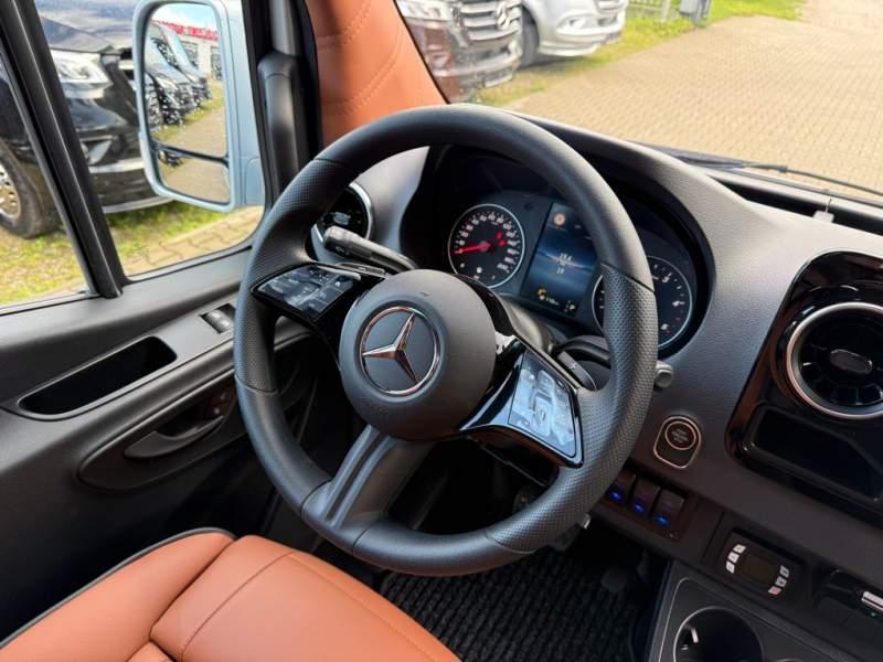 Fabrycznie nowy autobus Autobus dostępny od zaraz ! Nr. oferty: 187 Mercedes-Benz Elegantbus Sprinter 519 EURO VI E GSR II 22+1+1 miejsc siedzących z możliwością szybkiej zmiany na 19+1+1 miejsc siedzących i zwiększenia przestrzeni bagażowej ! Full Panorama Relingi dachowe Wersja XXXL o długości 7, 87 m Pojemność: 1950 cm3 Pakiet stylistyczny Moc: 190 KM Rok produkcji: 2025 Kolor: Srebrny Metalik PODSTAWOWE I DODATKOWE WYPOSAŻENIE BAZOWE – ABS, SRS, ESP – Wspomaganie kierownicy – Automatyczna 9 stopniowa skrzynia biegów – Centralny zamek, immobiliser – Reflektory przednie w technologii LED – Tylne lampy częściowo w technologii LED – Asystent utrzymania pasa ruchu – Tempo 100 km/h – Elektryczne szyby – Sensor świateł oraz deszczu – Tempomat – Kierownica wielofunkcyjna, trójramienna – Stabilizacja poziom II – Wzmocnione opony 205/75/R16C – Dogrzewacz elektryczny PTC – Klimatyzacja półautomatyczna TEMPTRONIC – Fotel kierowcy komfortowy z podłokietnikiem – Światła z funkcją świateł do jazdy dziennej – Lusterko wsteczne – Asystent pasa ruchu – Zamykany schowek na kokpicie – Akumulator AGM 12V 95 Ah – Lusterko wsteczne wewnętrzne – Zbiornik paliwa powiększony: 93 litry – Chlapacze przednie – Chlapacze tylnie FOTELE PRZEDZIAŁU PASAŻERSKIEGO – Komfortowe turystyczne fotele przedziału pasażerskiego (regulacja oparcia oraz przesuw boczny) w kolorze jasno brązowym – Fotele posiadają pasy bezpieczeństwa, podłokietniki, siateczki, stoliki, rączki, komfortowe zagłówki, – Fotele montowane na podestach – Fotel pilota na słupku B PRZESZKLENIE POJAZDU – Szyby podwójne, przyciemniane fabrycznie – Firanki przeciwsłoneczne na prowadnicach – Szyby drzwi elektrycznych podgrzewane SYSTEMY GRZEWCZE – Grzejniki konwektorowe wodne zainstalowane w przedziale pasażerskim po lewej i prawej stronie – Postojowe ogrzewanie wodne, oryginalne EBERSCHPRECHER 5 kW KLIMATYZACJA – Automatyczna Klimatyzacja dachowa WEBASTO 12, 5 kW OŚWIETLENIE – Oświetlenie indywidualne – Oświetlenie postojowe – Oświetlenie nocne – Podświetlane stopnie wejściowe – Podesty z podświetleniem LED – Lampy obrysowe dachowe LED MULTIMEDIA – System multimedialny MBUX 10, 5 cala – Oryginalna Kamera Cofania – Mikrofon – Nagłośnienie przestrzeni pasażerskiej PIONNER – Gniazda USB dla każdego rzędu siedzeń – Przetwornica 230v PRZECHOWYWANIE BAGAŻU I UBRAŃ – Turystyczne półki bagażowe – Lodówka o pojemności 40 litrów – Pogłębiony tylny bagażnik – Wieszaki ubraniowe ELEMENTY BEZPIECZEŃSTWA – Podłoga antypoślizgowa PCV, odporna na ścieranie, wodoodporna – Szyberdach wentylacyjny / wyjście awaryjne – Młotki bezpieczeństwa – Dodatkowa gaśnica 2 kg ELEMENTY FUNKCJONALNE – Elektryczne drzwi wejściowe sterowane z przycisku i pilota – Podwójny stopień wejściowy oświetlony LED – Przedłużenie pojazdu w tylnej części – Hak holowniczy LIFTING ZEWNĘTRZNY – Lakierowane zderzaki, listwy, klamki, lusterka i grill w kolorze pojazdu – Spojlery dolne w kolorze nadwozia Sprzedający: