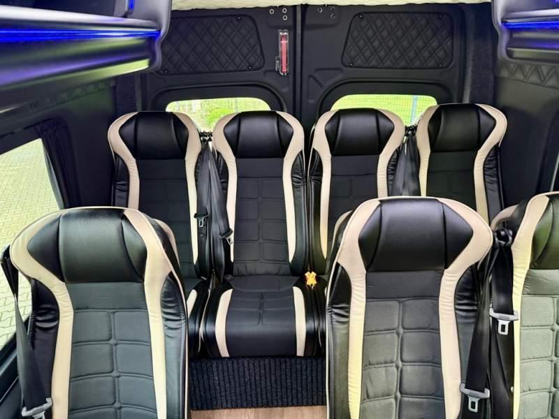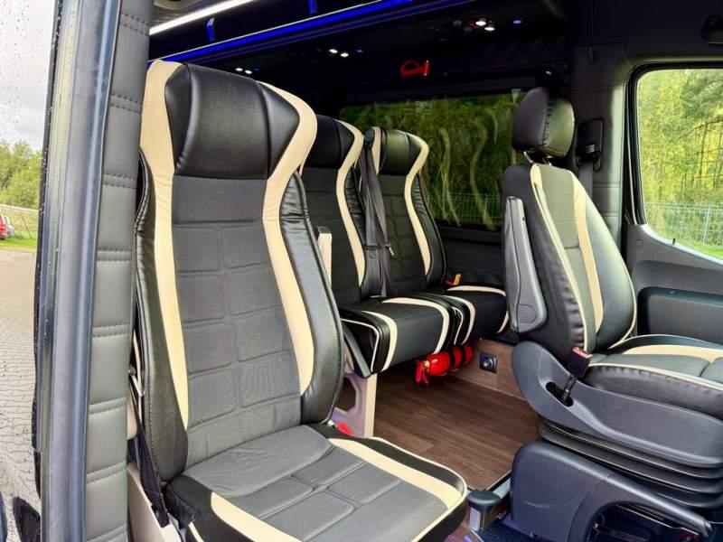 Fabrycznie nowy autobus Autobus dostępny od ręki ! Nr. oferty: 100 Mercedes-Benz Elegantbus Sprinter 519 EURO VI E 22+1+1 miejsc siedzących (Fotele zamontowane w szynach, możliwość zmiany na 19+1+1 miejsc i zwiększenie przestrzeni bagażowej) Wersja XXXL o długości 7, 87 m Pojemność: 1950 cm3 Pakiet stylistyczny Moc: 190 KM Rok produkcji: 2025 PODSTAWOWE I DODATKOWE WYPOSAŻENIE BAZOWE – ABS, SRS, ESP – Automatyczna 9 stopniowa skrzynia biegów – Reflektory przednie w technologii LED – Automatyczna zmiany świateł mijania - drogowe – Tylne lampy w technologii LED – Asystent utrzymania pasa ruchu – Tempo 100 km/h – Sensor świateł oraz deszczu – Tempomat – Kierownica wielofunkcyjna, trójramienna – Klimatyzacja dla kierowcy – Fotel kierowcy komfortowy z podłokietnikiem – Lusterko wsteczne – Asystent pasa ruchu FOTELE PRZEDZIAŁU PASAŻERSKIEGO – Komfortowe turystyczne fotele przedziału pasażerskiego (regulacja oparcia oraz przesuw boczny) – Fotele posiadają pasy bezpieczeństwa, podłokietniki, siateczki, stoliki, rączki, komfortowe zagłówki, – Fotele montowane na podestach – Fotel pilota na słupku B PRZESZKLENIE POJAZDU – Szyby podwójne, przyciemniane fabrycznie – Firanki przeciwsłoneczne na prowadnicach SYSTEMY GRZEWCZE – Konwektory grzewcze po lewej i prawej stronie – Ogrzewanie niezależne od pracy sinika mocy 5 kW z rozprowadzeniem KLIMATYZACJA – Automatyczna klimatyzacja dachowa o dużej wydajności 12, 5 KW OŚWIETLENIE – Oświetlenie indywidualne – Oświetlenie postojowe – Oświetlenie nocne – Podświetlane stopnie wejściowe – Podesty z podświetleniem LED – Lampy obrysowe dachowe MULTIMEDIA – System multimedialny MBUX 7, 5 ' – System Apple Car Play oraz Android Auto – Monitor podsufitowy 17 ' – Kamera Cofania – Mikrofon dynamiczny z potencjometrem – Nagłośnienie przestrzeni pasażerskiej PIONNER – Gniazda USB oraz USB C dla każdego rzędu siedzeń – Przetwornica 230v PRZECHOWYWANIE BAGAŻU I UBRAŃ – Turystyczne półki bagażowe – Pogłębiony tylny bagażnik – Wieszaki ubraniowe ELEMENTY BEZPIECZEŃSTWA – Podłoga antypoślizgowa PCV, odporna na ścieranie, wodoodporna – Szyberdach wentylacyjny / wyjście awaryjne – Młotki bezpieczeństwa – Dodatkowa gaśnica 2 kg ELEMENTY FUNKCJONALNE – Drzwi wejściowe elektryczne – Podwójny stopień wejściowy oświetlony LED – Przedłużenie pojazdu w tylnej części – Hak holowniczy z instalacją elektryczną – Lodówka 40 l LIFTING ZEWNĘTRZNY – Lakierowane zderzaki, listwy, klamki, lusterka i grill w kolorze pojazdu – Wszystkie dokładki lakierowane w kolor nadwozia Sprzedający: