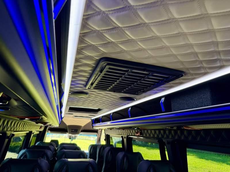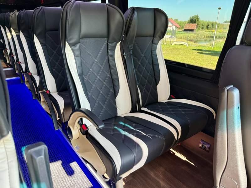 Fabrycznie nowy autobus Autobus dostępny od zaraz ! Nr. Oferty: 730 Mercedes-Benz Elegantbus Sprinter 519 EURO VI E GSR II 22+1+1 miejsc siedzących z możliwością szybkiej zmiany na 19+1+1 miejsc siedzących i zwiększenia przestrzeni bagażowej ! Wersja XXXL o długości 7, 87 m Pojemność: 1950 cm3 Pakiet stylistyczny Moc: 190 KM Rok produkcji: 2025 Kolor: Czarny PODSTAWOWE I DODATKOWE WYPOSAŻENIE BAZOWE – ABS, SRS, ESP – Wspomaganie kierownicy – Automatyczna 9 stopniowa skrzynia biegów – Centralny zamek, immobiliser – Reflektory przednie w technologii LED – Tylne lampy częściowo w technologii LED – Asystent utrzymania pasa ruchu – Tempo 100 km/h – Elektryczne szyby – Sensor świateł oraz deszczu – Tempomat – Kierownica wielofunkcyjna, trójramienna – Stabilizacja poziom II – Wzmocnione opony 205/75/R16C – Dogrzewacz elektryczny PTC – Klimatyzacja półautomatyczna TEMPTRONIC – Fotel kierowcy komfortowy z podłokietnikiem – Światła z funkcją świateł do jazdy dziennej – Lusterko wsteczne – Asystent pasa ruchu – Zamykany schowek na kokpicie – Akumulator AGM 12V 95 Ah – Lusterko wsteczne wewnętrzne – Zbiornik paliwa powiększony: 93 litry – Chlapacze przednie – Chlapacze tylnie FOTELE PRZEDZIAŁU PASAŻERSKIEGO – Komfortowe turystyczne fotele przedziału pasażerskiego (regulacja oparcia oraz przesuw boczny) – Fotele posiadają pasy bezpieczeństwa, podłokietniki, siateczki, stoliki, rączki, komfortowe zagłówki, – Fotele montowane na podestach – Fotel pilota na słupku B PRZESZKLENIE POJAZDU – Szyby podwójne, przyciemniane fabrycznie – Firanki przeciwsłoneczne na prowadnicach – Szyby drzwi elektrycznych podgrzewane SYSTEMY GRZEWCZE – Grzejniki konwektorowe wodne zainstalowane w przedziale pasażerskim po lewej i prawej stronie – Postojowe ogrzewanie wodne, oryginalne EBERSCHPRECHER 5 kW KLIMATYZACJA – Automatyczna Klimatyzacja dachowa WEBASTO 12, 5 kW OŚWIETLENIE – Oświetlenie indywidualne – Oświetlenie postojowe – Oświetlenie nocne – Podświetlane stopnie wejściowe – Podesty z podświetleniem LED – Lampy obrysowe dachowe LED MULTIMEDIA – System multimedialny MBUX 10, 5 cala – Oryginalna Kamera Cofania – Mikrofon – Nagłośnienie przestrzeni pasażerskiej PIONNER – Gniazda USB dla każdego rzędu siedzeń – Przetwornica 230v PRZECHOWYWANIE BAGAŻU I UBRAŃ – Turystyczne półki bagażowe – Lodówka o pojemności 40 litrów – Pogłębiony tylny bagażnik – Wieszaki ubraniowe ELEMENTY BEZPIECZEŃSTWA – Podłoga antypoślizgowa PCV, odporna na ścieranie, wodoodporna – Szyberdach wentylacyjny / wyjście awaryjne – Młotki bezpieczeństwa – Dodatkowa gaśnica 2 kg ELEMENTY FUNKCJONALNE – Elektryczne drzwi wejściowe sterowane z przycisku i pilota – Podwójny stopień wejściowy oświetlony LED – Przedłużenie pojazdu w tylnej części – Hak holowniczy LIFTING ZEWNĘTRZNY – Lakierowane zderzaki, listwy, klamki, lusterka i grill w kolorze pojazdu – Spojlery dolne w kolorze nadwozia Sprzedający: