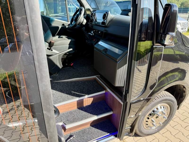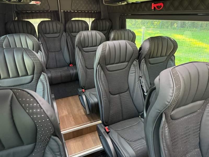 Fabrycznie nowy autobus Autobus dostępny od zaraz ! Nr. oferty: 187 Mercedes-Benz Elegantbus Sprinter 519 EURO VI E GSR II 22+1+1 miejsc siedzących z możliwością szybkiej zmiany na 19+1+1 miejsc siedzących i zwiększenia przestrzeni bagażowej ! Full Panorama Relingi dachowe Wersja XXXL o długości 7, 87 m Pojemność: 1950 cm3 Pakiet stylistyczny Moc: 190 KM Rok produkcji: 2025 Kolor: Srebrny Metalik PODSTAWOWE I DODATKOWE WYPOSAŻENIE BAZOWE – ABS, SRS, ESP – Wspomaganie kierownicy – Automatyczna 9 stopniowa skrzynia biegów – Centralny zamek, immobiliser – Reflektory przednie w technologii LED – Tylne lampy częściowo w technologii LED – Asystent utrzymania pasa ruchu – Tempo 100 km/h – Elektryczne szyby – Sensor świateł oraz deszczu – Tempomat – Kierownica wielofunkcyjna, trójramienna – Stabilizacja poziom II – Wzmocnione opony 205/75/R16C – Dogrzewacz elektryczny PTC – Klimatyzacja półautomatyczna TEMPTRONIC – Fotel kierowcy komfortowy z podłokietnikiem – Światła z funkcją świateł do jazdy dziennej – Lusterko wsteczne – Asystent pasa ruchu – Zamykany schowek na kokpicie – Akumulator AGM 12V 95 Ah – Lusterko wsteczne wewnętrzne – Zbiornik paliwa powiększony: 93 litry – Chlapacze przednie – Chlapacze tylnie FOTELE PRZEDZIAŁU PASAŻERSKIEGO – Komfortowe turystyczne fotele przedziału pasażerskiego (regulacja oparcia oraz przesuw boczny) w kolorze jasno brązowym – Fotele posiadają pasy bezpieczeństwa, podłokietniki, siateczki, stoliki, rączki, komfortowe zagłówki, – Fotele montowane na podestach – Fotel pilota na słupku B PRZESZKLENIE POJAZDU – Szyby podwójne, przyciemniane fabrycznie – Firanki przeciwsłoneczne na prowadnicach – Szyby drzwi elektrycznych podgrzewane SYSTEMY GRZEWCZE – Grzejniki konwektorowe wodne zainstalowane w przedziale pasażerskim po lewej i prawej stronie – Postojowe ogrzewanie wodne, oryginalne EBERSCHPRECHER 5 kW KLIMATYZACJA – Automatyczna Klimatyzacja dachowa WEBASTO 12, 5 kW OŚWIETLENIE – Oświetlenie indywidualne – Oświetlenie postojowe – Oświetlenie nocne – Podświetlane stopnie wejściowe – Podesty z podświetleniem LED – Lampy obrysowe dachowe LED MULTIMEDIA – System multimedialny MBUX 10, 5 cala – Oryginalna Kamera Cofania – Mikrofon – Nagłośnienie przestrzeni pasażerskiej PIONNER – Gniazda USB dla każdego rzędu siedzeń – Przetwornica 230v PRZECHOWYWANIE BAGAŻU I UBRAŃ – Turystyczne półki bagażowe – Lodówka o pojemności 40 litrów – Pogłębiony tylny bagażnik – Wieszaki ubraniowe ELEMENTY BEZPIECZEŃSTWA – Podłoga antypoślizgowa PCV, odporna na ścieranie, wodoodporna – Szyberdach wentylacyjny / wyjście awaryjne – Młotki bezpieczeństwa – Dodatkowa gaśnica 2 kg ELEMENTY FUNKCJONALNE – Elektryczne drzwi wejściowe sterowane z przycisku i pilota – Podwójny stopień wejściowy oświetlony LED – Przedłużenie pojazdu w tylnej części – Hak holowniczy LIFTING ZEWNĘTRZNY – Lakierowane zderzaki, listwy, klamki, lusterka i grill w kolorze pojazdu – Spojlery dolne w kolorze nadwozia Sprzedający: