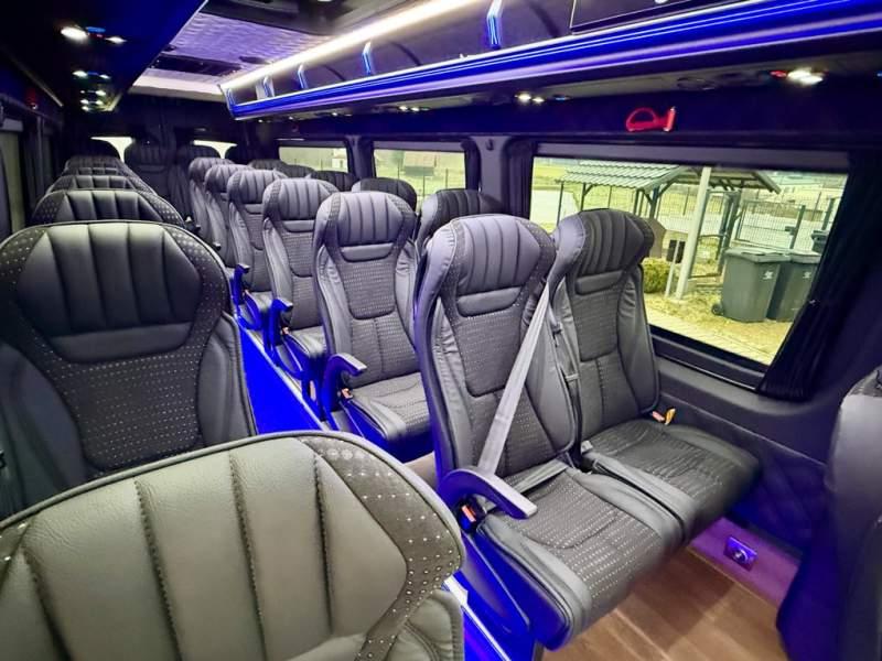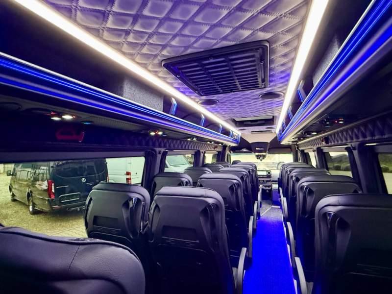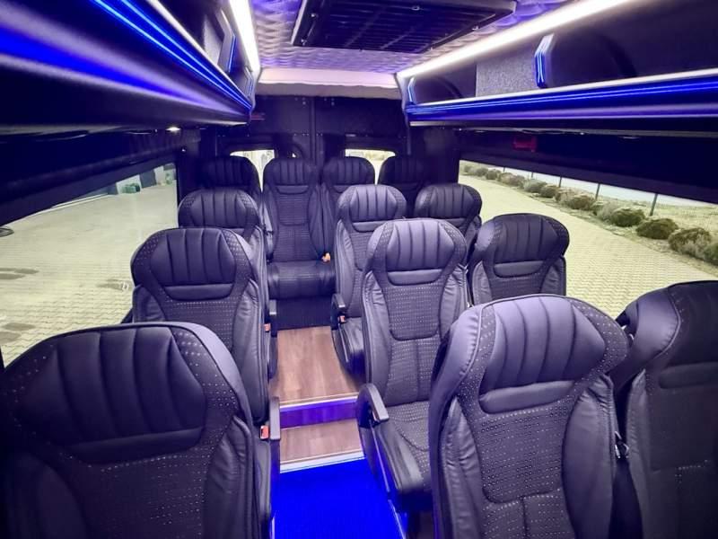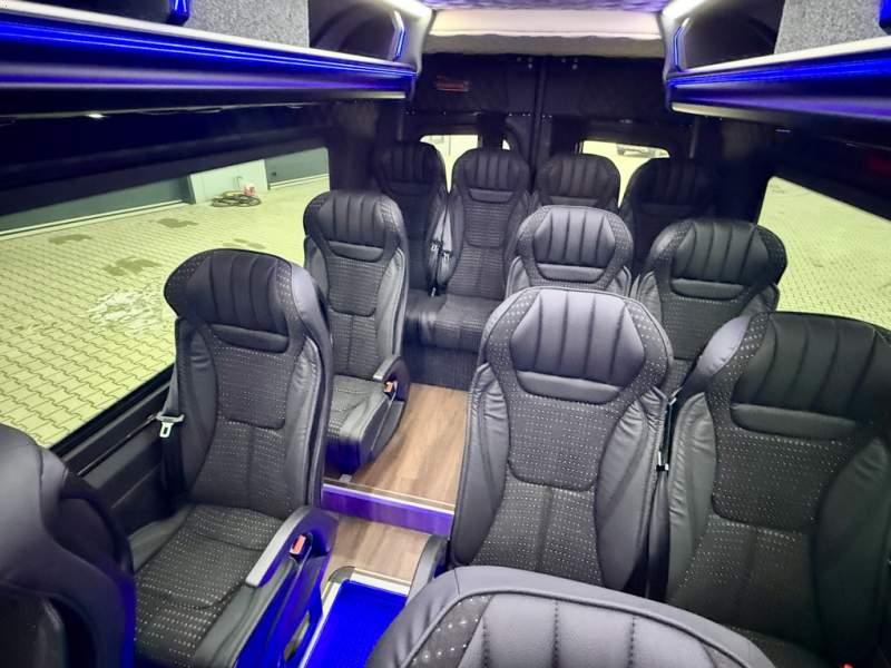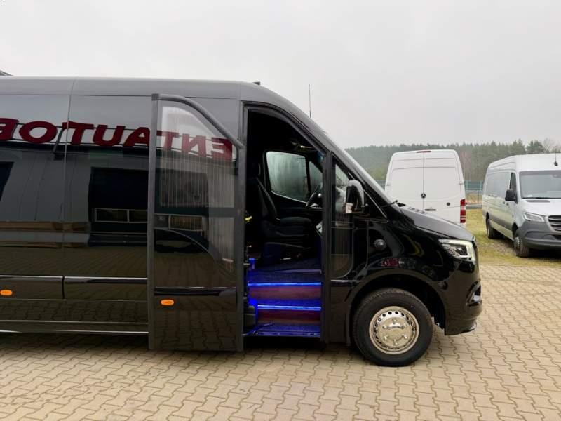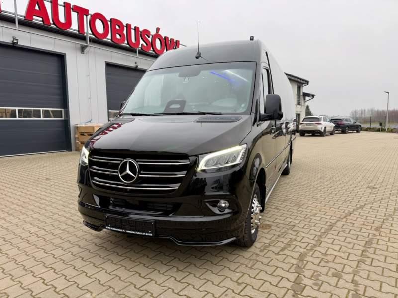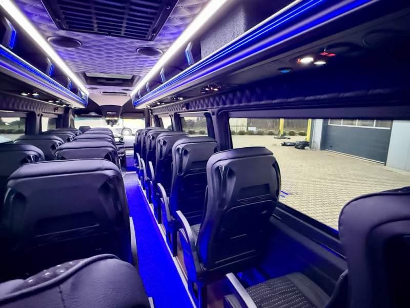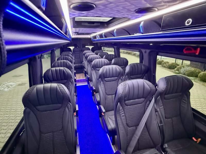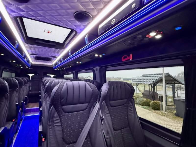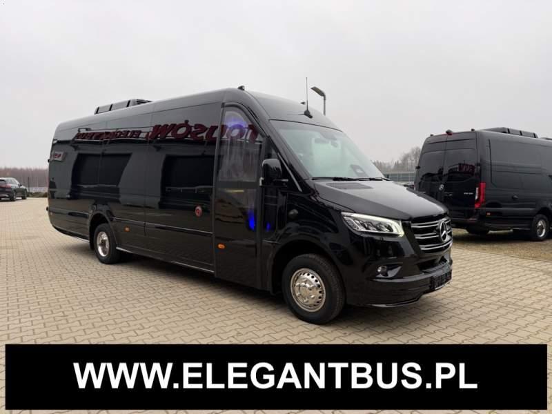 Fabrycznie nowy autobus Autobus dostępny od zaraz ! Nr. Oferty: 511 Mercedes-Benz Elegantbus Sprinter 519 EURO VI E GSR II 22+1+1 miejsc siedzących z możliwością szybkiej zmiany na 19+1+1 miejsc siedzących i zwiększenia przestrzeni bagażowej ! Wersja XXXL o długości 7, 87 m Pojemność: 1950 cm3 Pakiet stylistyczny Moc: 190 KM Rok produkcji: 2025 Kolor: Czarny Obsidian Metalik PODSTAWOWE I DODATKOWE WYPOSAŻENIE BAZOWE – ABS, SRS, ESP – Wspomaganie kierownicy – Automatyczna 9 stopniowa skrzynia biegów – Centralny zamek, immobiliser – Reflektory przednie w technologii LED – Tylne lampy częściowo w technologii LED – Asystent utrzymania pasa ruchu – Tempo 100 km/h – Elektryczne szyby – Sensor świateł oraz deszczu – Tempomat – Kierownica wielofunkcyjna, trójramienna – Stabilizacja poziom II – Wzmocnione opony 205/75/R16C – Dogrzewacz elektryczny PTC – Klimatyzacja półautomatyczna TEMPTRONIC – Fotel kierowcy komfortowy z podłokietnikiem – Światła z funkcją świateł do jazdy dziennej – Lusterko wsteczne – Asystent pasa ruchu – Zamykany schowek na kokpicie – Akumulator AGM 12V 95 Ah – Lusterko wsteczne wewnętrzne – Zbiornik paliwa powiększony: 93 litry – Chlapacze przednie – Chlapacze tylnie – Drugi akumulator w komorze silnika – Nawigacja satelitarna – Apple Car Play - Android Auto FOTELE PRZEDZIAŁU PASAŻERSKIEGO – Komfortowe turystyczne fotele przedziału pasażerskiego (regulacja oparcia oraz przesuw boczny) – Fotele posiadają pasy bezpieczeństwa, podłokietniki, siateczki, stoliki, rączki, komfortowe zagłówki, – Fotele montowane na podestach – Fotel pilota na słupku B PRZESZKLENIE POJAZDU – Szyby podwójne, przyciemniane fabrycznie – Firanki przeciwsłoneczne na prowadnicach – Szyby drzwi elektrycznych podgrzewane SYSTEMY GRZEWCZE – Grzejniki konwektorowe wodne zainstalowane w przedziale pasażerskim po lewej i prawej stronie – Postojowe ogrzewanie wodne, oryginalne EBERSCHPRECHER 5 kW KLIMATYZACJA – Automatyczna Klimatyzacja dachowa WEBASTO 12, 5 kW OŚWIETLENIE – Oświetlenie indywidualne – Oświetlenie postojowe – Oświetlenie nocne – Podświetlane stopnie wejściowe – Podesty z podświetleniem LED – Lampy obrysowe dachowe LED MULTIMEDIA – System multimedialny MBUX 10, 5 cala – Oryginalna Kamera Cofania – Mikrofon – Nagłośnienie przestrzeni pasażerskiej PIONNER – Gniazda USB dla każdego rzędu siedzeń – Przetwornica 230v PRZECHOWYWANIE BAGAŻU I UBRAŃ – Turystyczne półki bagażowe – Lodówka o pojemności 40 litrów – Pogłębiony tylny bagażnik – Wieszaki ubraniowe ELEMENTY BEZPIECZEŃSTWA – Podłoga antypoślizgowa PCV, odporna na ścieranie, wodoodporna – Szyberdach wentylacyjny / wyjście awaryjne – Młotki bezpieczeństwa – Dodatkowa gaśnica 2 kg ELEMENTY FUNKCJONALNE – Elektryczne drzwi wejściowe sterowane z przycisku i pilota – Podwójny stopień wejściowy oświetlony LED – Przedłużenie pojazdu w tylnej części – Hak holowniczy LIFTING ZEWNĘTRZNY – Lakierowane zderzaki, listwy, klamki, lusterka i grill w kolorze pojazdu – Spojlery dolne w kolorze nadwozia Sprzedający: