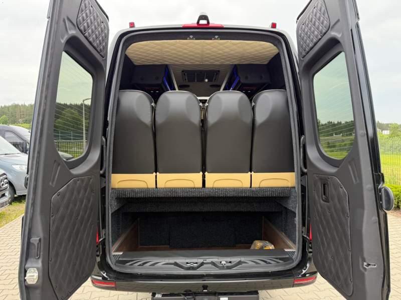 Fabrycznie nowy autobus Autobus dostępny od zaraz ! Nr. oferty: 644 Mercedes-Benz Elegantbus Sprinter 519 EURO VI E GSR II 22+1+1 miejsc siedzących z możliwością szybkiej zmiany na 19+1+1 miejsc siedzących i zwiększenia przestrzeni bagażowej ! Wersja XXXL o długości 7, 87 m Pojemność: 1950 cm3 Pakiet stylistyczny Moc: 190 KM Rok produkcji: 2025 Kolor: Czarny PODSTAWOWE I DODATKOWE WYPOSAŻENIE BAZOWE – ABS, SRS, ESP – Wspomaganie kierownicy – Automatyczna 9 stopniowa skrzynia biegów – Centralny zamek, immobiliser – Reflektory przednie w technologii LED – Tylne lampy częściowo w technologii LED – Asystent utrzymania pasa ruchu – Tempo 100 km/h – Elektryczne szyby – Sensor świateł oraz deszczu – Tempomat – Kierownica wielofunkcyjna, trójramienna – Stabilizacja poziom II – Wzmocnione opony 205/75/R16C – Dogrzewacz elektryczny PTC – Klimatyzacja półautomatyczna TEMPTRONIC – Fotel kierowcy komfortowy z podłokietnikiem – Światła z funkcją świateł do jazdy dziennej – Lusterko wsteczne – Asystent pasa ruchu – Zamykany schowek na kokpicie – Akumulator AGM 12V 95 Ah – Lusterko wsteczne wewnętrzne – Zbiornik paliwa powiększony: 93 litry – Chlapacze przednie – Chlapacze tylnie FOTELE PRZEDZIAŁU PASAŻERSKIEGO – Komfortowe turystyczne fotele przedziału pasażerskiego (regulacja oparcia oraz przesuw boczny) – Fotele posiadają pasy bezpieczeństwa, podłokietniki, siateczki, stoliki, rączki, komfortowe zagłówki, – Fotele montowane na podestach – Fotel pilota na słupku B PRZESZKLENIE POJAZDU – Szyby podwójne, przyciemniane fabrycznie – Firanki przeciwsłoneczne na prowadnicach – Szyby drzwi elektrycznych podgrzewane SYSTEMY GRZEWCZE – Grzejniki konwektorowe wodne zainstalowane w przedziale pasażerskim po lewej i prawej stronie – Postojowe ogrzewanie wodne, oryginalne EBERSCHPRECHER 5 kW KLIMATYZACJA – Automatyczna Klimatyzacja dachowa WEBASTO 12, 5 kW OŚWIETLENIE – Oświetlenie indywidualne – Oświetlenie postojowe – Oświetlenie nocne – Podświetlane stopnie wejściowe – Podesty z podświetleniem LED – Lampy obrysowe dachowe LED MULTIMEDIA – System multimedialny MBUX 10, 5 cala – Oryginalna Kamera Cofania – Mikrofon – Nagłośnienie przestrzeni pasażerskiej PIONNER – Gniazda USB dla każdego rzędu siedzeń – Przetwornica 230v PRZECHOWYWANIE BAGAŻU I UBRAŃ – Turystyczne półki bagażowe – Lodówka o pojemności 40 litrów – Pogłębiony tylny bagażnik – Wieszaki ubraniowe ELEMENTY BEZPIECZEŃSTWA – Podłoga antypoślizgowa PCV, odporna na ścieranie, wodoodporna – Szyberdach wentylacyjny / wyjście awaryjne – Młotki bezpieczeństwa – Dodatkowa gaśnica 2 kg ELEMENTY FUNKCJONALNE – Elektryczne drzwi wejściowe sterowane z przycisku i pilota – Podwójny stopień wejściowy oświetlony LED – Przedłużenie pojazdu w tylnej części – Hak holowniczy LIFTING ZEWNĘTRZNY – Lakierowane zderzaki, listwy, klamki, lusterka i grill w kolorze pojazdu – Spojlery dolne w kolorze nadwozia Sprzedający: