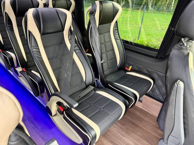 Fabrycznie nowy autobus Autobus dostępny od ręki ! Nr. oferty: 100 Mercedes-Benz Elegantbus Sprinter 519 EURO VI E 22+1+1 miejsc siedzących (Fotele zamontowane w szynach, możliwość zmiany na 19+1+1 miejsc i zwiększenie przestrzeni bagażowej) Wersja XXXL o długości 7, 87 m Pojemność: 1950 cm3 Pakiet stylistyczny Moc: 190 KM Rok produkcji: 2025 PODSTAWOWE I DODATKOWE WYPOSAŻENIE BAZOWE – ABS, SRS, ESP – Automatyczna 9 stopniowa skrzynia biegów – Reflektory przednie w technologii LED – Automatyczna zmiany świateł mijania - drogowe – Tylne lampy w technologii LED – Asystent utrzymania pasa ruchu – Tempo 100 km/h – Sensor świateł oraz deszczu – Tempomat – Kierownica wielofunkcyjna, trójramienna – Klimatyzacja dla kierowcy – Fotel kierowcy komfortowy z podłokietnikiem – Lusterko wsteczne – Asystent pasa ruchu FOTELE PRZEDZIAŁU PASAŻERSKIEGO – Komfortowe turystyczne fotele przedziału pasażerskiego (regulacja oparcia oraz przesuw boczny) – Fotele posiadają pasy bezpieczeństwa, podłokietniki, siateczki, stoliki, rączki, komfortowe zagłówki, – Fotele montowane na podestach – Fotel pilota na słupku B PRZESZKLENIE POJAZDU – Szyby podwójne, przyciemniane fabrycznie – Firanki przeciwsłoneczne na prowadnicach SYSTEMY GRZEWCZE – Konwektory grzewcze po lewej i prawej stronie – Ogrzewanie niezależne od pracy sinika mocy 5 kW z rozprowadzeniem KLIMATYZACJA – Automatyczna klimatyzacja dachowa o dużej wydajności 12, 5 KW OŚWIETLENIE – Oświetlenie indywidualne – Oświetlenie postojowe – Oświetlenie nocne – Podświetlane stopnie wejściowe – Podesty z podświetleniem LED – Lampy obrysowe dachowe MULTIMEDIA – System multimedialny MBUX 7, 5 ' – System Apple Car Play oraz Android Auto – Monitor podsufitowy 17 ' – Kamera Cofania – Mikrofon dynamiczny z potencjometrem – Nagłośnienie przestrzeni pasażerskiej PIONNER – Gniazda USB oraz USB C dla każdego rzędu siedzeń – Przetwornica 230v PRZECHOWYWANIE BAGAŻU I UBRAŃ – Turystyczne półki bagażowe – Pogłębiony tylny bagażnik – Wieszaki ubraniowe ELEMENTY BEZPIECZEŃSTWA – Podłoga antypoślizgowa PCV, odporna na ścieranie, wodoodporna – Szyberdach wentylacyjny / wyjście awaryjne – Młotki bezpieczeństwa – Dodatkowa gaśnica 2 kg ELEMENTY FUNKCJONALNE – Drzwi wejściowe elektryczne – Podwójny stopień wejściowy oświetlony LED – Przedłużenie pojazdu w tylnej części – Hak holowniczy z instalacją elektryczną – Lodówka 40 l LIFTING ZEWNĘTRZNY – Lakierowane zderzaki, listwy, klamki, lusterka i grill w kolorze pojazdu – Wszystkie dokładki lakierowane w kolor nadwozia Sprzedający: