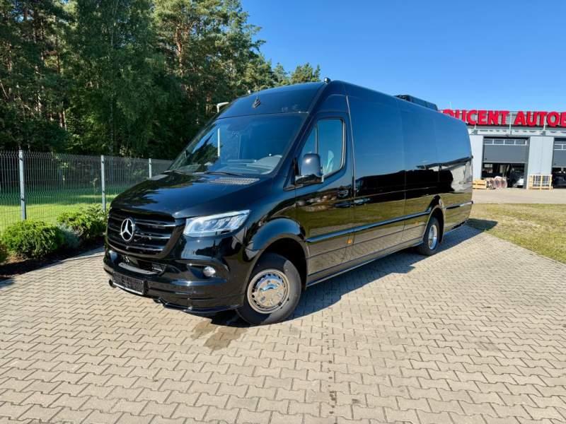 Fabrycznie nowy autobus Autobus dostępny od zaraz ! Nr. Oferty: 730 Mercedes-Benz Elegantbus Sprinter 519 EURO VI E GSR II 22+1+1 miejsc siedzących z możliwością szybkiej zmiany na 19+1+1 miejsc siedzących i zwiększenia przestrzeni bagażowej ! Wersja XXXL o długości 7, 87 m Pojemność: 1950 cm3 Pakiet stylistyczny Moc: 190 KM Rok produkcji: 2025 Kolor: Czarny PODSTAWOWE I DODATKOWE WYPOSAŻENIE BAZOWE – ABS, SRS, ESP – Wspomaganie kierownicy – Automatyczna 9 stopniowa skrzynia biegów – Centralny zamek, immobiliser – Reflektory przednie w technologii LED – Tylne lampy częściowo w technologii LED – Asystent utrzymania pasa ruchu – Tempo 100 km/h – Elektryczne szyby – Sensor świateł oraz deszczu – Tempomat – Kierownica wielofunkcyjna, trójramienna – Stabilizacja poziom II – Wzmocnione opony 205/75/R16C – Dogrzewacz elektryczny PTC – Klimatyzacja półautomatyczna TEMPTRONIC – Fotel kierowcy komfortowy z podłokietnikiem – Światła z funkcją świateł do jazdy dziennej – Lusterko wsteczne – Asystent pasa ruchu – Zamykany schowek na kokpicie – Akumulator AGM 12V 95 Ah – Lusterko wsteczne wewnętrzne – Zbiornik paliwa powiększony: 93 litry – Chlapacze przednie – Chlapacze tylnie FOTELE PRZEDZIAŁU PASAŻERSKIEGO – Komfortowe turystyczne fotele przedziału pasażerskiego (regulacja oparcia oraz przesuw boczny) – Fotele posiadają pasy bezpieczeństwa, podłokietniki, siateczki, stoliki, rączki, komfortowe zagłówki, – Fotele montowane na podestach – Fotel pilota na słupku B PRZESZKLENIE POJAZDU – Szyby podwójne, przyciemniane fabrycznie – Firanki przeciwsłoneczne na prowadnicach – Szyby drzwi elektrycznych podgrzewane SYSTEMY GRZEWCZE – Grzejniki konwektorowe wodne zainstalowane w przedziale pasażerskim po lewej i prawej stronie – Postojowe ogrzewanie wodne, oryginalne EBERSCHPRECHER 5 kW KLIMATYZACJA – Automatyczna Klimatyzacja dachowa WEBASTO 12, 5 kW OŚWIETLENIE – Oświetlenie indywidualne – Oświetlenie postojowe – Oświetlenie nocne – Podświetlane stopnie wejściowe – Podesty z podświetleniem LED – Lampy obrysowe dachowe LED MULTIMEDIA – System multimedialny MBUX 10, 5 cala – Oryginalna Kamera Cofania – Mikrofon – Nagłośnienie przestrzeni pasażerskiej PIONNER – Gniazda USB dla każdego rzędu siedzeń – Przetwornica 230v PRZECHOWYWANIE BAGAŻU I UBRAŃ – Turystyczne półki bagażowe – Lodówka o pojemności 40 litrów – Pogłębiony tylny bagażnik – Wieszaki ubraniowe ELEMENTY BEZPIECZEŃSTWA – Podłoga antypoślizgowa PCV, odporna na ścieranie, wodoodporna – Szyberdach wentylacyjny / wyjście awaryjne – Młotki bezpieczeństwa – Dodatkowa gaśnica 2 kg ELEMENTY FUNKCJONALNE – Elektryczne drzwi wejściowe sterowane z przycisku i pilota – Podwójny stopień wejściowy oświetlony LED – Przedłużenie pojazdu w tylnej części – Hak holowniczy LIFTING ZEWNĘTRZNY – Lakierowane zderzaki, listwy, klamki, lusterka i grill w kolorze pojazdu – Spojlery dolne w kolorze nadwozia Sprzedający: