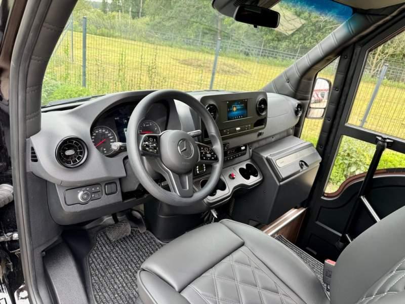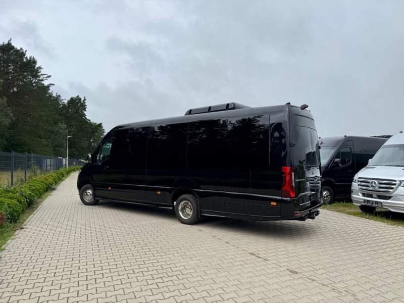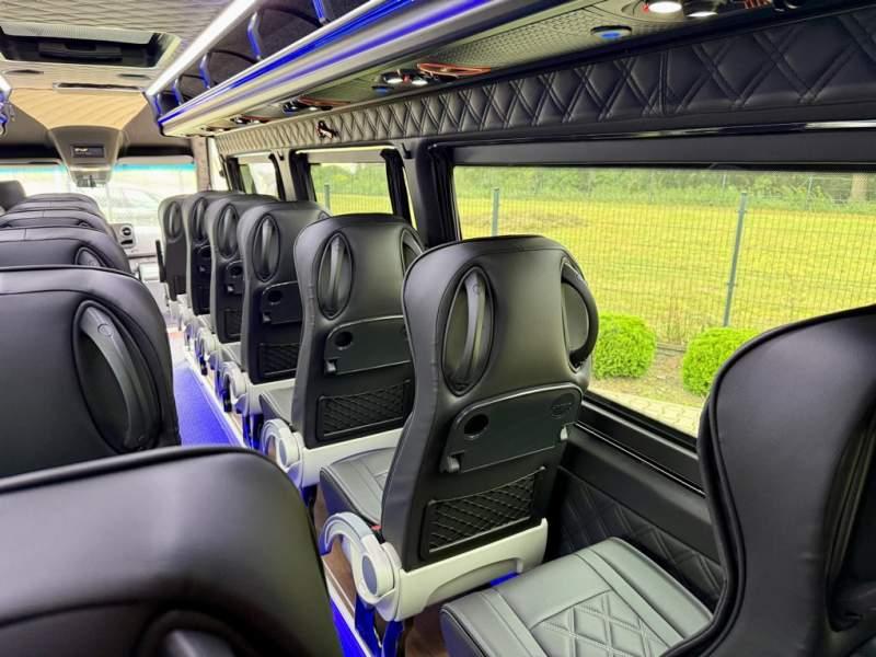 Fabrycznie nowy autobus Autobus dostępny od ręki ! Nr. oferty: 642 Mercedes-Benz Elegantbus Sprinter 519 EURO VI E 22+1+1 miejsc siedzących (Fotele zamontowane w szynach, możliwość zmiany na 19+1+1 miejsc i zwiększenie przestrzeni bagażowej) Wersja XXXL o długości 7, 87 m Pojemność: 1950 cm3 Pakiet stylistyczny Moc: 190 KM Rok produkcji: 2025 PODSTAWOWE I DODATKOWE WYPOSAŻENIE BAZOWE – ABS, SRS, ESP – Automatyczna 9 stopniowa skrzynia biegów – Reflektory przednie w technologii LED – Automatyczna zmiany świateł mijania - drogowe – Tylne lampy w technologii LED – Asystent utrzymania pasa ruchu – Tempo 100 km/h – Sensor świateł oraz deszczu – Tempomat – Kierownica wielofunkcyjna, trójramienna – Klimatyzacja dla kierowcy – Fotel kierowcy komfortowy z podłokietnikiem – Lusterko wsteczne – Asystent pasa ruchu FOTELE PRZEDZIAŁU PASAŻERSKIEGO – Komfortowe turystyczne fotele przedziału pasażerskiego (regulacja oparcia oraz przesuw boczny) – Fotele posiadają pasy bezpieczeństwa, podłokietniki, siateczki, stoliki, rączki, komfortowe zagłówki, – Fotele montowane na podestach – Fotel pilota na słupku B PRZESZKLENIE POJAZDU – Szyby podwójne, przyciemniane fabrycznie – Firanki przeciwsłoneczne na prowadnicach SYSTEMY GRZEWCZE – Konwektory grzewcze po lewej i prawej stronie – Ogrzewanie niezależne od pracy sinika mocy 5 kW z rozprowadzeniem KLIMATYZACJA – Automatyczna klimatyzacja dachowa o dużej wydajności 12, 5 KW OŚWIETLENIE – Oświetlenie indywidualne – Oświetlenie postojowe – Oświetlenie nocne – Podświetlane stopnie wejściowe – Podesty z podświetleniem LED – Lampy obrysowe dachowe MULTIMEDIA – System multimedialny MBUX 7, 5 ' – System Apple Car Play oraz Android Auto – Monitor podsufitowy 17 ' – Kamera Cofania – Mikrofon dynamiczny z potencjometrem – Nagłośnienie przestrzeni pasażerskiej PIONNER – Gniazda USB oraz USB C dla każdego rzędu siedzeń – Przetwornica 230v PRZECHOWYWANIE BAGAŻU I UBRAŃ – Turystyczne półki bagażowe – Pogłębiony tylny bagażnik – Wieszaki ubraniowe ELEMENTY BEZPIECZEŃSTWA – Podłoga antypoślizgowa PCV, odporna na ścieranie, wodoodporna – Szyberdach wentylacyjny / wyjście awaryjne – Młotki bezpieczeństwa – Dodatkowa gaśnica 2 kg ELEMENTY FUNKCJONALNE – Drzwi wejściowe elektryczne – Podwójny stopień wejściowy oświetlony LED – Przedłużenie pojazdu w tylnej części – Hak holowniczy z instalacją elektryczną – Lodówka 40 l LIFTING ZEWNĘTRZNY – Lakierowane zderzaki, listwy, klamki, lusterka i grill w kolorze pojazdu – Wszystkie dokładki lakierowane w kolor nadwozia Sprzedający:
