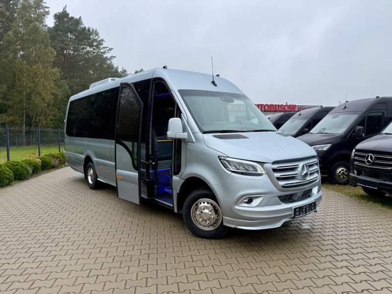 Fabrycznie nowy autobus Autobus dostępny od ręki ! Nr. oferty: 148 Mercedes-Benz Elegantbus Sprinter 519 EURO VI E 22+1+1 miejsc siedzących (Fotele zamontowane w szynach, możliwość zmiany na 19+1+1 miejsc i zwiększenie przestrzeni bagażowej) Wersja XXXL o długości 7, 87 m Pojemność: 1950 cm3 Pakiet stylistyczny Moc: 190 KM Rok produkcji: 2025 PODSTAWOWE I DODATKOWE WYPOSAŻENIE BAZOWE – ABS, SRS, ESP – Automatyczna 9 stopniowa skrzynia biegów – Reflektory przednie w technologii LED – Automatyczna zmiany świateł mijania - drogowe – Tylne lampy w technologii LED – Asystent utrzymania pasa ruchu – Tempo 100 km/h – Sensor świateł oraz deszczu – Tempomat – Kierownica wielofunkcyjna, trójramienna – Klimatyzacja dla kierowcy – Fotel kierowcy komfortowy z podłokietnikiem – Lusterko wsteczne – Asystent pasa ruchu FOTELE PRZEDZIAŁU PASAŻERSKIEGO – Komfortowe turystyczne fotele przedziału pasażerskiego (regulacja oparcia oraz przesuw boczny) – Fotele posiadają pasy bezpieczeństwa, podłokietniki, siateczki, stoliki, rączki, komfortowe zagłówki, – Fotele montowane na podestach – Fotel pilota na słupku B PRZESZKLENIE POJAZDU – Szyby podwójne, przyciemniane fabrycznie – Firanki przeciwsłoneczne na prowadnicach SYSTEMY GRZEWCZE – Konwektory grzewcze po lewej i prawej stronie – Ogrzewanie niezależne od pracy sinika mocy 5 kW z rozprowadzeniem KLIMATYZACJA – Automatyczna klimatyzacja dachowa o dużej wydajności 12, 5 KW OŚWIETLENIE – Oświetlenie indywidualne – Oświetlenie postojowe – Oświetlenie nocne – Podświetlane stopnie wejściowe – Podesty z podświetleniem LED – Lampy obrysowe dachowe MULTIMEDIA – System multimedialny MBUX 7, 5 ' – System Apple Car Play oraz Android Auto – Monitor podsufitowy 17 ' – Kamera Cofania – Mikrofon dynamiczny z potencjometrem – Nagłośnienie przestrzeni pasażerskiej PIONNER – Gniazda USB oraz USB C dla każdego rzędu siedzeń – Przetwornica 230v PRZECHOWYWANIE BAGAŻU I UBRAŃ – Turystyczne półki bagażowe – Pogłębiony tylny bagażnik – Wieszaki ubraniowe ELEMENTY BEZPIECZEŃSTWA – Podłoga antypoślizgowa PCV, odporna na ścieranie, wodoodporna – Szyberdach wentylacyjny / wyjście awaryjne – Młotki bezpieczeństwa – Dodatkowa gaśnica 2 kg ELEMENTY FUNKCJONALNE – Drzwi wejściowe elektryczne – Podwójny stopień wejściowy oświetlony LED – Przedłużenie pojazdu w tylnej części – Hak holowniczy z instalacją elektryczną – Lodówka 40 l LIFTING ZEWNĘTRZNY – Lakierowane zderzaki, listwy, klamki, lusterka i grill w kolorze pojazdu – Wszystkie dokładki lakierowane w kolor nadwozia Sprzedający: