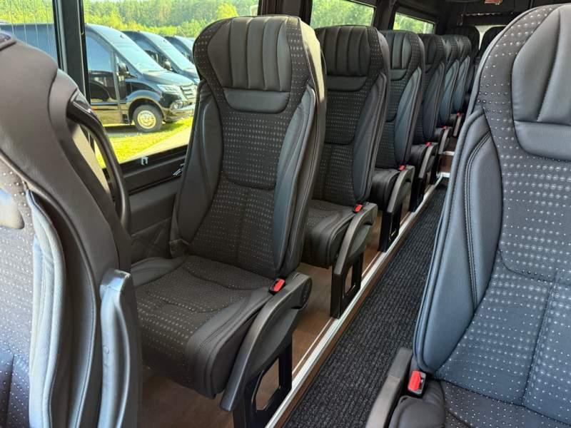 Fabrycznie nowy autobus Autobus dostępny od zaraz ! Nr. oferty: 187 Mercedes-Benz Elegantbus Sprinter 519 EURO VI E GSR II 22+1+1 miejsc siedzących z możliwością szybkiej zmiany na 19+1+1 miejsc siedzących i zwiększenia przestrzeni bagażowej ! Full Panorama Relingi dachowe Wersja XXXL o długości 7, 87 m Pojemność: 1950 cm3 Pakiet stylistyczny Moc: 190 KM Rok produkcji: 2025 Kolor: Srebrny Metalik PODSTAWOWE I DODATKOWE WYPOSAŻENIE BAZOWE – ABS, SRS, ESP – Wspomaganie kierownicy – Automatyczna 9 stopniowa skrzynia biegów – Centralny zamek, immobiliser – Reflektory przednie w technologii LED – Tylne lampy częściowo w technologii LED – Asystent utrzymania pasa ruchu – Tempo 100 km/h – Elektryczne szyby – Sensor świateł oraz deszczu – Tempomat – Kierownica wielofunkcyjna, trójramienna – Stabilizacja poziom II – Wzmocnione opony 205/75/R16C – Dogrzewacz elektryczny PTC – Klimatyzacja półautomatyczna TEMPTRONIC – Fotel kierowcy komfortowy z podłokietnikiem – Światła z funkcją świateł do jazdy dziennej – Lusterko wsteczne – Asystent pasa ruchu – Zamykany schowek na kokpicie – Akumulator AGM 12V 95 Ah – Lusterko wsteczne wewnętrzne – Zbiornik paliwa powiększony: 93 litry – Chlapacze przednie – Chlapacze tylnie FOTELE PRZEDZIAŁU PASAŻERSKIEGO – Komfortowe turystyczne fotele przedziału pasażerskiego (regulacja oparcia oraz przesuw boczny) w kolorze jasno brązowym – Fotele posiadają pasy bezpieczeństwa, podłokietniki, siateczki, stoliki, rączki, komfortowe zagłówki, – Fotele montowane na podestach – Fotel pilota na słupku B PRZESZKLENIE POJAZDU – Szyby podwójne, przyciemniane fabrycznie – Firanki przeciwsłoneczne na prowadnicach – Szyby drzwi elektrycznych podgrzewane SYSTEMY GRZEWCZE – Grzejniki konwektorowe wodne zainstalowane w przedziale pasażerskim po lewej i prawej stronie – Postojowe ogrzewanie wodne, oryginalne EBERSCHPRECHER 5 kW KLIMATYZACJA – Automatyczna Klimatyzacja dachowa WEBASTO 12, 5 kW OŚWIETLENIE – Oświetlenie indywidualne – Oświetlenie postojowe – Oświetlenie nocne – Podświetlane stopnie wejściowe – Podesty z podświetleniem LED – Lampy obrysowe dachowe LED MULTIMEDIA – System multimedialny MBUX 10, 5 cala – Oryginalna Kamera Cofania – Mikrofon – Nagłośnienie przestrzeni pasażerskiej PIONNER – Gniazda USB dla każdego rzędu siedzeń – Przetwornica 230v PRZECHOWYWANIE BAGAŻU I UBRAŃ – Turystyczne półki bagażowe – Lodówka o pojemności 40 litrów – Pogłębiony tylny bagażnik – Wieszaki ubraniowe ELEMENTY BEZPIECZEŃSTWA – Podłoga antypoślizgowa PCV, odporna na ścieranie, wodoodporna – Szyberdach wentylacyjny / wyjście awaryjne – Młotki bezpieczeństwa – Dodatkowa gaśnica 2 kg ELEMENTY FUNKCJONALNE – Elektryczne drzwi wejściowe sterowane z przycisku i pilota – Podwójny stopień wejściowy oświetlony LED – Przedłużenie pojazdu w tylnej części – Hak holowniczy LIFTING ZEWNĘTRZNY – Lakierowane zderzaki, listwy, klamki, lusterka i grill w kolorze pojazdu – Spojlery dolne w kolorze nadwozia Sprzedający: