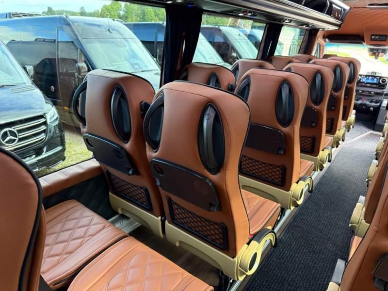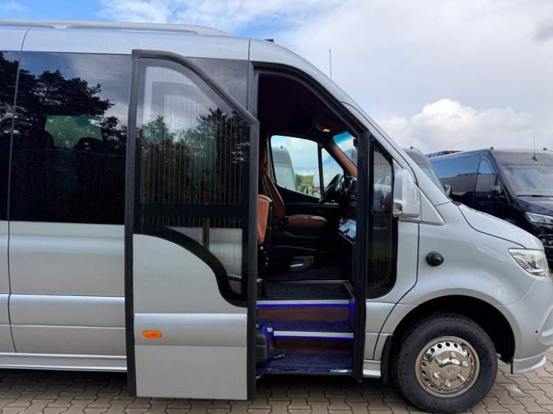 Fabrycznie nowy autobus Autobus dostępny od zaraz ! Nr. oferty: 187 Mercedes-Benz Elegantbus Sprinter 519 EURO VI E GSR II 22+1+1 miejsc siedzących z możliwością szybkiej zmiany na 19+1+1 miejsc siedzących i zwiększenia przestrzeni bagażowej ! Full Panorama Relingi dachowe Wersja XXXL o długości 7, 87 m Pojemność: 1950 cm3 Pakiet stylistyczny Moc: 190 KM Rok produkcji: 2025 Kolor: Srebrny Metalik PODSTAWOWE I DODATKOWE WYPOSAŻENIE BAZOWE – ABS, SRS, ESP – Wspomaganie kierownicy – Automatyczna 9 stopniowa skrzynia biegów – Centralny zamek, immobiliser – Reflektory przednie w technologii LED – Tylne lampy częściowo w technologii LED – Asystent utrzymania pasa ruchu – Tempo 100 km/h – Elektryczne szyby – Sensor świateł oraz deszczu – Tempomat – Kierownica wielofunkcyjna, trójramienna – Stabilizacja poziom II – Wzmocnione opony 205/75/R16C – Dogrzewacz elektryczny PTC – Klimatyzacja półautomatyczna TEMPTRONIC – Fotel kierowcy komfortowy z podłokietnikiem – Światła z funkcją świateł do jazdy dziennej – Lusterko wsteczne – Asystent pasa ruchu – Zamykany schowek na kokpicie – Akumulator AGM 12V 95 Ah – Lusterko wsteczne wewnętrzne – Zbiornik paliwa powiększony: 93 litry – Chlapacze przednie – Chlapacze tylnie FOTELE PRZEDZIAŁU PASAŻERSKIEGO – Komfortowe turystyczne fotele przedziału pasażerskiego (regulacja oparcia oraz przesuw boczny) w kolorze jasno brązowym – Fotele posiadają pasy bezpieczeństwa, podłokietniki, siateczki, stoliki, rączki, komfortowe zagłówki, – Fotele montowane na podestach – Fotel pilota na słupku B PRZESZKLENIE POJAZDU – Szyby podwójne, przyciemniane fabrycznie – Firanki przeciwsłoneczne na prowadnicach – Szyby drzwi elektrycznych podgrzewane SYSTEMY GRZEWCZE – Grzejniki konwektorowe wodne zainstalowane w przedziale pasażerskim po lewej i prawej stronie – Postojowe ogrzewanie wodne, oryginalne EBERSCHPRECHER 5 kW KLIMATYZACJA – Automatyczna Klimatyzacja dachowa WEBASTO 12, 5 kW OŚWIETLENIE – Oświetlenie indywidualne – Oświetlenie postojowe – Oświetlenie nocne – Podświetlane stopnie wejściowe – Podesty z podświetleniem LED – Lampy obrysowe dachowe LED MULTIMEDIA – System multimedialny MBUX 10, 5 cala – Oryginalna Kamera Cofania – Mikrofon – Nagłośnienie przestrzeni pasażerskiej PIONNER – Gniazda USB dla każdego rzędu siedzeń – Przetwornica 230v PRZECHOWYWANIE BAGAŻU I UBRAŃ – Turystyczne półki bagażowe – Lodówka o pojemności 40 litrów – Pogłębiony tylny bagażnik – Wieszaki ubraniowe ELEMENTY BEZPIECZEŃSTWA – Podłoga antypoślizgowa PCV, odporna na ścieranie, wodoodporna – Szyberdach wentylacyjny / wyjście awaryjne – Młotki bezpieczeństwa – Dodatkowa gaśnica 2 kg ELEMENTY FUNKCJONALNE – Elektryczne drzwi wejściowe sterowane z przycisku i pilota – Podwójny stopień wejściowy oświetlony LED – Przedłużenie pojazdu w tylnej części – Hak holowniczy LIFTING ZEWNĘTRZNY – Lakierowane zderzaki, listwy, klamki, lusterka i grill w kolorze pojazdu – Spojlery dolne w kolorze nadwozia Sprzedający: