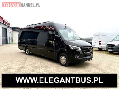 Fabrycznie nowy autobus Autobus dostępny od zaraz ! Nr. oferty: 897 Mercedes-Benz Elegantbus Sprinter 519 EURO VI E GSR II 22+1+1 miejsc siedzących z możliwością szybkiej zmiany na 19+1+1 miejsc siedzących i zwiększenia przestrzeni bagażowej ! Full Panorama Relingi dachowe Wersja XXXL o długości 7, 87 m Pojemność: 1950 cm3 Pakiet stylistyczny Moc: 190 KM Rok produkcji: 2025 Kolor: Czarny Obsidian Metalik PODSTAWOWE I DODATKOWE WYPOSAŻENIE BAZOWE – ABS, SRS, ESP – Wspomaganie kierownicy – Automatyczna 9 stopniowa skrzynia biegów – Centralny zamek, immobiliser – Reflektory przednie w technologii LED – Światła przeciwmgłowe przednie z funkcja doświetlania zakrętów – Tylne lampy częściowo w technologii LED – Asystent utrzymania pasa ruchu – Tempo 100 km/h – Elektryczne szyby – Sensor świateł oraz deszczu – Tempomat – Kierownica wielofunkcyjna, trójramienna – Stabilizacja poziom II – Wzmocnione opony 205/75/R16C – Dogrzewacz elektryczny PTC – Klimatyzacja półautomatyczna TEMPTRONIC – Fotel kierowcy komfortowy z podłokietnikiem – Światła z funkcją świateł do jazdy dziennej – Lusterko wsteczne – Asystent pasa ruchu – Zamykany schowek na kokpicie – Akumulator AGM 12V 95 Ah – Lusterko wsteczne wewnętrzne – Zbiornik paliwa powiększony: 93 litry – Chlapacze przednie – Chlapacze tylnie – Drugi akumulator w komorze silnika – Nawigacja satelitarna – Apple Car Play - Android Auto FOTELE PRZEDZIAŁU PASAŻERSKIEGO – Komfortowe turystyczne fotele przedziału pasażerskiego (regulacja oparcia oraz przesuw boczny) w kolorze jasno brązowym – Fotele posiadają pasy bezpieczeństwa, podłokietniki, siateczki, stoliki, rączki, komfortowe zagłówki, – Fotele montowane na podestach – Fotel pilota na słupku B PRZESZKLENIE POJAZDU – Szyby boczne panoramiczne – Szyby podwójne, przyciemniane fabrycznie – Firanki przeciwsłoneczne na prowadnicach – Szyby drzwi elektrycznych podgrzewane SYSTEMY GRZEWCZE – Grzejniki konwektorowe wodne zainstalowane w przedziale pasażerskim po lewej i prawej stronie – Postojowe ogrzewanie wodne, oryginalne EBERSCHPRECHER 5 kW KLIMATYZACJA – Automatyczna Klimatyzacja dachowa WEBASTO 12, 5 kW OŚWIETLENIE – Oświetlenie indywidualne – Oświetlenie postojowe – Oświetlenie nocne – Podświetlane stopnie wejściowe – Podesty z podświetleniem LED – Lampy obrysowe dachowe LED – Dodatkowe oświetlenie ambientowe na bokach pojazdu w listach imitacja mahoń MULTIMEDIA – System multimedialny MBUX 10, 5 cala – Oryginalna Kamera Cofania – Mikrofon – Nagłośnienie przestrzeni pasażerskiej PIONNER – Gniazda USB dla każdego rzędu siedzeń – Przetwornica 230v PRZECHOWYWANIE BAGAŻU I UBRAŃ – Turystyczne półki bagażowe – Lodówka o pojemności 40 litrów – Pogłębiony tylny bagażnik – Wieszaki ubraniowe ELEMENTY BEZPIECZEŃSTWA – Podłoga antypoślizgowa PCV, odporna na ścieranie, wodoodporna – Szyberdach wentylacyjny / wyjście awaryjne – Młotki bezpieczeństwa – Dodatkowa gaśnica 2 kg ELEMENTY FUNKCJONALNE – Elektryczne drzwi wejściowe – Dodatkowe sterowanie drzwi elektrycznych z pilota – Podwójny stopień wejściowy oświetlony LED – Przedłużenie pojazdu w tylnej części – Hak holowniczy LIFTING ZEWNĘTRZNY – Lakierowane zderzaki, listwy, klamki, lusterka i grill w kolorze pojazdu – Spojlery dolne w kolorze nadwozia – Relingi dachowe Sprzedający: