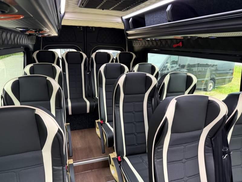 Fabrycznie nowy autobus Autobus dostępny od zaraz ! Nr. oferty: 644 Mercedes-Benz Elegantbus Sprinter 519 EURO VI E GSR II 22+1+1 miejsc siedzących z możliwością szybkiej zmiany na 19+1+1 miejsc siedzących i zwiększenia przestrzeni bagażowej ! Wersja XXXL o długości 7, 87 m Pojemność: 1950 cm3 Pakiet stylistyczny Moc: 190 KM Rok produkcji: 2025 Kolor: Czarny PODSTAWOWE I DODATKOWE WYPOSAŻENIE BAZOWE – ABS, SRS, ESP – Wspomaganie kierownicy – Automatyczna 9 stopniowa skrzynia biegów – Centralny zamek, immobiliser – Reflektory przednie w technologii LED – Tylne lampy częściowo w technologii LED – Asystent utrzymania pasa ruchu – Tempo 100 km/h – Elektryczne szyby – Sensor świateł oraz deszczu – Tempomat – Kierownica wielofunkcyjna, trójramienna – Stabilizacja poziom II – Wzmocnione opony 205/75/R16C – Dogrzewacz elektryczny PTC – Klimatyzacja półautomatyczna TEMPTRONIC – Fotel kierowcy komfortowy z podłokietnikiem – Światła z funkcją świateł do jazdy dziennej – Lusterko wsteczne – Asystent pasa ruchu – Zamykany schowek na kokpicie – Akumulator AGM 12V 95 Ah – Lusterko wsteczne wewnętrzne – Zbiornik paliwa powiększony: 93 litry – Chlapacze przednie – Chlapacze tylnie FOTELE PRZEDZIAŁU PASAŻERSKIEGO – Komfortowe turystyczne fotele przedziału pasażerskiego (regulacja oparcia oraz przesuw boczny) – Fotele posiadają pasy bezpieczeństwa, podłokietniki, siateczki, stoliki, rączki, komfortowe zagłówki, – Fotele montowane na podestach – Fotel pilota na słupku B PRZESZKLENIE POJAZDU – Szyby podwójne, przyciemniane fabrycznie – Firanki przeciwsłoneczne na prowadnicach – Szyby drzwi elektrycznych podgrzewane SYSTEMY GRZEWCZE – Grzejniki konwektorowe wodne zainstalowane w przedziale pasażerskim po lewej i prawej stronie – Postojowe ogrzewanie wodne, oryginalne EBERSCHPRECHER 5 kW KLIMATYZACJA – Automatyczna Klimatyzacja dachowa WEBASTO 12, 5 kW OŚWIETLENIE – Oświetlenie indywidualne – Oświetlenie postojowe – Oświetlenie nocne – Podświetlane stopnie wejściowe – Podesty z podświetleniem LED – Lampy obrysowe dachowe LED MULTIMEDIA – System multimedialny MBUX 10, 5 cala – Oryginalna Kamera Cofania – Mikrofon – Nagłośnienie przestrzeni pasażerskiej PIONNER – Gniazda USB dla każdego rzędu siedzeń – Przetwornica 230v PRZECHOWYWANIE BAGAŻU I UBRAŃ – Turystyczne półki bagażowe – Lodówka o pojemności 40 litrów – Pogłębiony tylny bagażnik – Wieszaki ubraniowe ELEMENTY BEZPIECZEŃSTWA – Podłoga antypoślizgowa PCV, odporna na ścieranie, wodoodporna – Szyberdach wentylacyjny / wyjście awaryjne – Młotki bezpieczeństwa – Dodatkowa gaśnica 2 kg ELEMENTY FUNKCJONALNE – Elektryczne drzwi wejściowe sterowane z przycisku i pilota – Podwójny stopień wejściowy oświetlony LED – Przedłużenie pojazdu w tylnej części – Hak holowniczy LIFTING ZEWNĘTRZNY – Lakierowane zderzaki, listwy, klamki, lusterka i grill w kolorze pojazdu – Spojlery dolne w kolorze nadwozia Sprzedający: