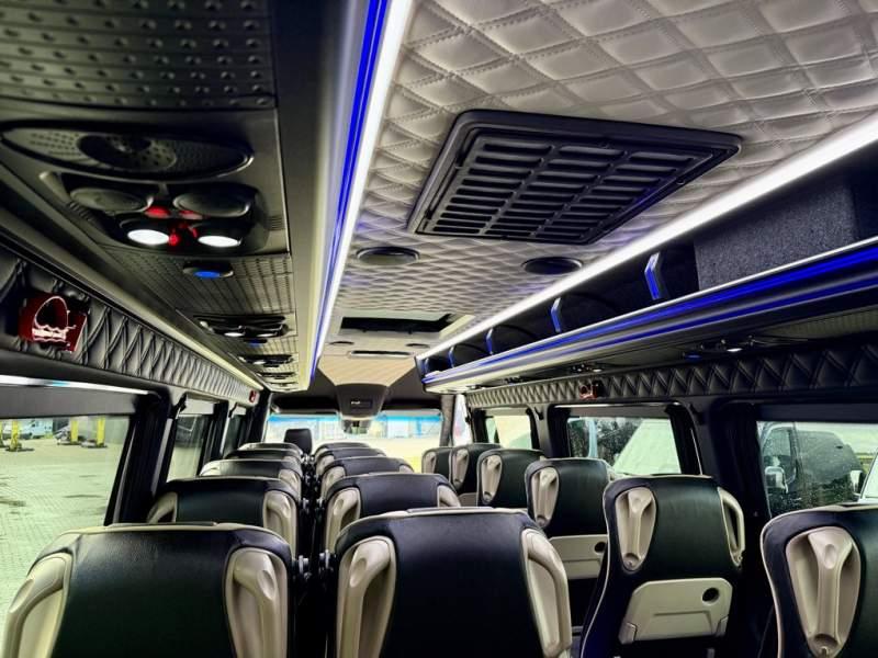Fabrycznie nowy autobus Autobus dostępny od ręki ! Nr. oferty: 100 Mercedes-Benz Elegantbus Sprinter 519 EURO VI E 22+1+1 miejsc siedzących (Fotele zamontowane w szynach, możliwość zmiany na 19+1+1 miejsc i zwiększenie przestrzeni bagażowej) Wersja XXXL o długości 7, 87 m Pojemność: 1950 cm3 Pakiet stylistyczny Moc: 190 KM Rok produkcji: 2025 PODSTAWOWE I DODATKOWE WYPOSAŻENIE BAZOWE – ABS, SRS, ESP – Automatyczna 9 stopniowa skrzynia biegów – Reflektory przednie w technologii LED – Automatyczna zmiany świateł mijania - drogowe – Tylne lampy w technologii LED – Asystent utrzymania pasa ruchu – Tempo 100 km/h – Sensor świateł oraz deszczu – Tempomat – Kierownica wielofunkcyjna, trójramienna – Klimatyzacja dla kierowcy – Fotel kierowcy komfortowy z podłokietnikiem – Lusterko wsteczne – Asystent pasa ruchu FOTELE PRZEDZIAŁU PASAŻERSKIEGO – Komfortowe turystyczne fotele przedziału pasażerskiego (regulacja oparcia oraz przesuw boczny) – Fotele posiadają pasy bezpieczeństwa, podłokietniki, siateczki, stoliki, rączki, komfortowe zagłówki, – Fotele montowane na podestach – Fotel pilota na słupku B PRZESZKLENIE POJAZDU – Szyby podwójne, przyciemniane fabrycznie – Firanki przeciwsłoneczne na prowadnicach SYSTEMY GRZEWCZE – Konwektory grzewcze po lewej i prawej stronie – Ogrzewanie niezależne od pracy sinika mocy 5 kW z rozprowadzeniem KLIMATYZACJA – Automatyczna klimatyzacja dachowa o dużej wydajności 12, 5 KW OŚWIETLENIE – Oświetlenie indywidualne – Oświetlenie postojowe – Oświetlenie nocne – Podświetlane stopnie wejściowe – Podesty z podświetleniem LED – Lampy obrysowe dachowe MULTIMEDIA – System multimedialny MBUX 7, 5 ' – System Apple Car Play oraz Android Auto – Monitor podsufitowy 17 ' – Kamera Cofania – Mikrofon dynamiczny z potencjometrem – Nagłośnienie przestrzeni pasażerskiej PIONNER – Gniazda USB oraz USB C dla każdego rzędu siedzeń – Przetwornica 230v PRZECHOWYWANIE BAGAŻU I UBRAŃ – Turystyczne półki bagażowe – Pogłębiony tylny bagażnik – Wieszaki ubraniowe ELEMENTY BEZPIECZEŃSTWA – Podłoga antypoślizgowa PCV, odporna na ścieranie, wodoodporna – Szyberdach wentylacyjny / wyjście awaryjne – Młotki bezpieczeństwa – Dodatkowa gaśnica 2 kg ELEMENTY FUNKCJONALNE – Drzwi wejściowe elektryczne – Podwójny stopień wejściowy oświetlony LED – Przedłużenie pojazdu w tylnej części – Hak holowniczy z instalacją elektryczną – Lodówka 40 l LIFTING ZEWNĘTRZNY – Lakierowane zderzaki, listwy, klamki, lusterka i grill w kolorze pojazdu – Wszystkie dokładki lakierowane w kolor nadwozia Sprzedający: